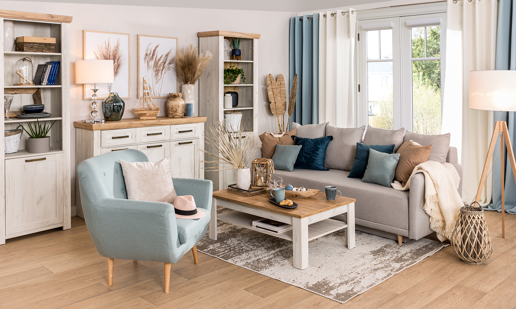 Styl hampton najlepiej oddają dodatki i meble wykonane z naturalnych materiałów, które harmonijnie wpisują się w klimat tego stylu. Wiklinowe kosze, plecione lampy z juty czy meble z rattanowymi elementami doskonale współgrają z morskim krajobrazem, dodając wnętrzom lekkości i organicznego uroku.