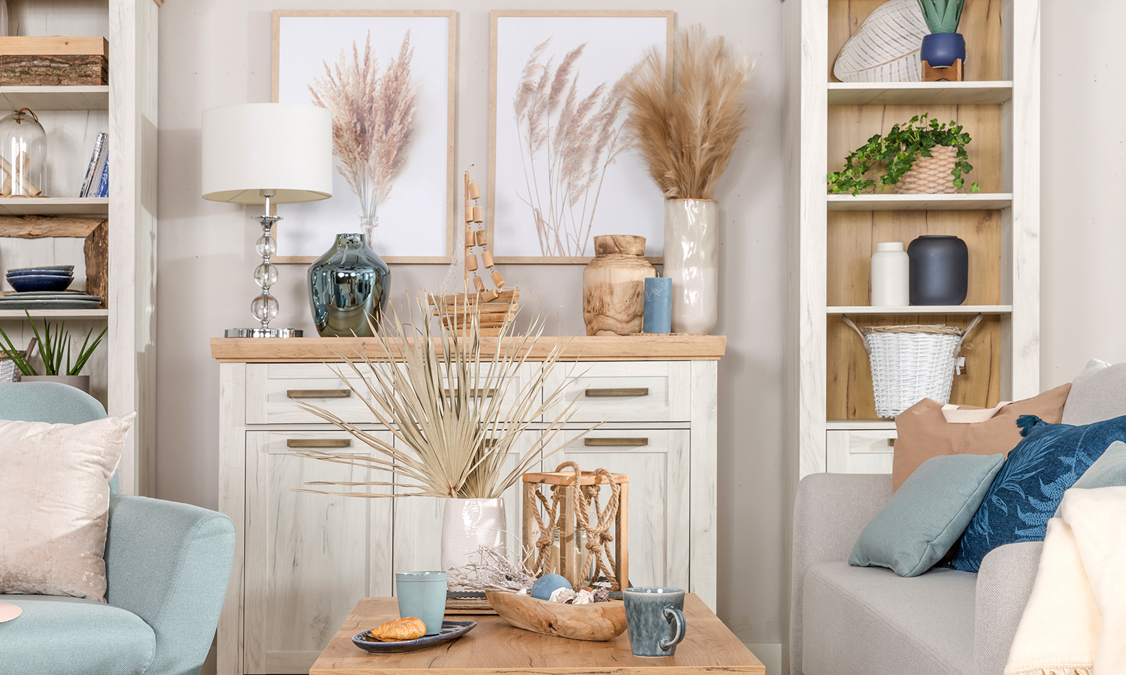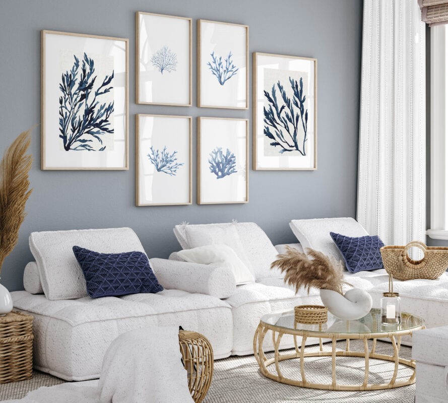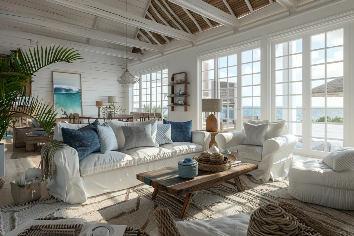 Warto wprowadzić kilka dekoracji nawiązujących do morza – mogą to być muszle w dekoracyjnych szklanych naczyniach, latarnie morskie lub obrazy przedstawiające spokojne krajobrazy plaż, morza lub wybrzeża. Dobrym pomysłem są także czarno-białe fotografie o tematyce morskiej – latarnie, żaglówki, fale – które w prosty sposób mogą dodać wnętrzu charakteru. Tego rodzaju dodatki wprowadzą do wnętrza subtelny, ale wyraźny klimat plażowy. Ważne jest jednak, by sztuka była stonowana, elegancka i harmonizowała z resztą aranżacji.