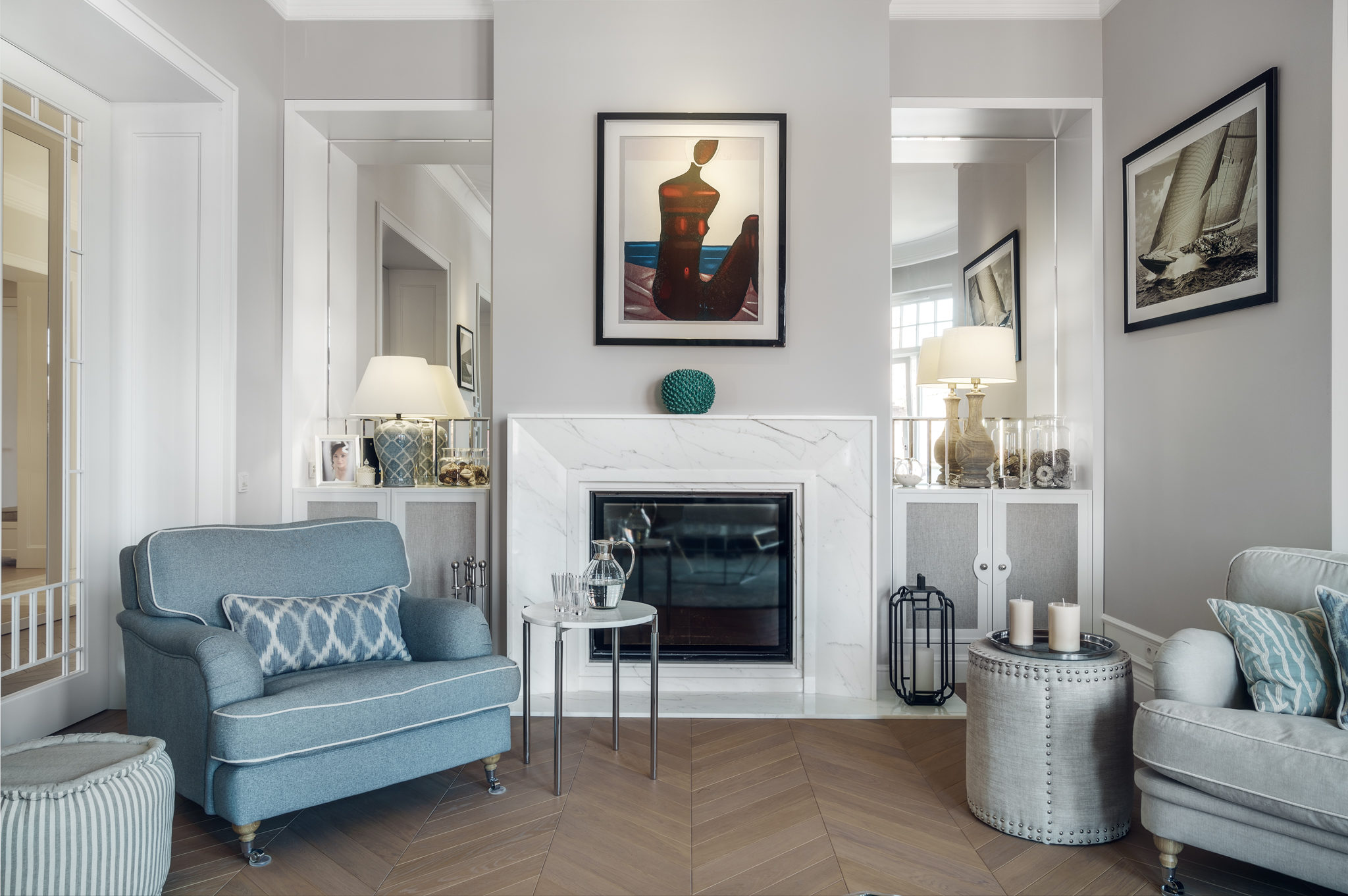 We wnętrzach urządzonych w stylu hampton kluczową rolę odgrywają lustra oraz elementy metaliczne, wnosząc do aranżacji nutę elegancji i blasku. Inspiracja nowojorskim stylem życia, który łączy luksus z prostotą, jest widoczna właśnie w tych drobnych dodatkach. Lustra i elementy chromowane stanowią ukłon w stronę nowoczesnej elegancji, wprowadzając do wnętrza zarówno odrobinę blasku stylu glamour, jak i przytulność.