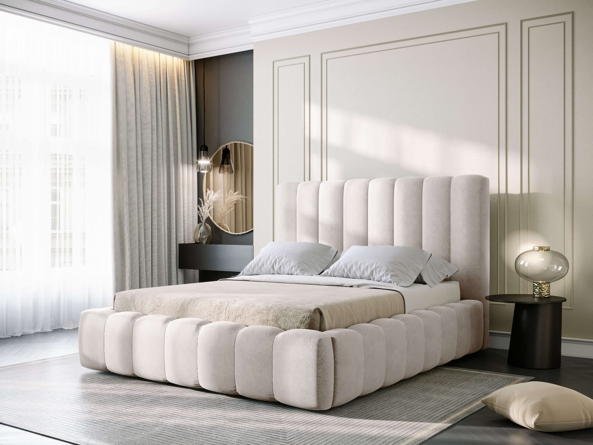 Lustra glamour w sypialni często mają delikatniejsze ramy, np. w pastelowych odcieniach, które wprowadzają romantyczny nastrój, nie zakłócając harmonii przestrzeni.