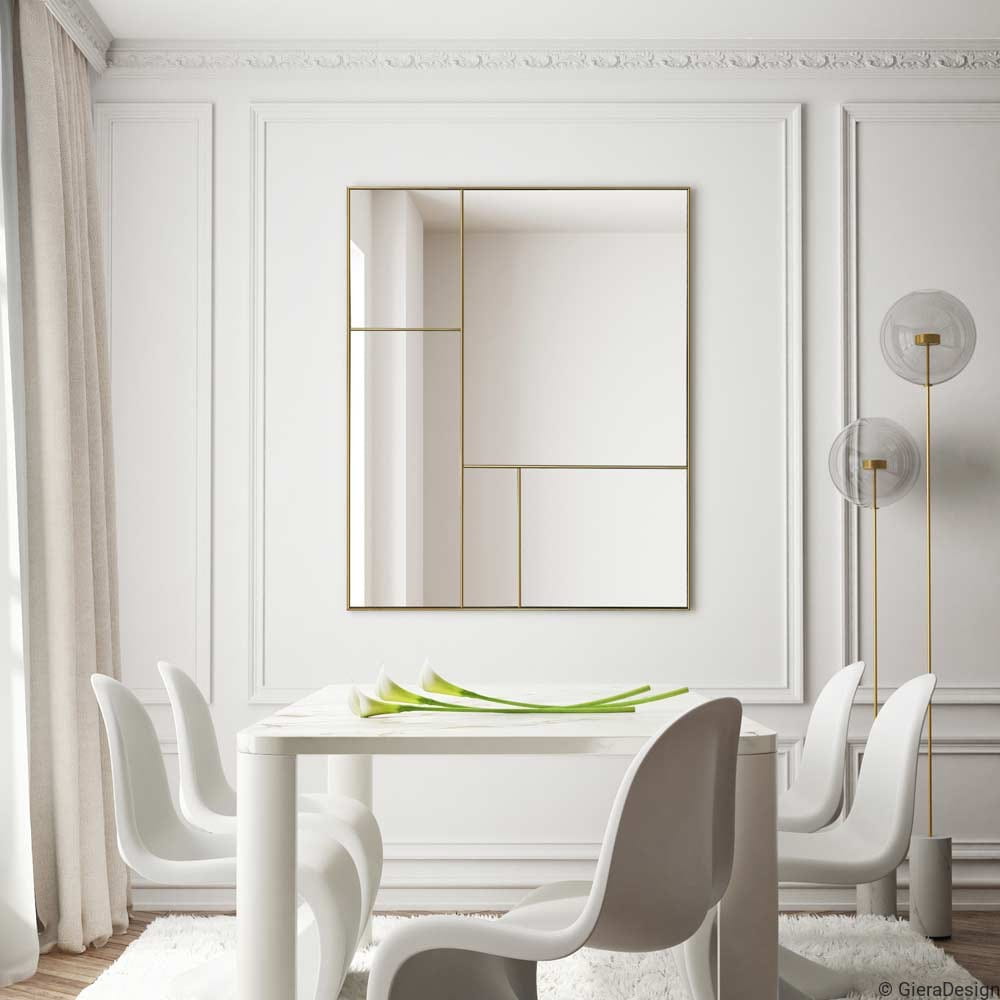 Prostokątne i kwadratowe lustra dodają wnętrzu elegancji i wyrafinowania, świetnie sprawdzając się w salonach, jadalniach czy przedpokojach.