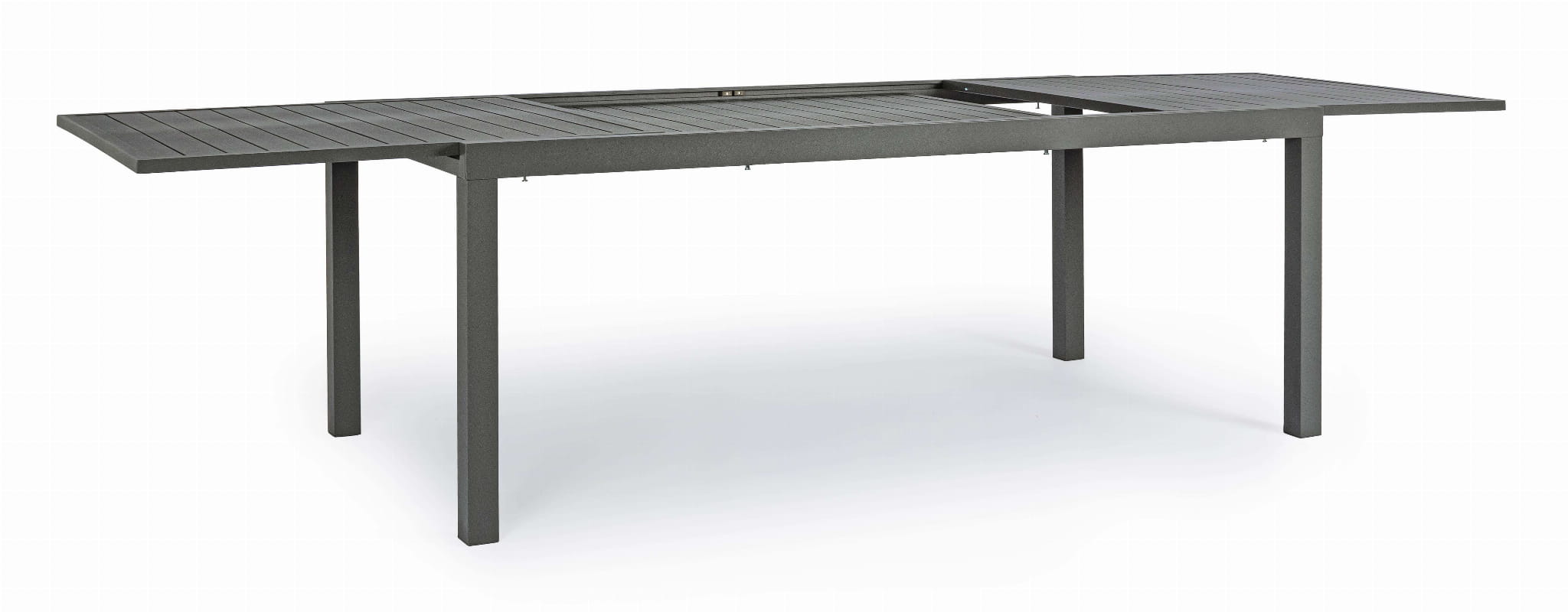 Wykonany z aluminium pokrytego proszkową warstwą poliestru i ocynkowanych stalowych śrub. Duży, antracytowy stół ogrodowy jest nie tylko stylowy, ale także wytrzymały i trwały.