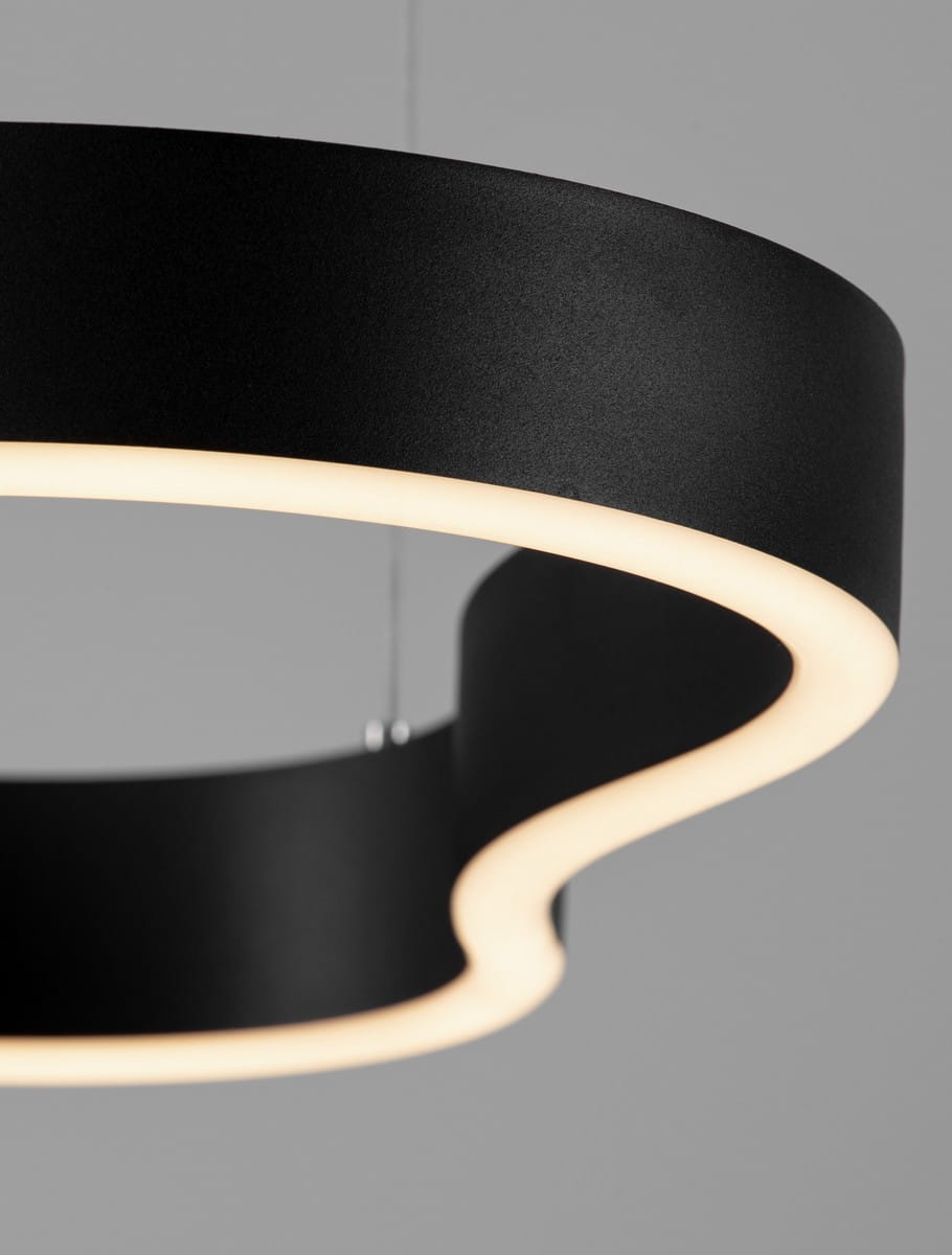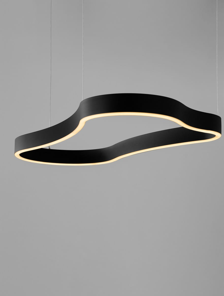 Velbano to designerska lampa wisząca, która łączy minimalizm z artystyczną lekkością. Jej charakterystyczny klosz w kształcie falującego, eliptycznego pierścienia został wykonany z aluminium i silikonu, co nadaje konstrukcji zarówno trwałości, jak i subtelności. Dzięki asymetrycznej formie i wbudowanemu oświetleniu LED, Velbano emituje delikatne, równomiernie rozproszone światło, tworząc przyjemną atmosferę w pomieszczeniu.