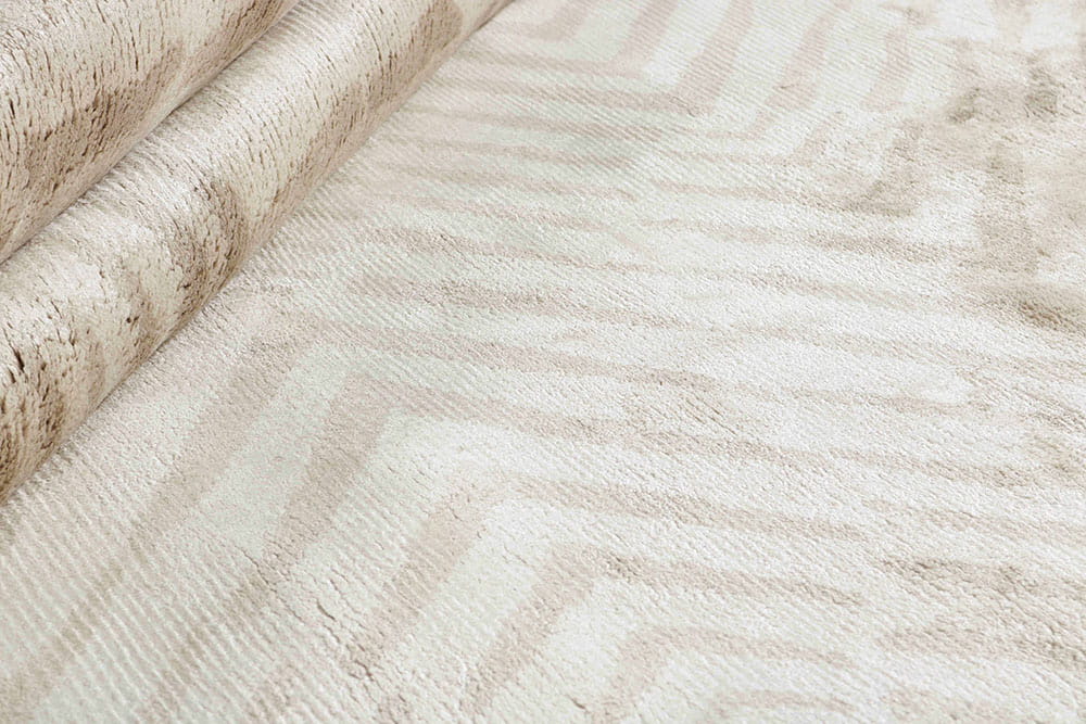 Wykonany jest w 100% z wysokiej jakości wiskozy (uszlachetnionej w taki sposób, by uzyskać efekt jedwabiu) dzięki czemu dywan ma połyskujące runo, jest niezwykle aksamitny i miękki w dotyku, poprawia akustykę pomieszczenia, a jego oddychająca struktura utrzymuje ciepło, jednocześnie zatrzymując kurz i substancje chemiczne, tym samym oczyszczając powietrze, którym oddychasz.