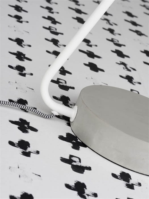 Włącznik znajduje się na kablu, co umożliwia sprawne codzienne użytkowanie. Stelaż i klosz wykonany z wysokojakościowego żelaza. Cementowa podstawa lampy zapewnia stabilność i trwałość.