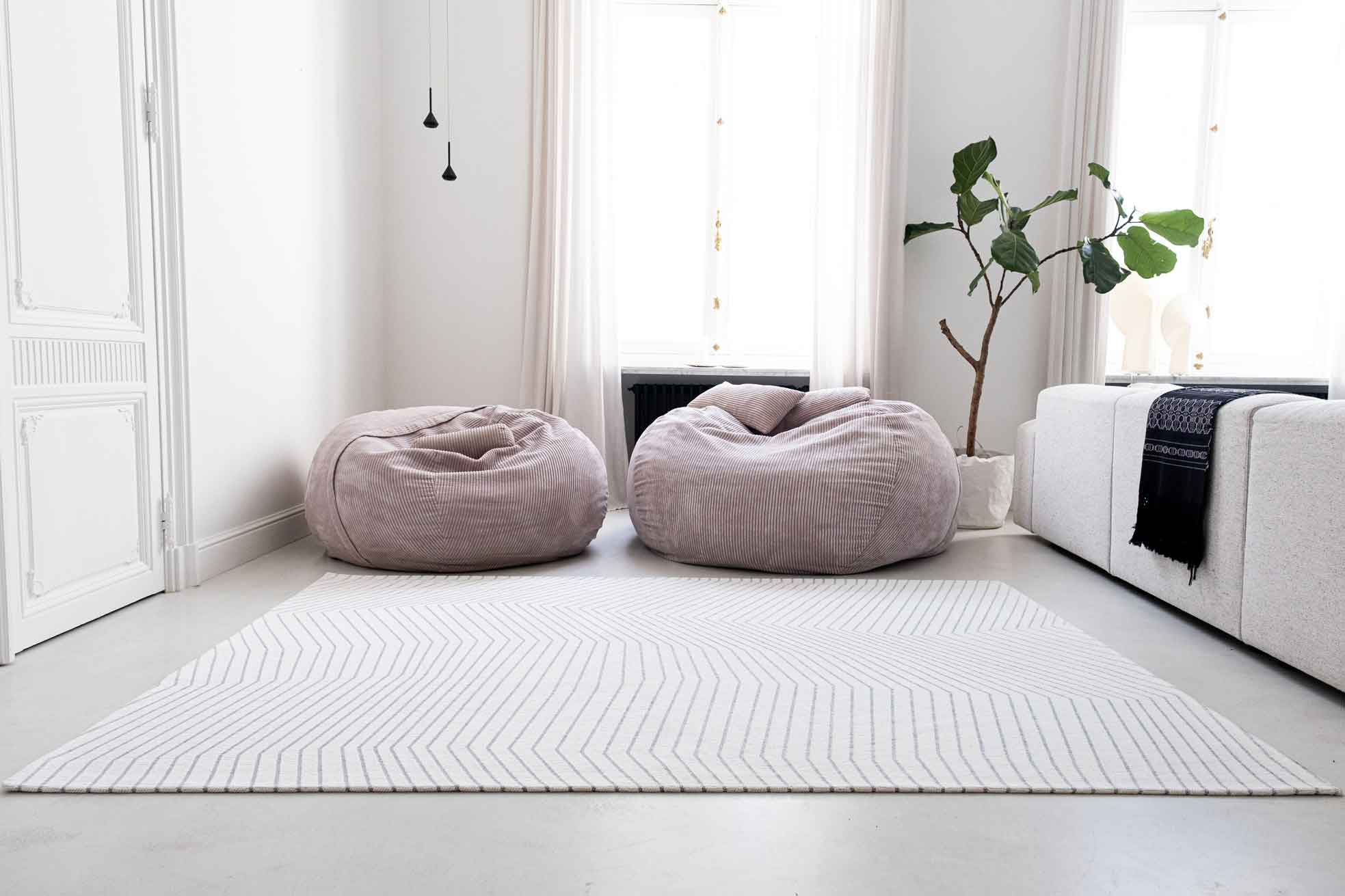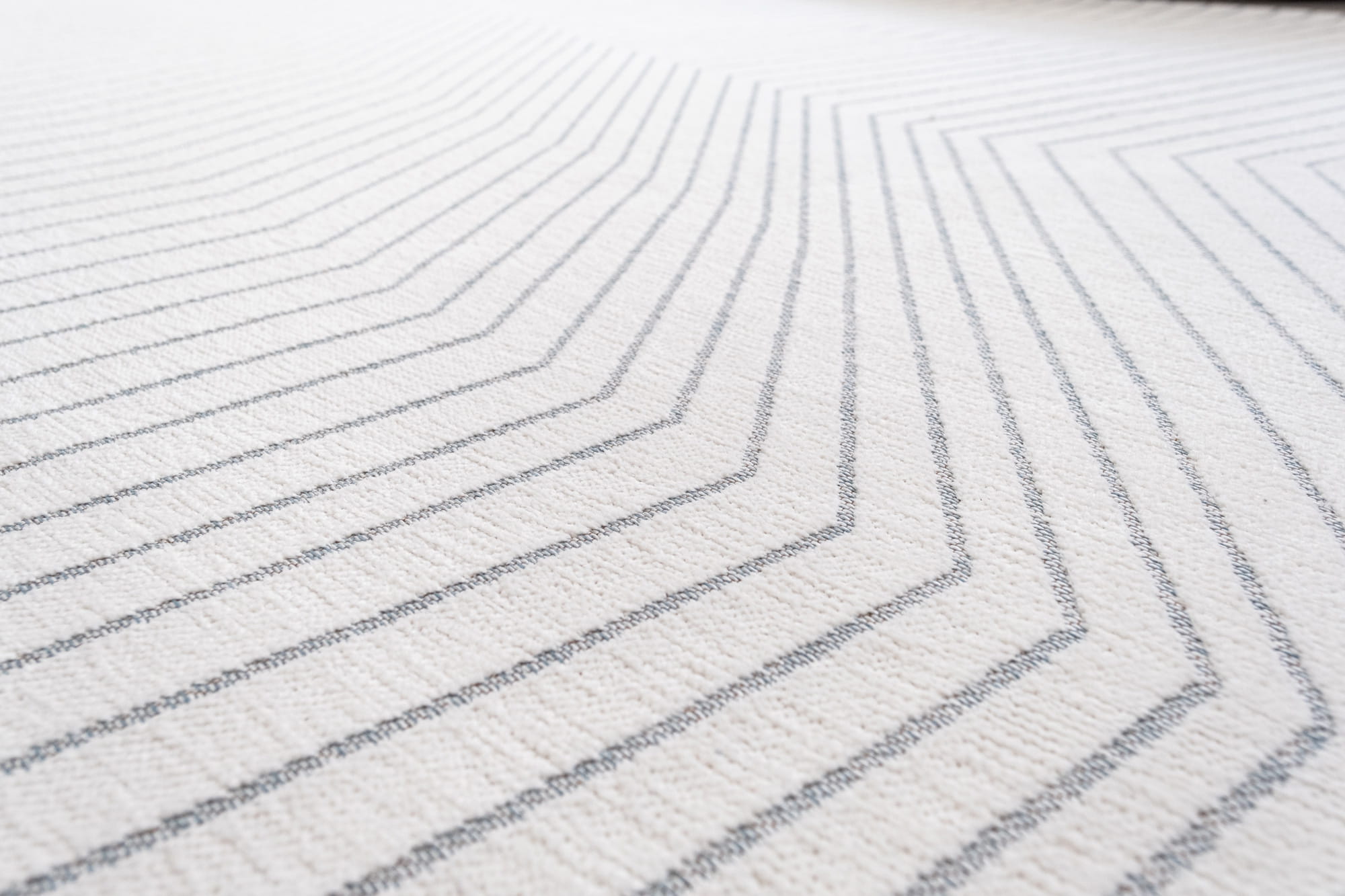 Biały dywan geometryczny w szare linie – SAN ANDREAS WHITE GREY 9172, cenionej francuskiej marki JULES FLIPO.