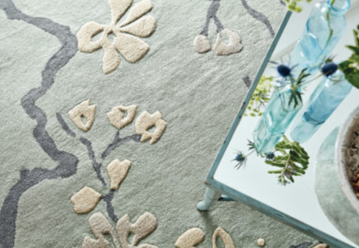 Błękitno Szary Dywan w Kwiaty ANTHEA CHINA BLUE, angielskiej marki Sanderson.