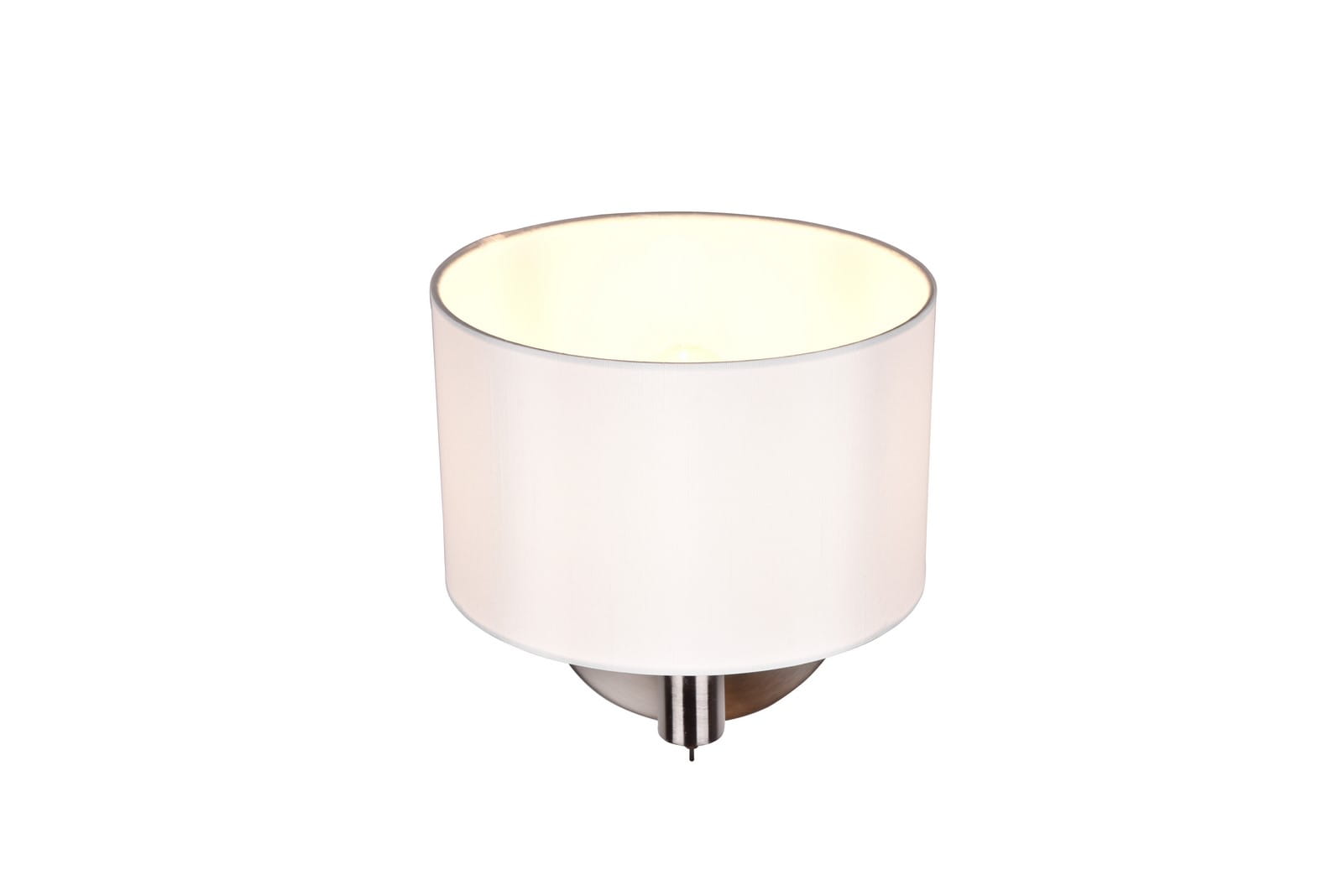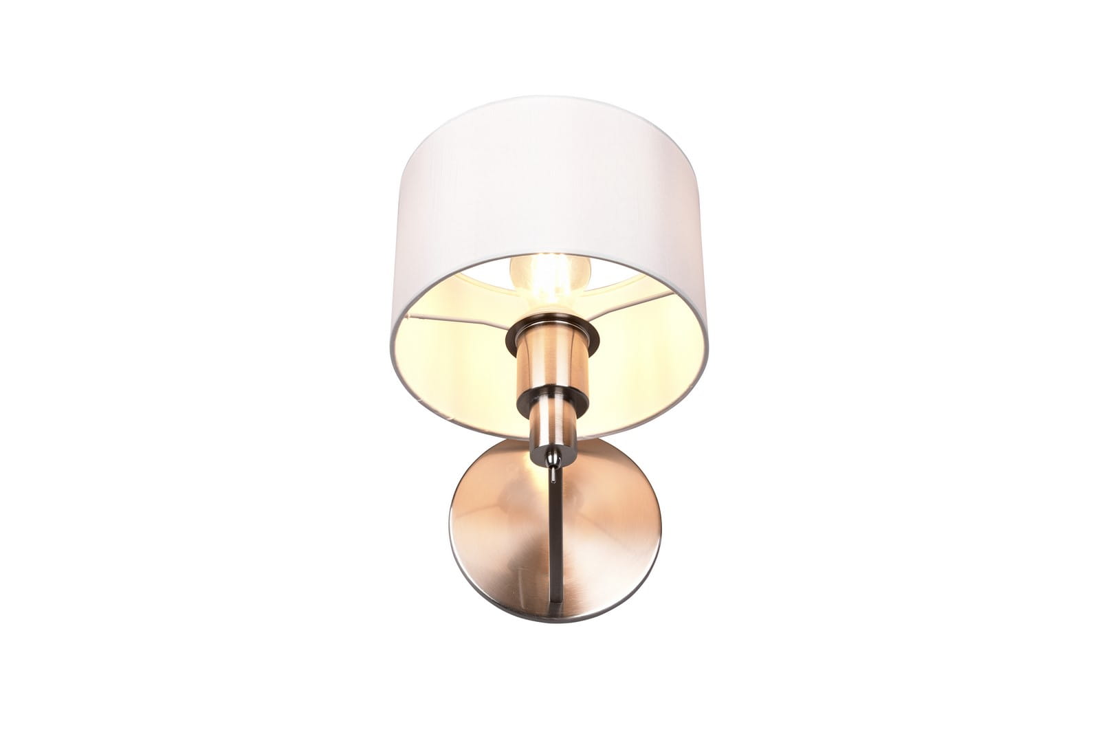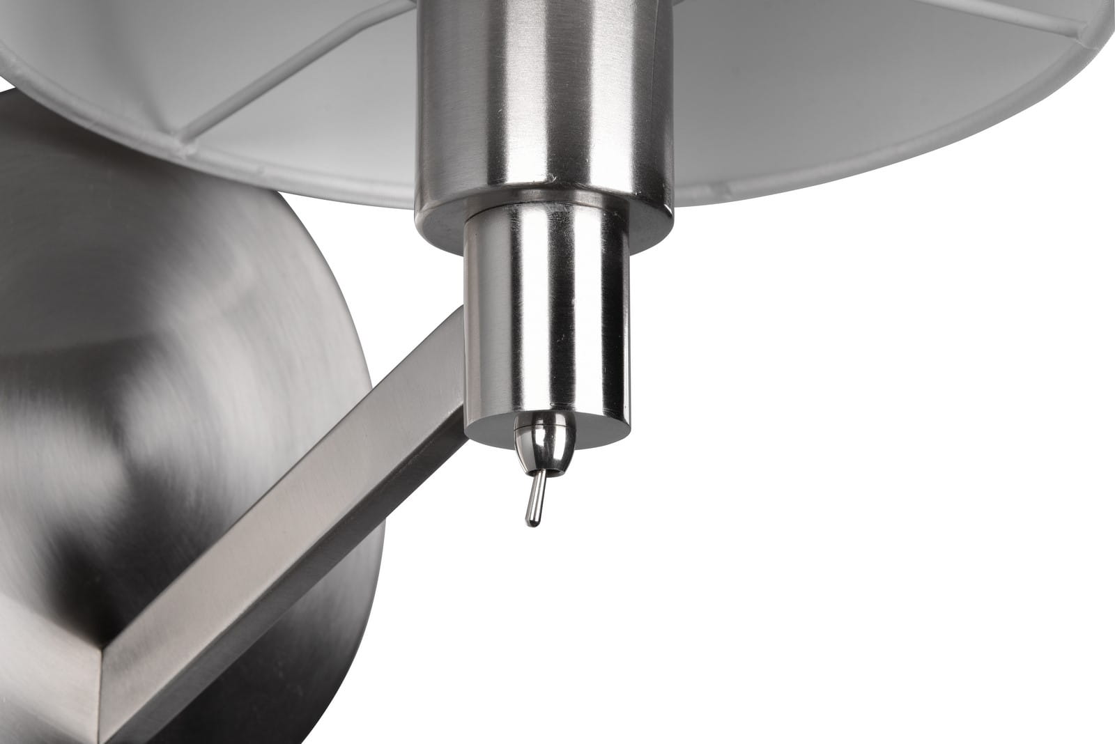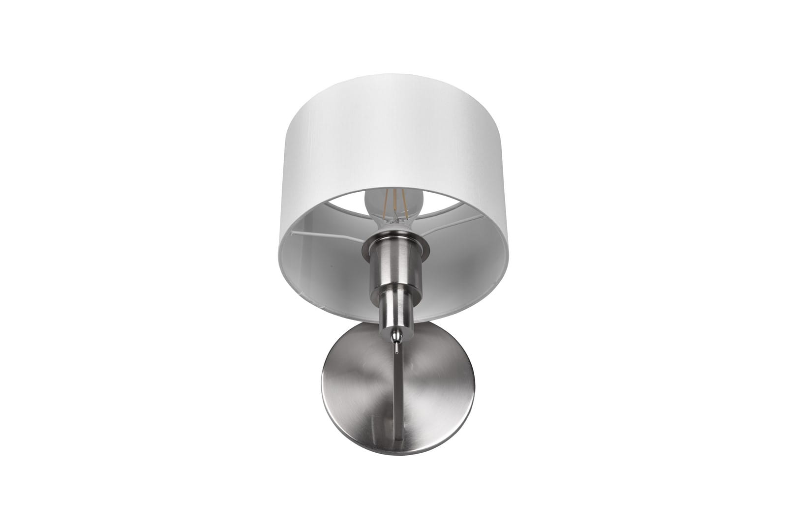 Konstrukcja wykonana została z wysokiej jakości metalu w kolorze srebrnym. Całość utrzymuje okrągłe mocowanie ścienne wraz z geometrycznym ramieniem, do którego przymocowany został owalny abażur z białej tkaniny. Wychodzące z jego wnętrza promienie świetne doskonale rozświetlą wybraną przestrzeń. Włącznik światła umieszczony został przy podstawie lampy. Z zastosowaniem ściemnialnej żarówki możemy dostosować jasność oświetlenia do własnych preferencji, dzięki czemu bez problemu wprowadzimy do wnętrza przytulną i klimatyczną atmosferę.