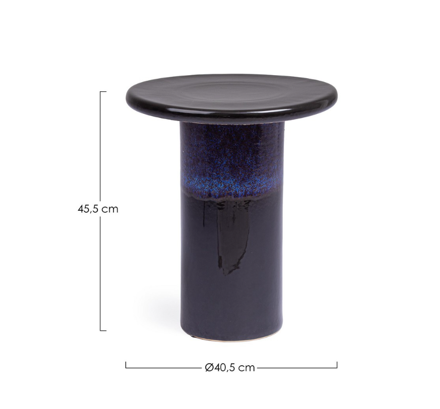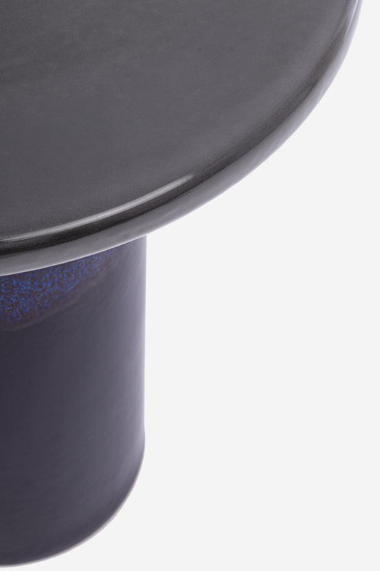 Elegancki stolik kawowy z ceramiki szkliwionej, który zachwyca smukłą formą i głębią koloru. Połączenie intensywnej czerni z niebieskimi refleksami szkliwa nadaje mu wyjątkowy, artystyczny charakter. Dzięki ręcznemu wykonaniu każdy egzemplarz jest unikalny - subtelne różnice w barwie, tonacji czy fakturze to cecha wyjątkowości, która podkreśla jego rzemieślniczy styl.