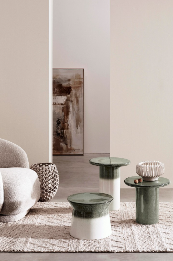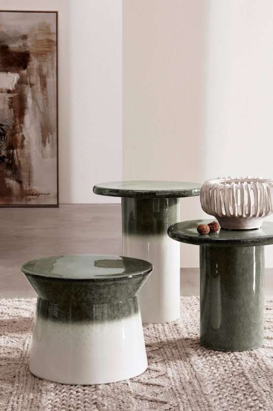 Ceramiczny stolik kawowy Baraki stonowana zieleń H35,5