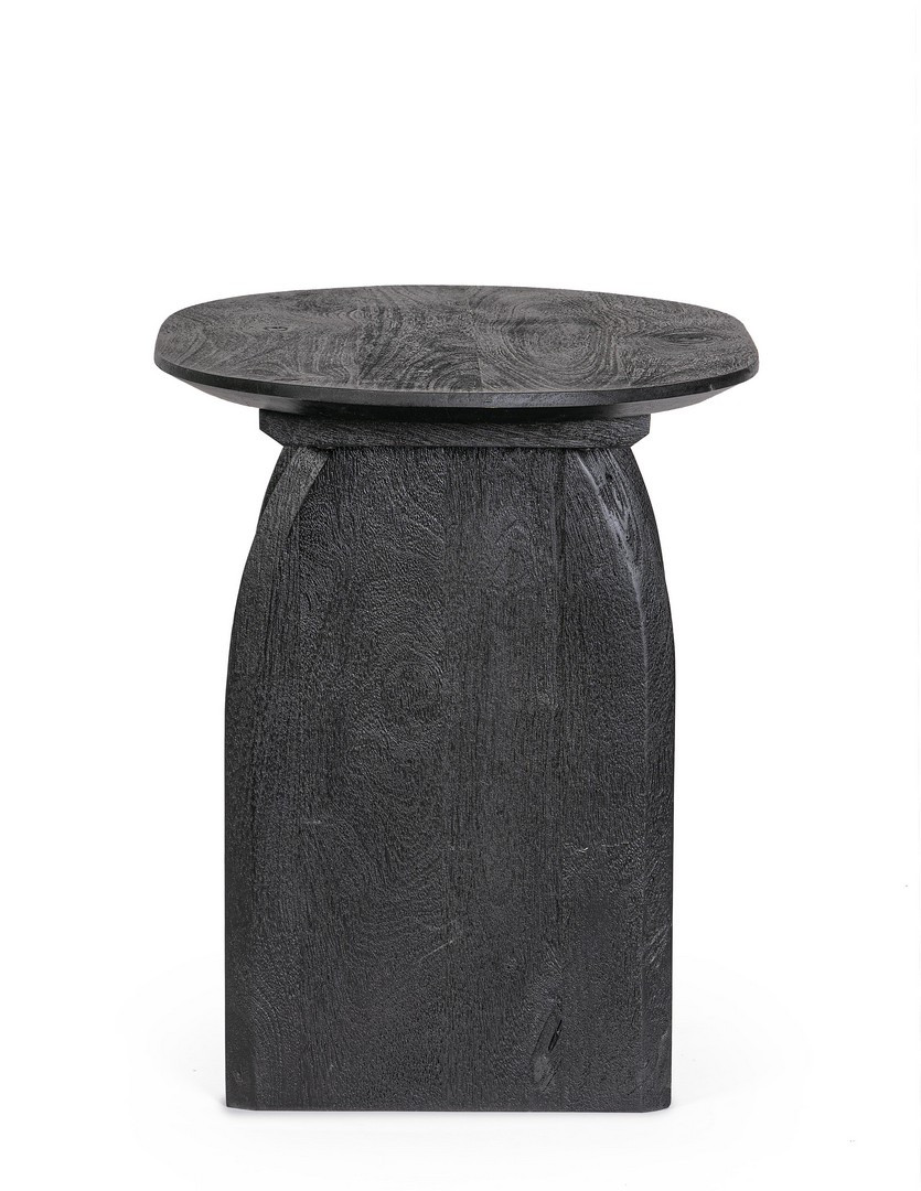 Stolik Monterrey to wyraz nowoczesnego wzornictwa z silnym, rzeźbiarskim charakterem. Wykonany z solidnego drewna mango, został pokryty eleganckim, czarnym wykończeniem na bazie nitrocelulozy, które uwydatnia unikalną, chropowatą fakturę drewna. Jego owalny blat spoczywa na dwóch imponujących, łukowato wygiętych podstawach, tworząc monumentalną i stabilną bryłę. To designerski akcent, który doskonale sprawdzi się w nowoczesnych, industrialnych oraz eklektycznych wnętrzach.