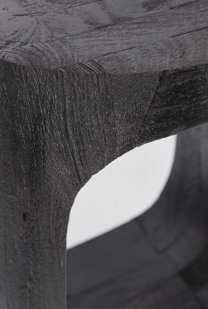 Stolik Lopez to prawdziwa rzeźba użytkowa, która wprowadza do wnętrza organiczny i awangardowy design. Wykonany z litego drewna mango, ma unikalny, opływowy kształt z asymetrycznym wycięciem, które nadaje mu lekkości i nowoczesności. Mebel jest wykończony głębokim, matowym czarnym kolorem na bazie nitrocelulozy, który uwydatnia surową, dotykową fakturę drewna. To wyjątkowy element dekoracyjny, idealny dla miłośników sztuki współczesnej i eklektycznych, wyrazistych aranżacji.