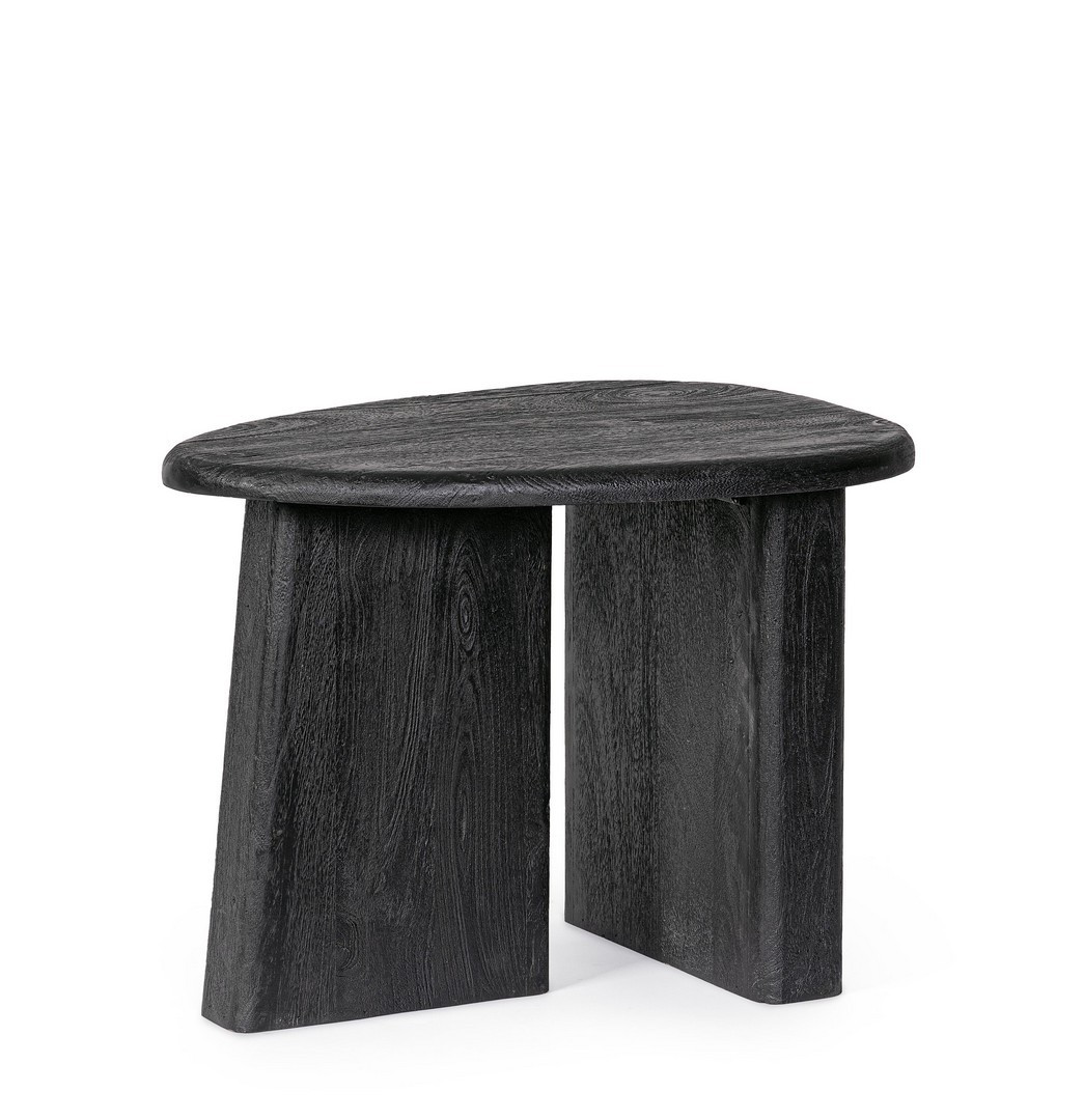 Dzięki kompaktowym wymiarom (60 x 45 cm) i niskiej wysokości (45 cm) stolik Zacatecas jest idealny jako stolik boczny lub postument w salonie, sypialni lub gabinecie. Głęboka czerń i nowoczesna, opływowa forma sprawiają, że doskonale pasuje do wnętrz w stylu modern, industrialnym i eklektycznym, stanowiąc mocny i elegancki akcent. Jest to solidny, wytrzymały mebel od Bizzotto, który łączy włoski zmysł estetyczny z autentycznością naturalnego materiału.