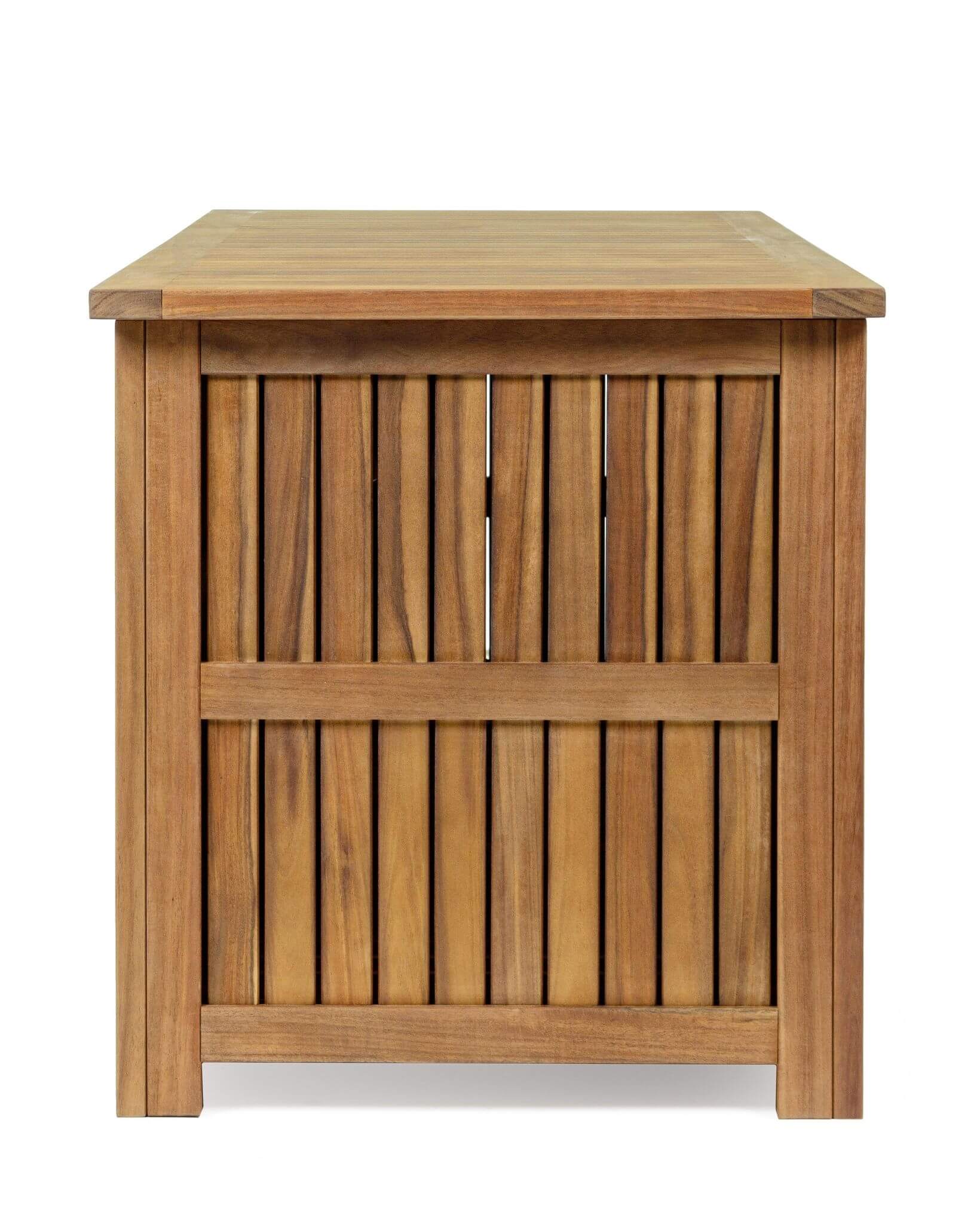 Skrzynia ogrodowa została wykonana z drewna akacjowego zabezpieczonego olejem. Do łączenia elementów konstrukcji służą wkręty ze stali ocynkowanej.