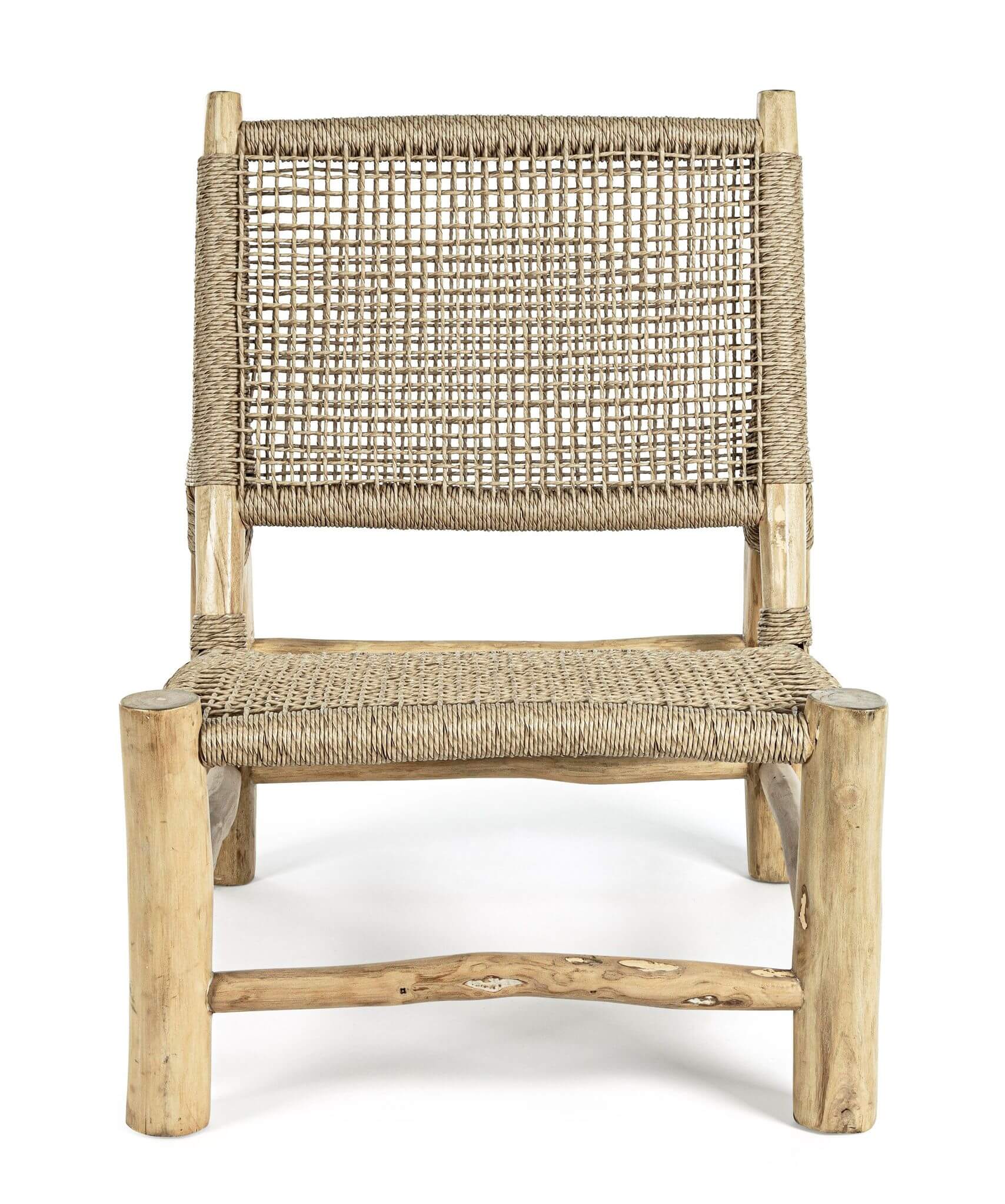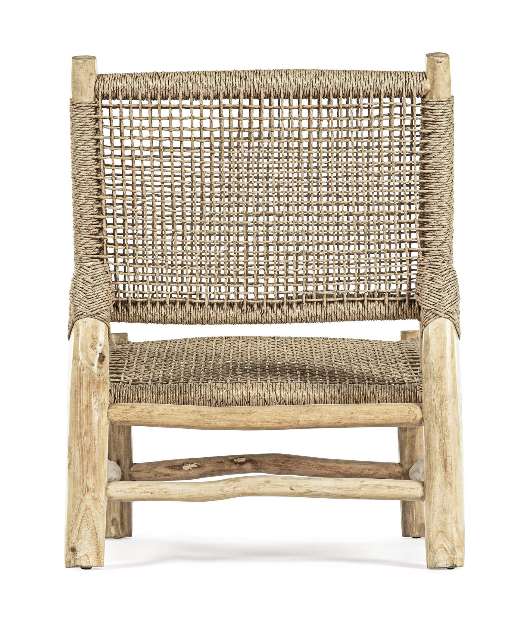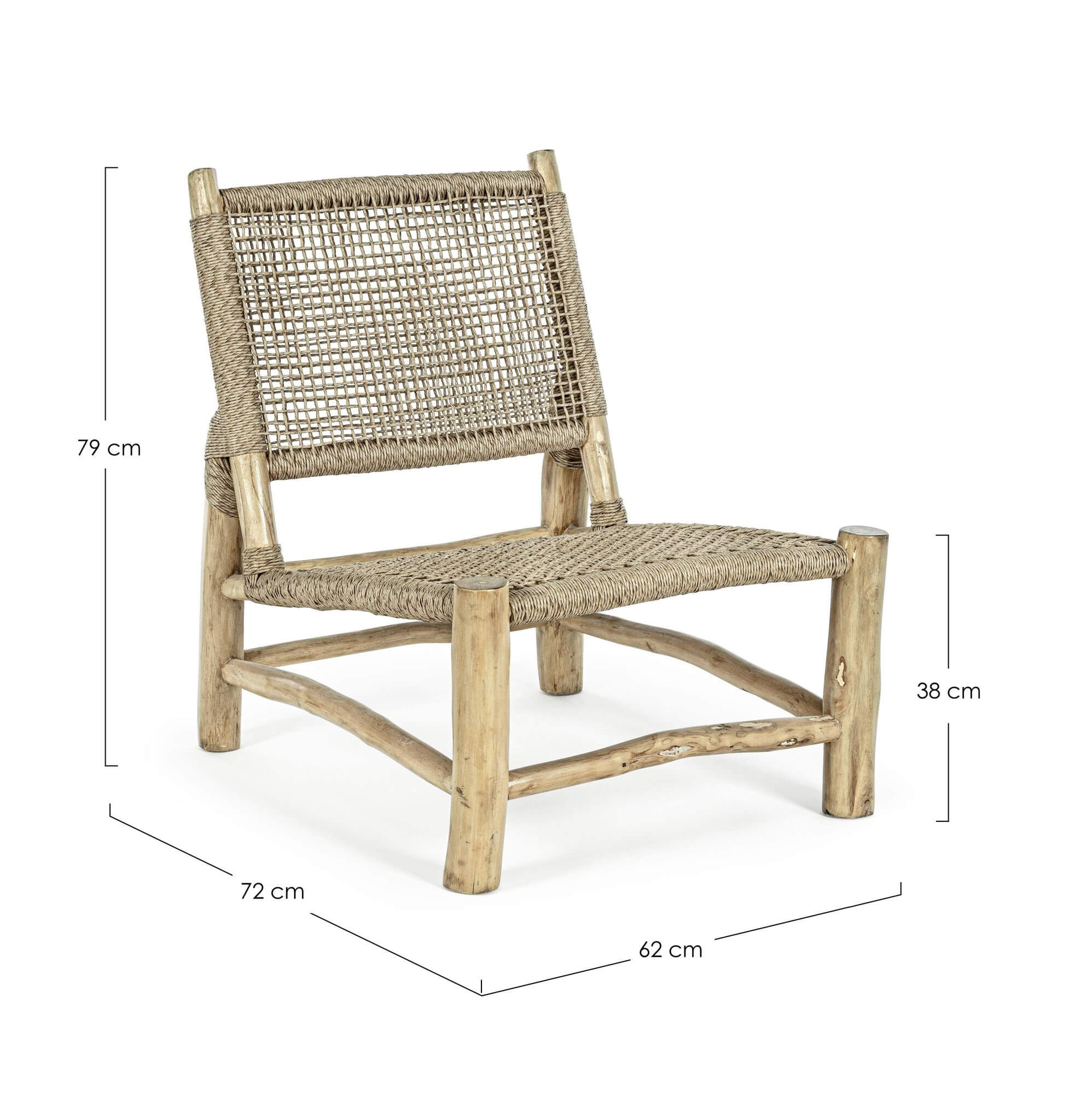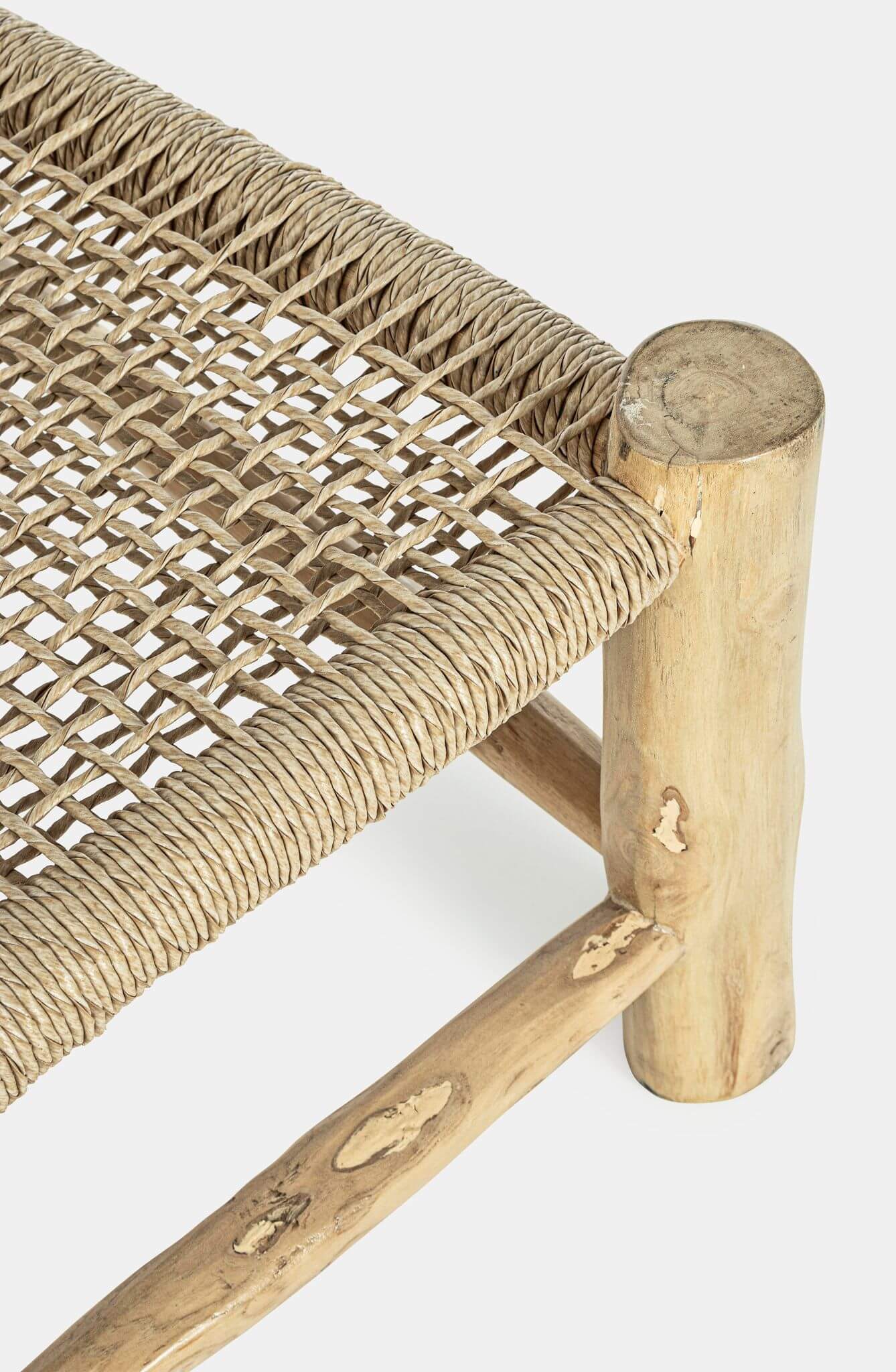 Wykonany z naturalnych gałęzi teku. Siedzisko oraz oparcie zostały utkane z syntetycznej wikliny.