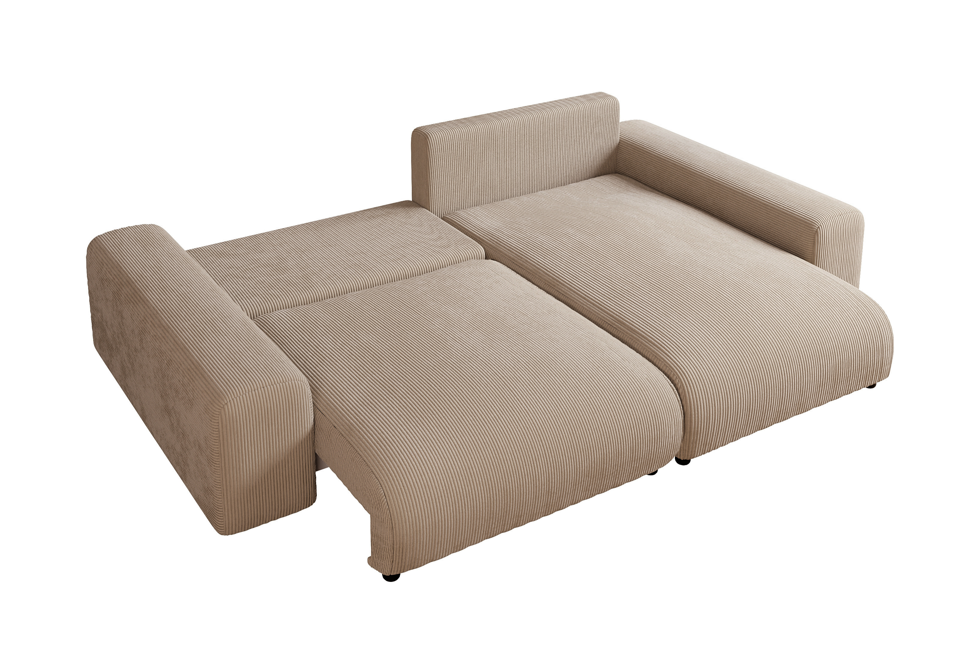 Duża sofa narożna z funkcją spania Mana tkanina w kolorze cappuccino