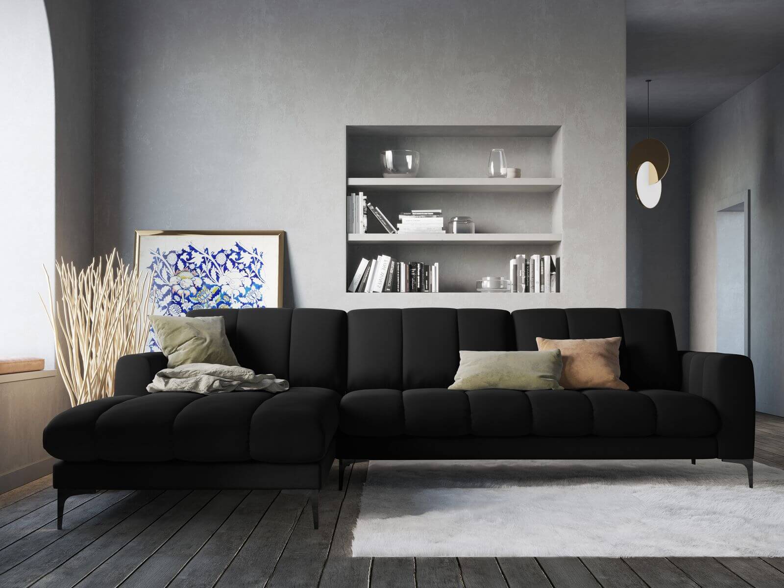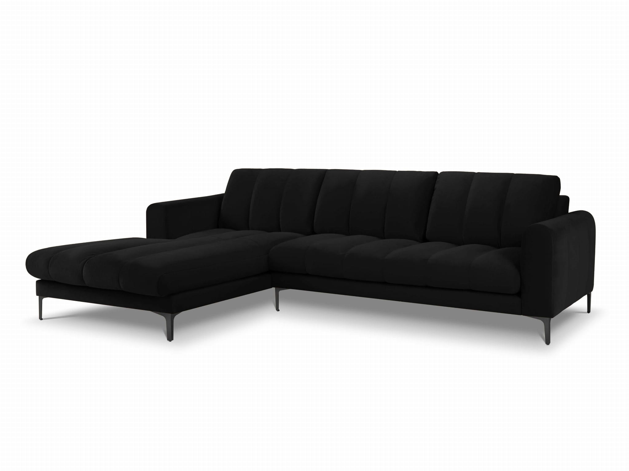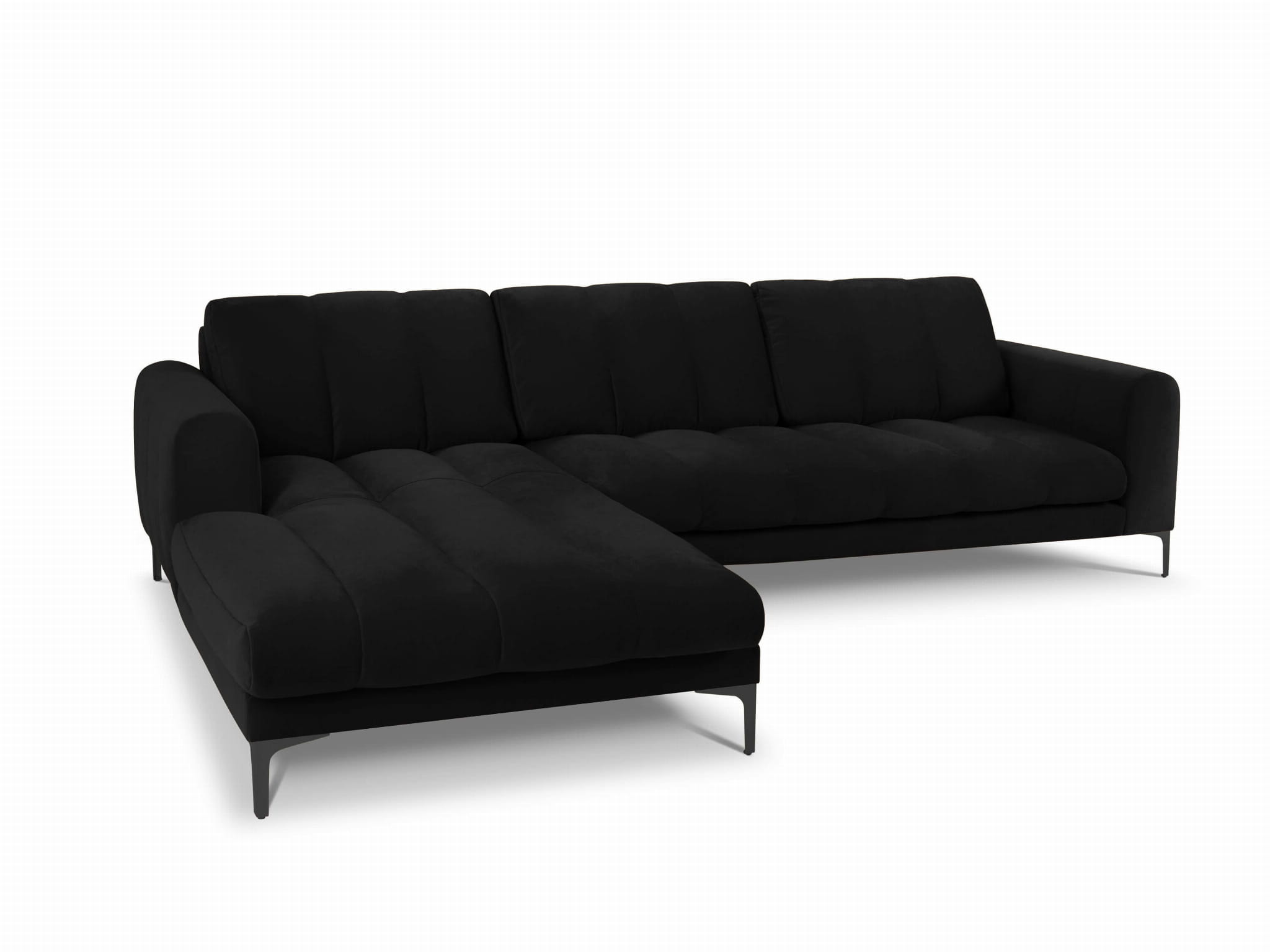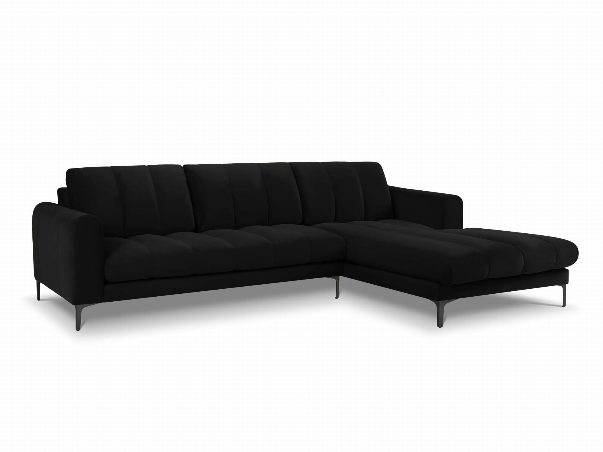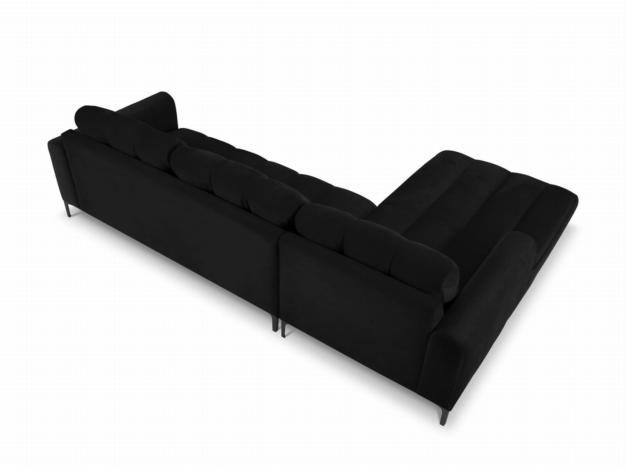 Duży narożnik Gina czarny aksamit na metalowych nóżkach