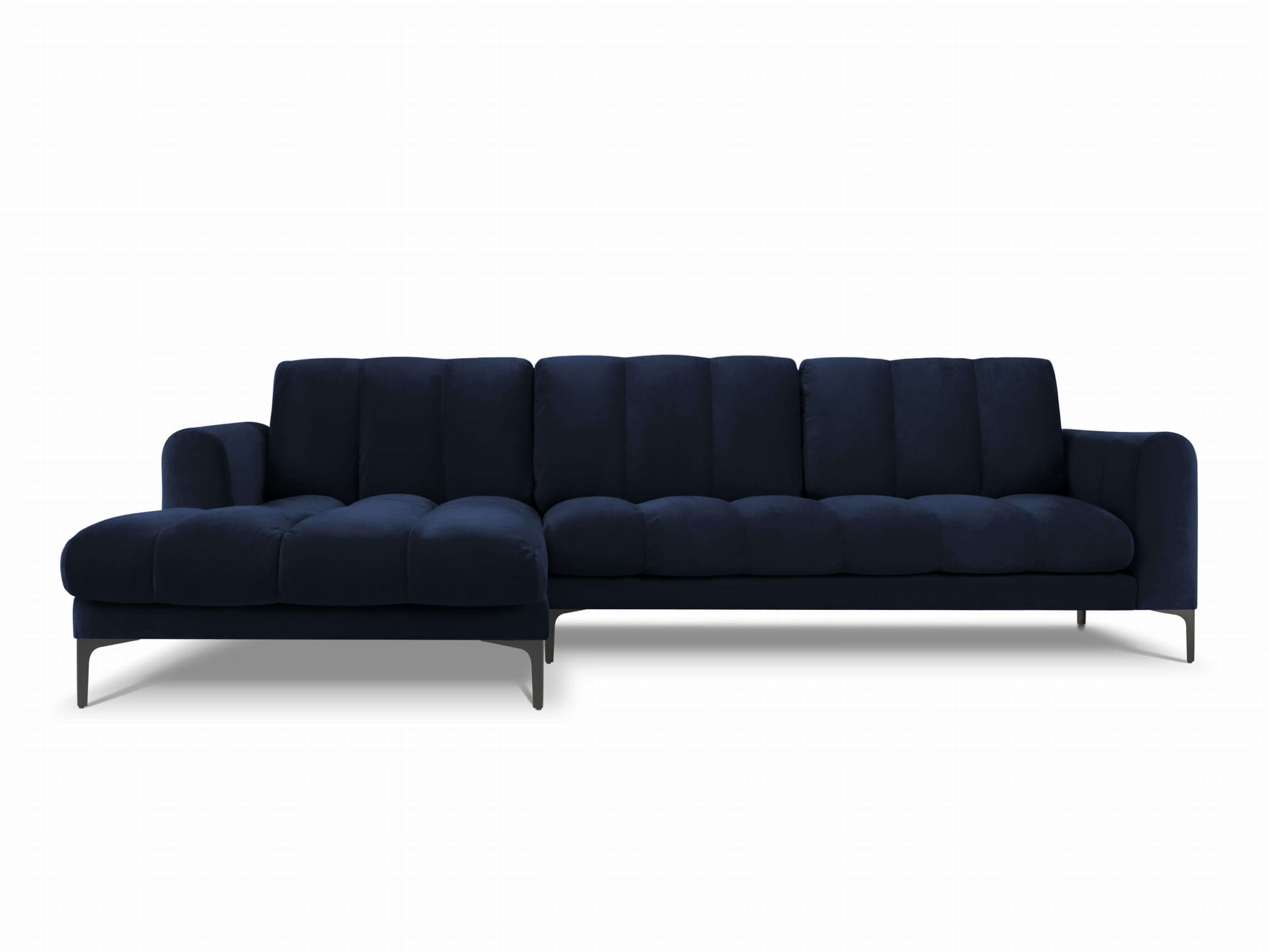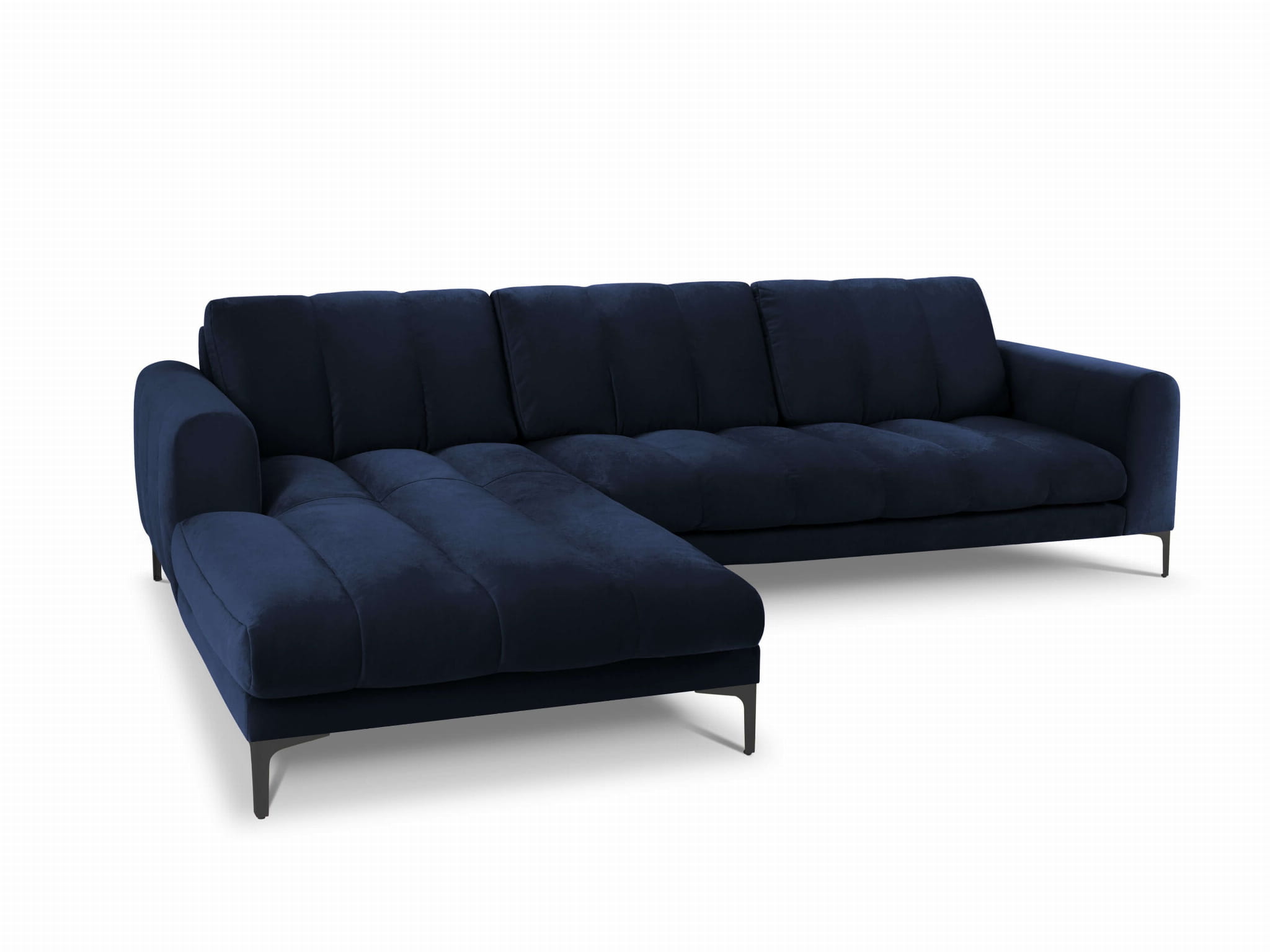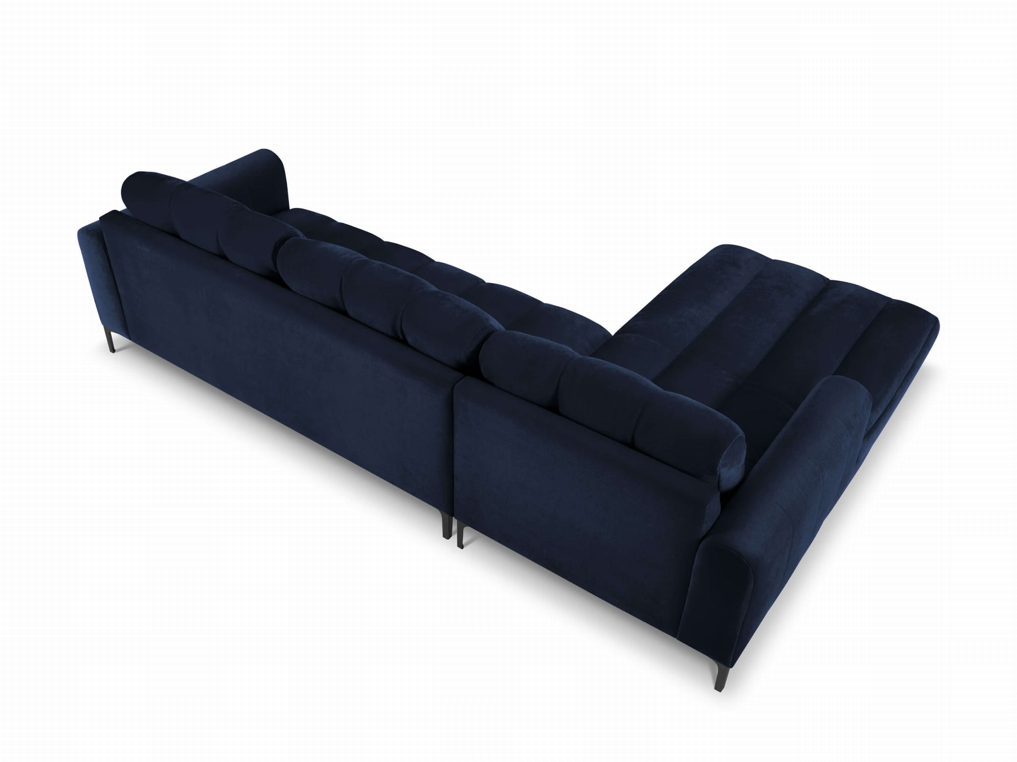 Duży narożnik Gina granatowy aksamit na czarnych nóżkach