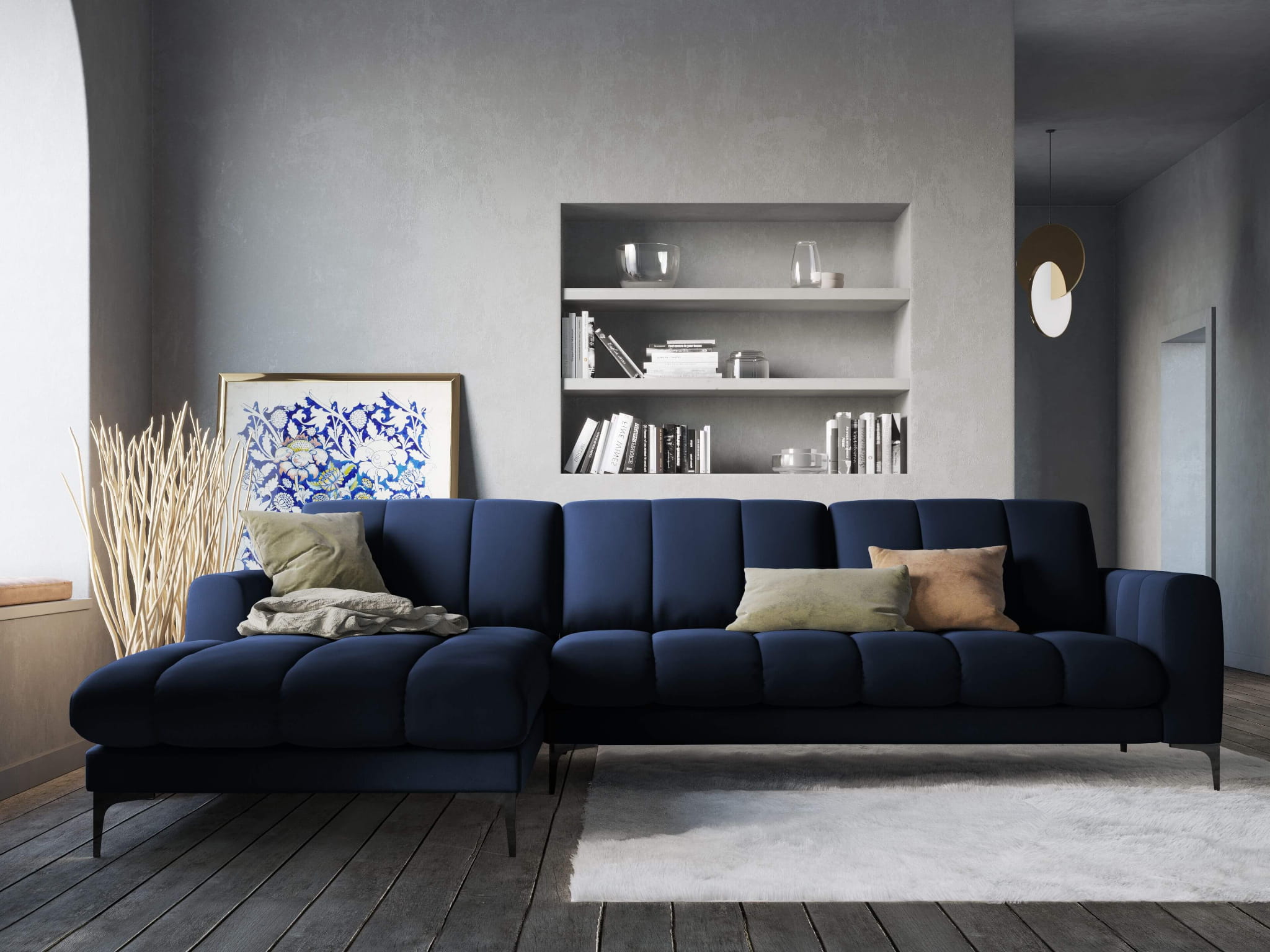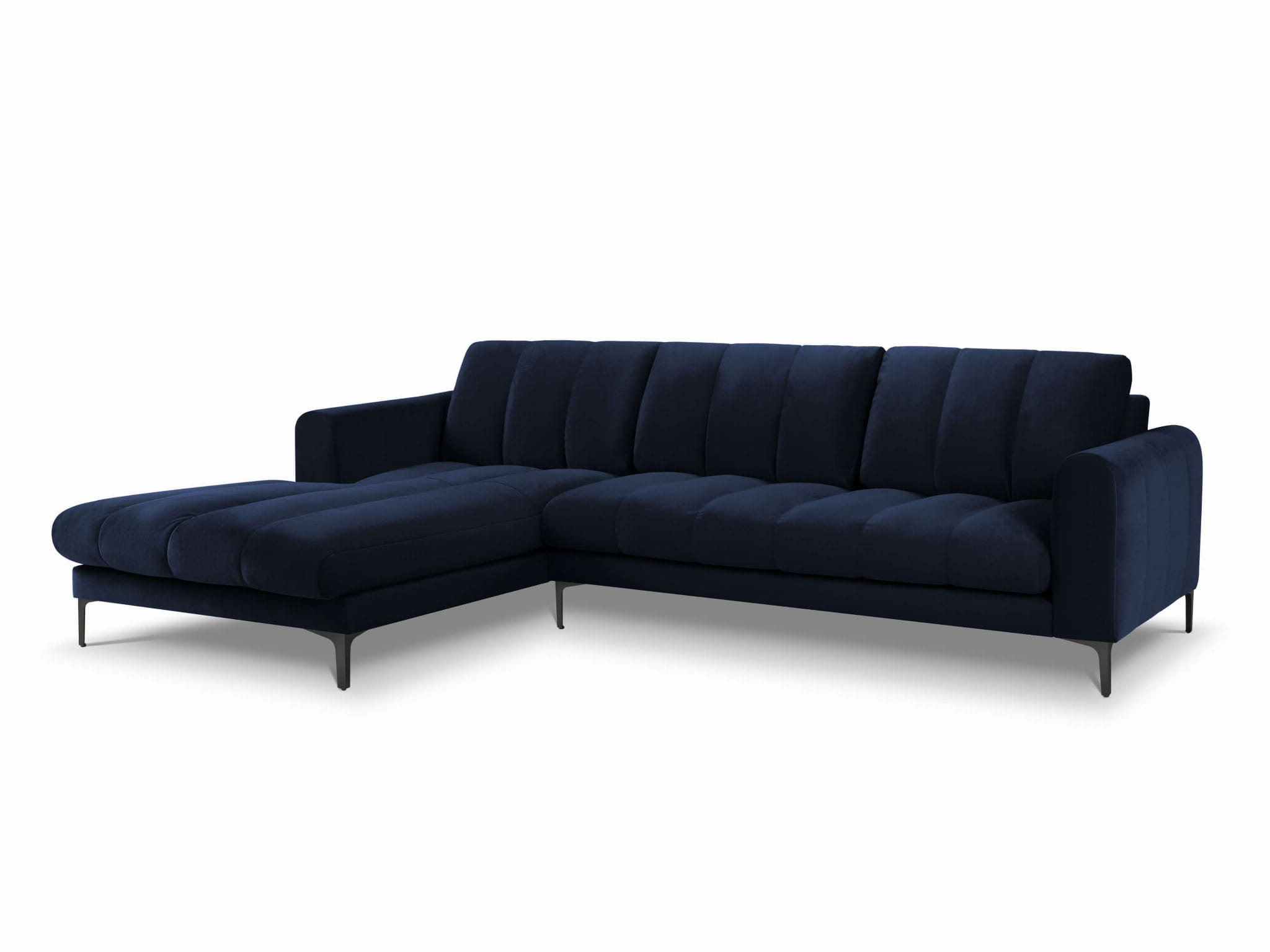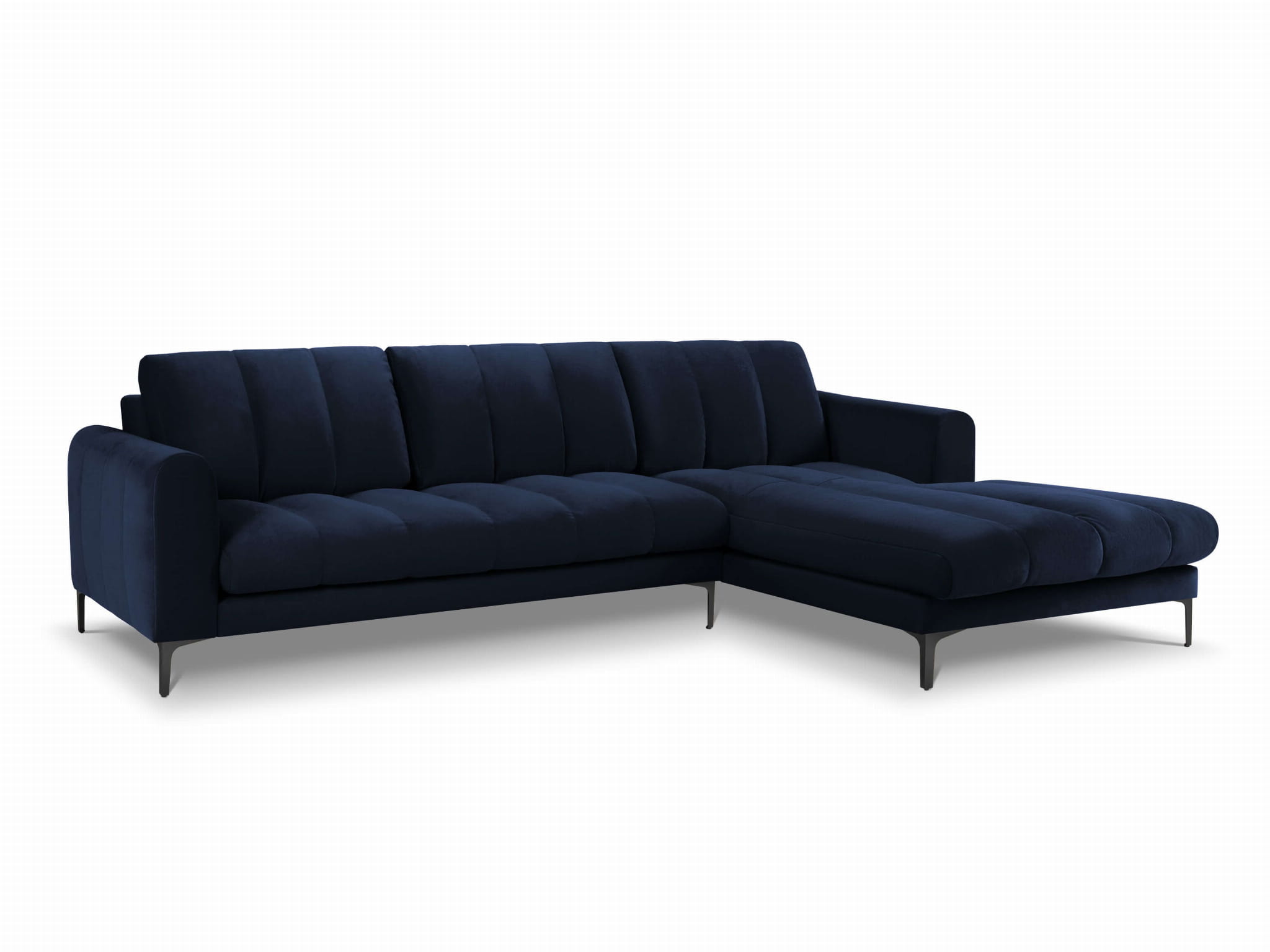 Duży narożnik Gina granatowy aksamit na czarnych nóżkach