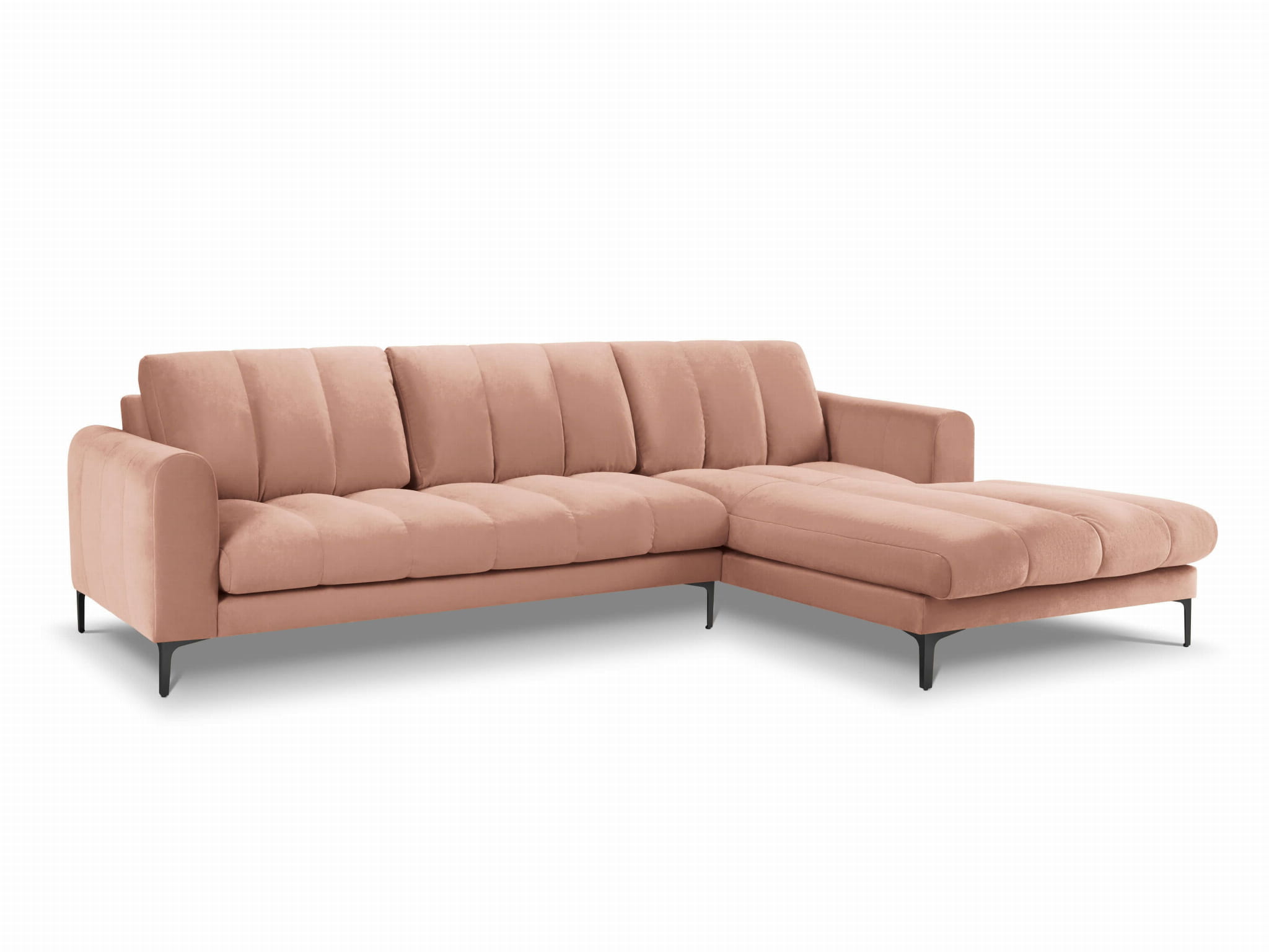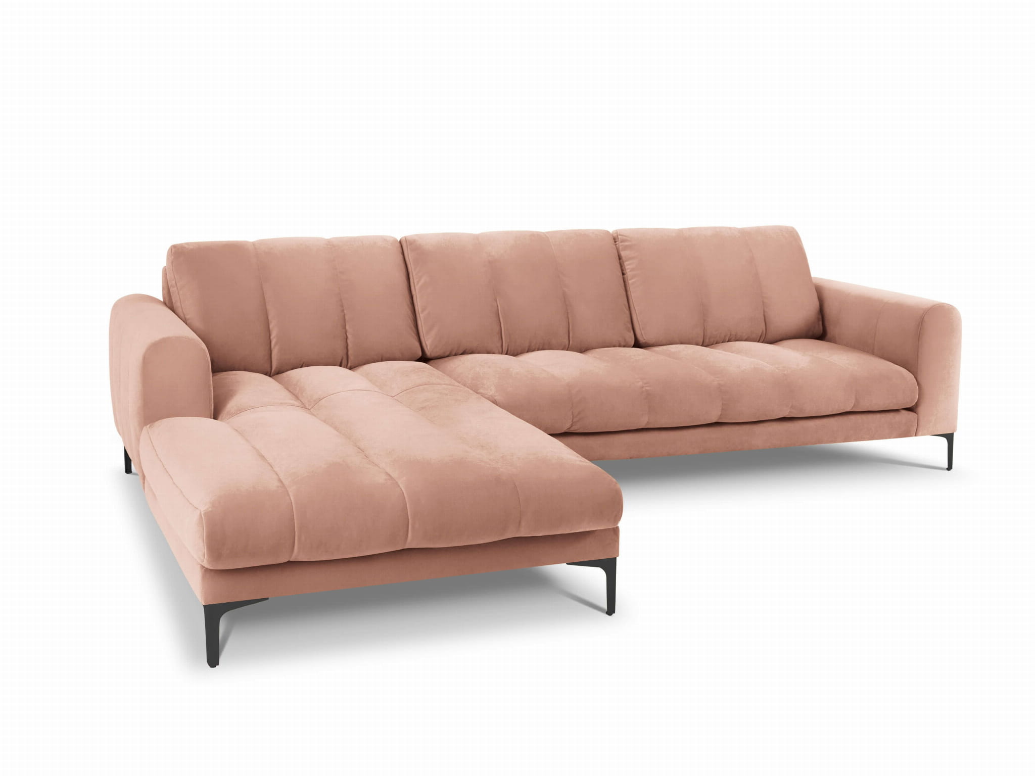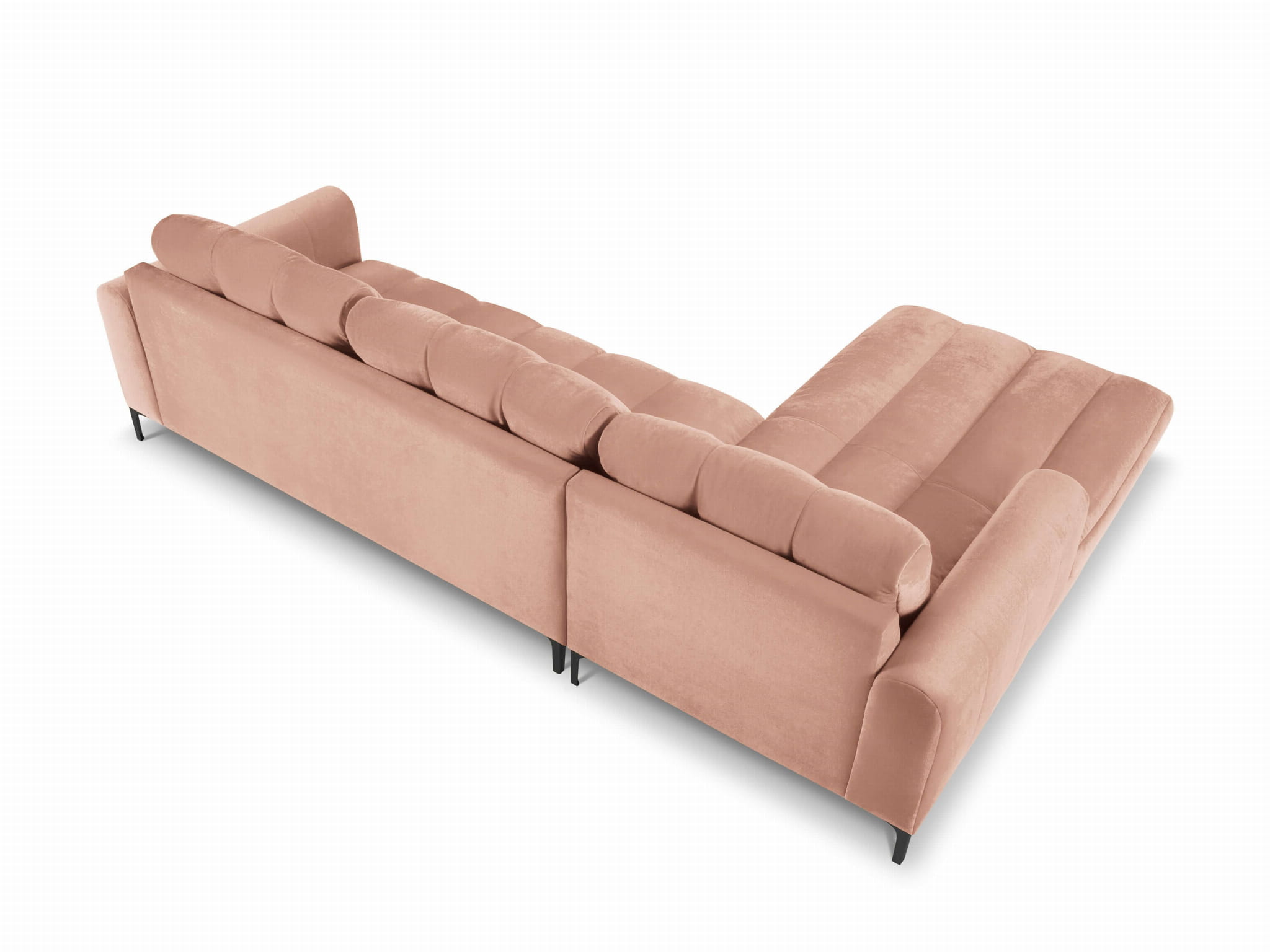 Duży narożnik Gina różowy aksamit na czarnych nóżkach