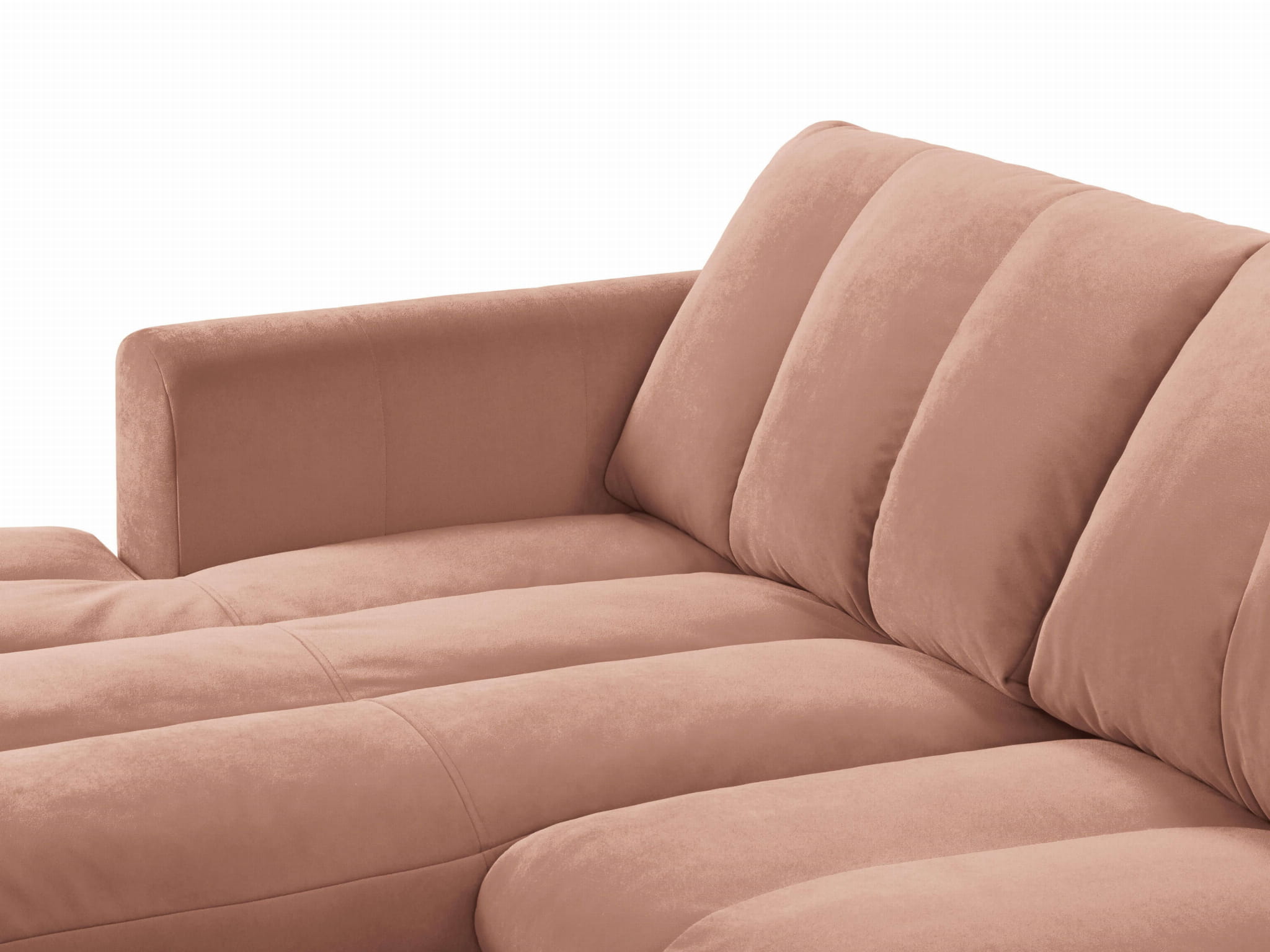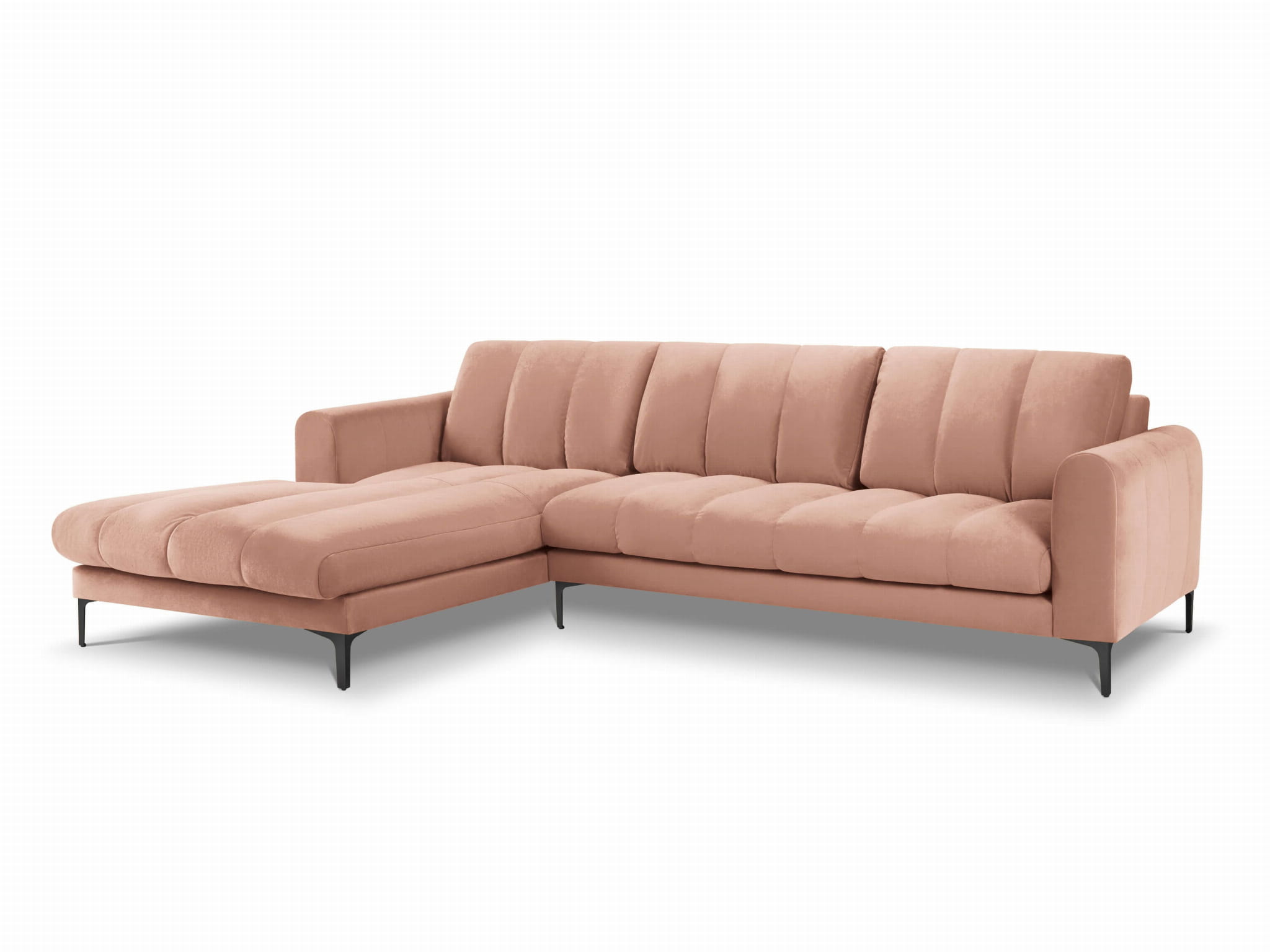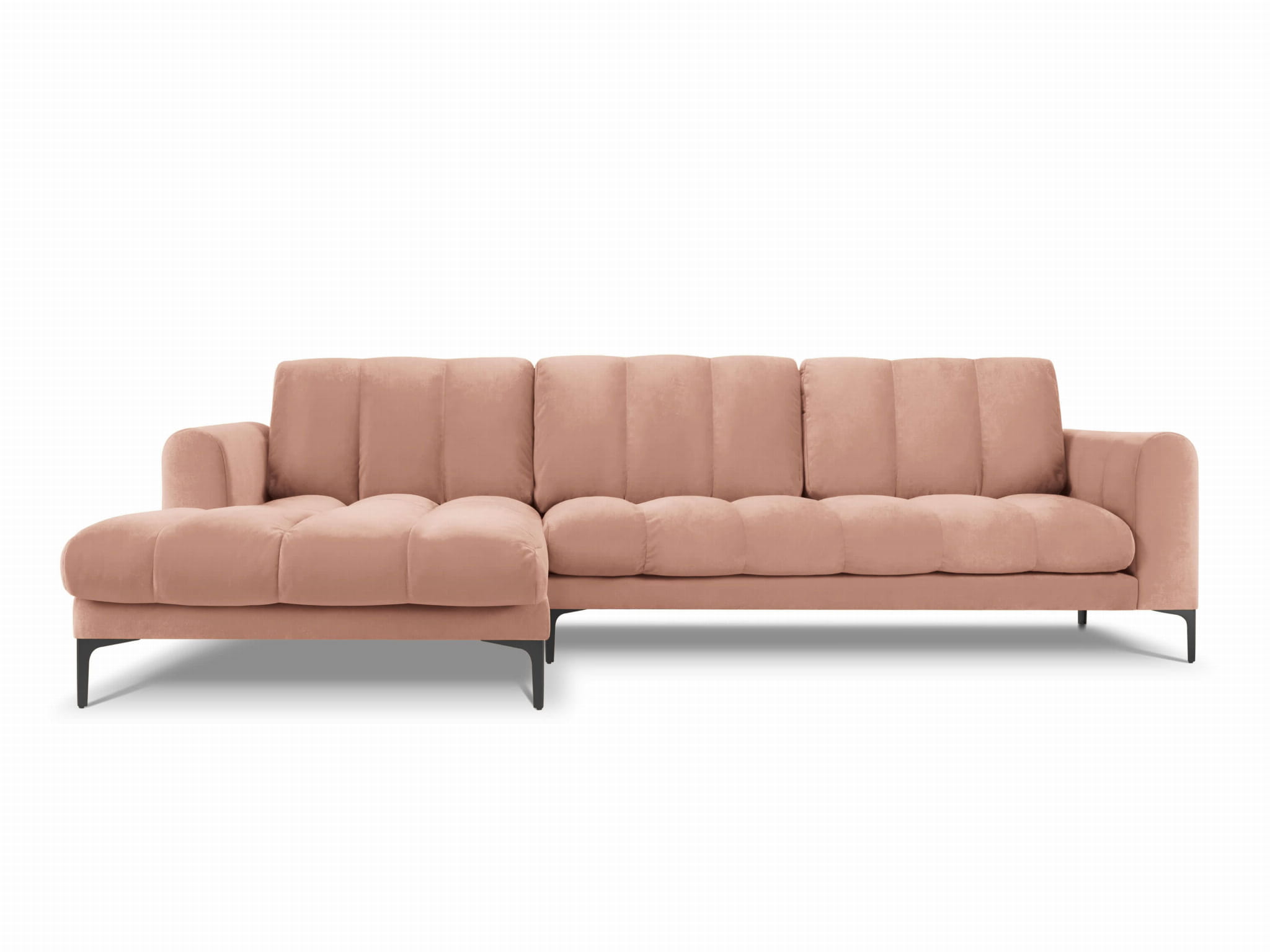 Duży narożnik Gina różowy aksamit na czarnych nóżkach
