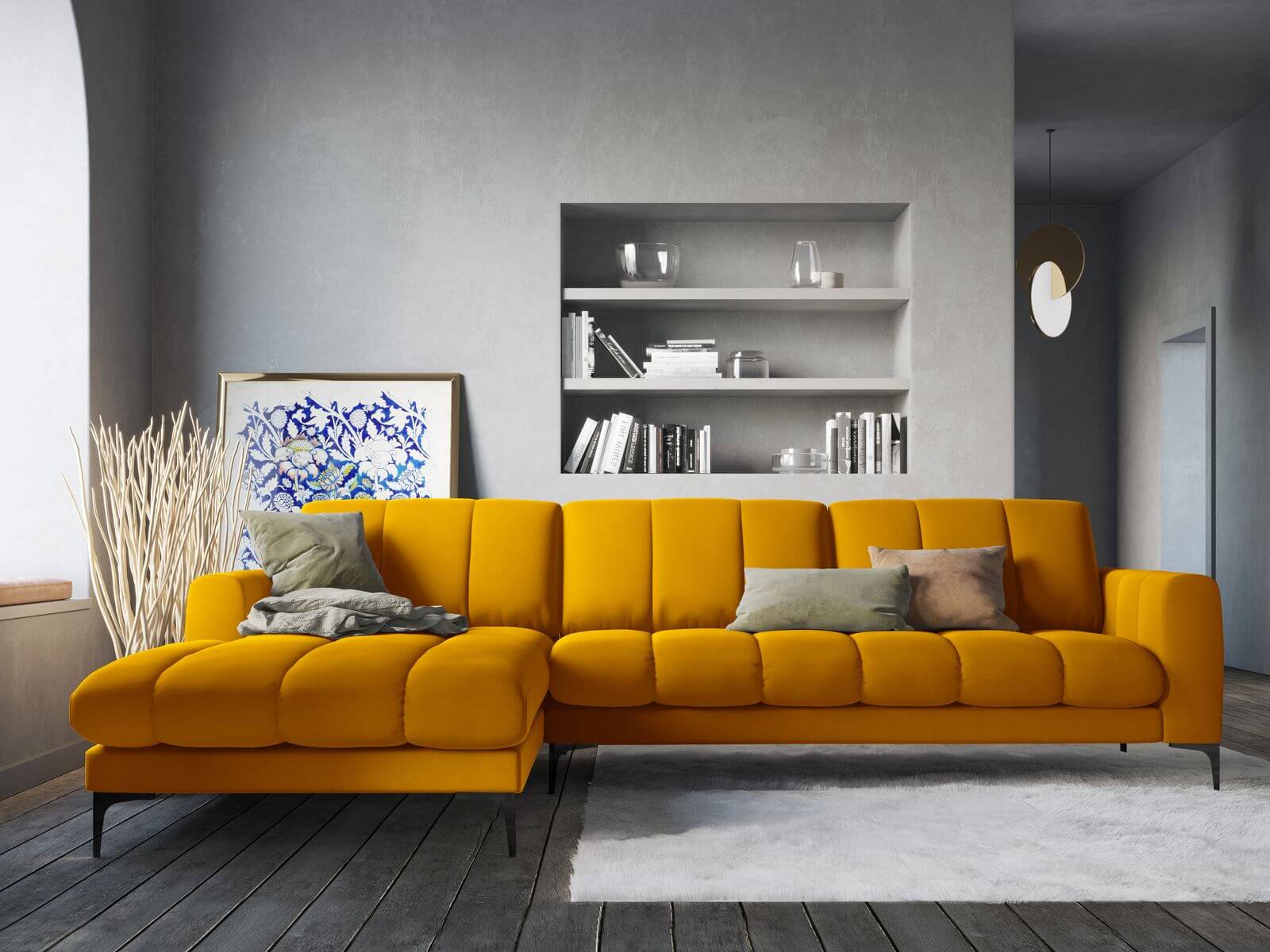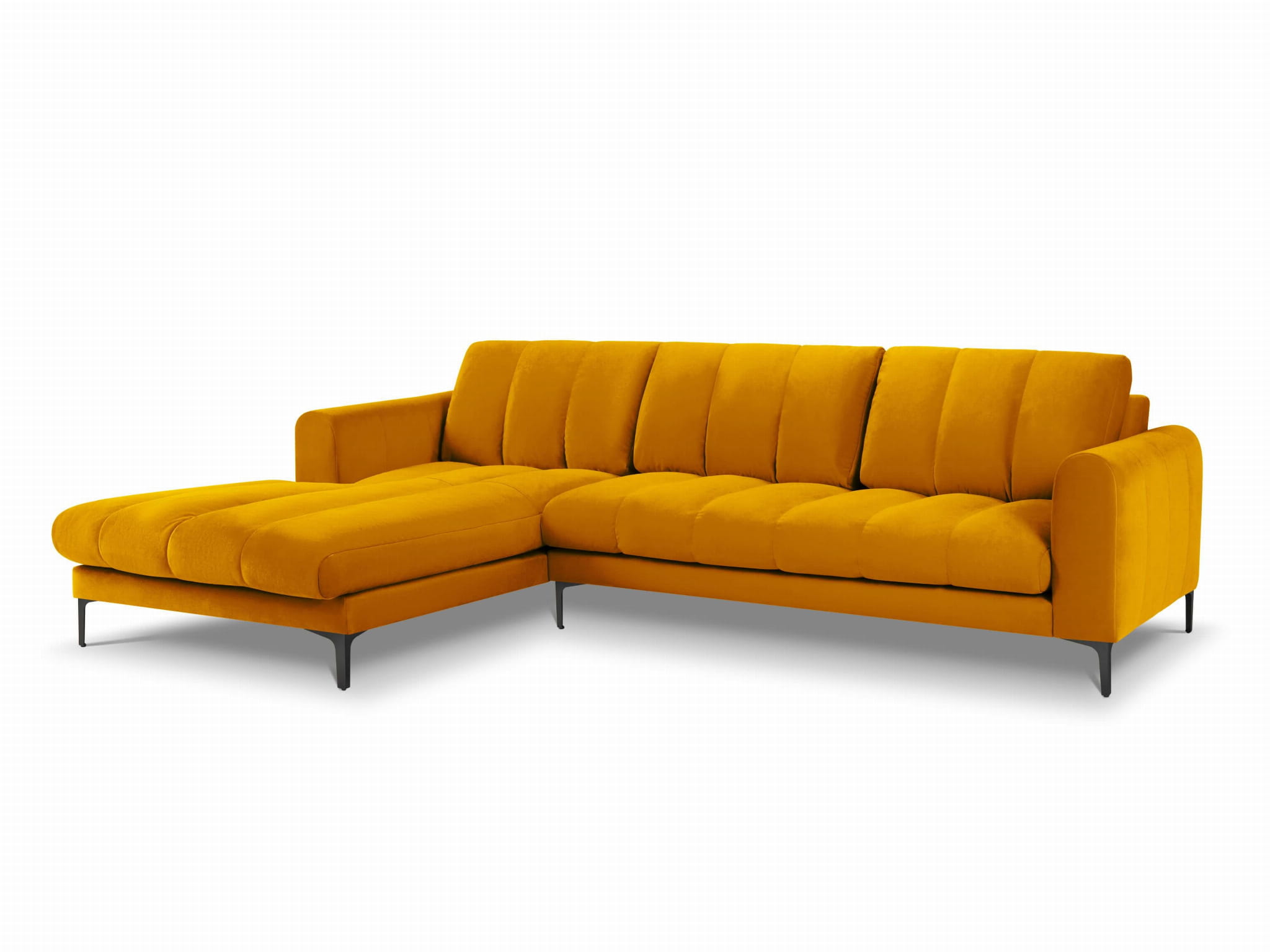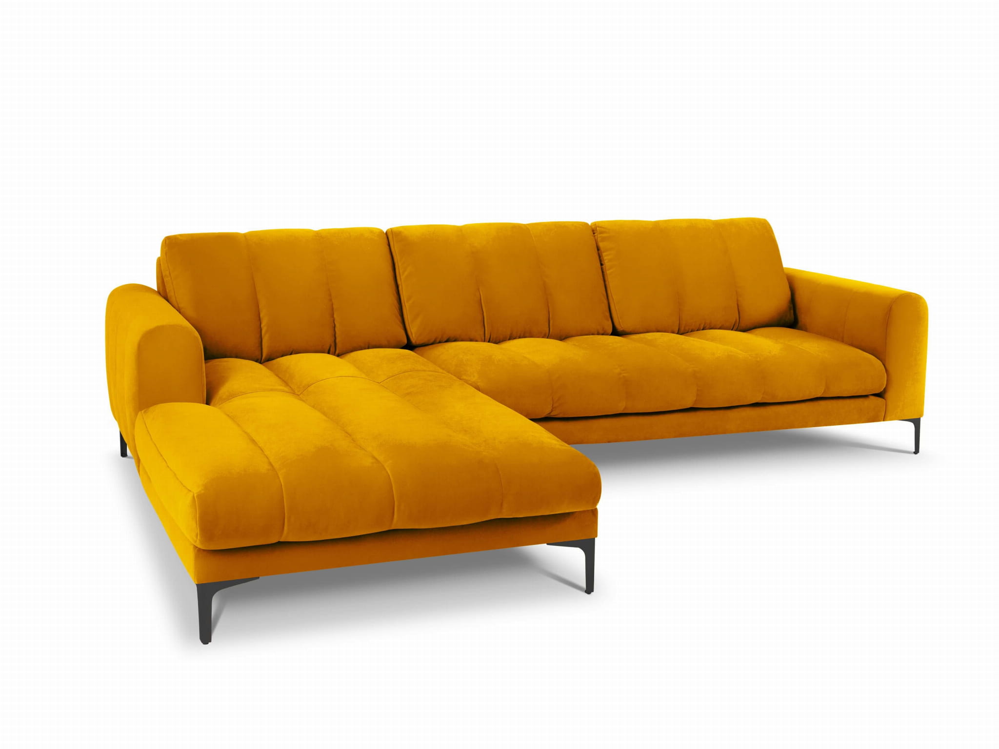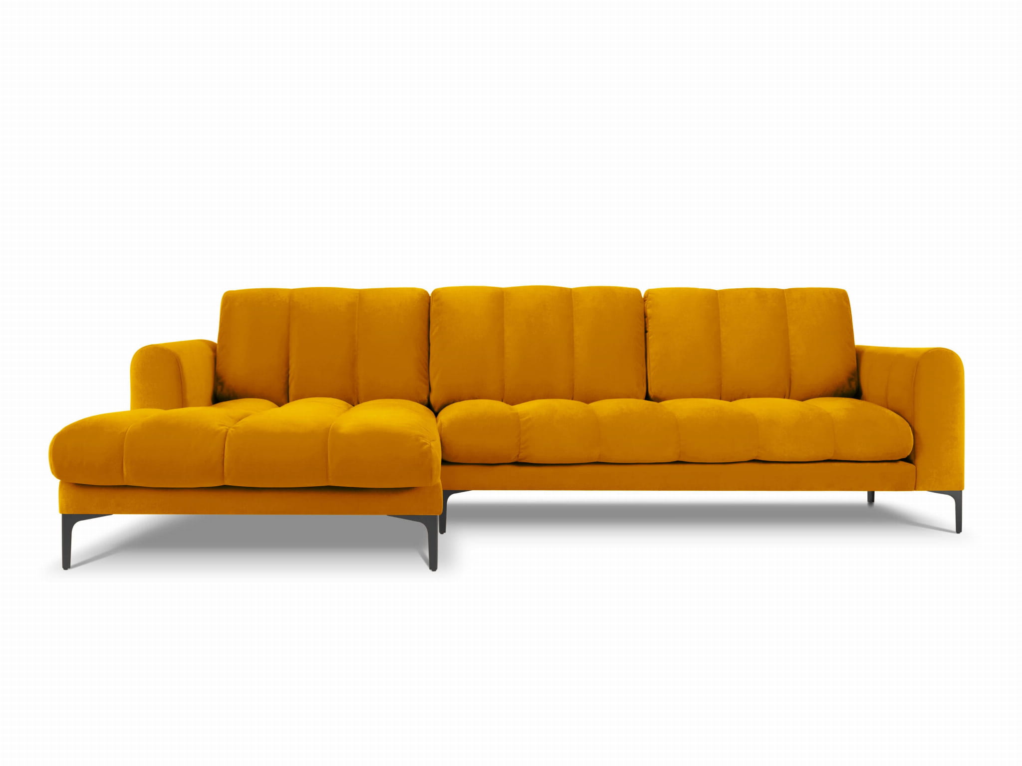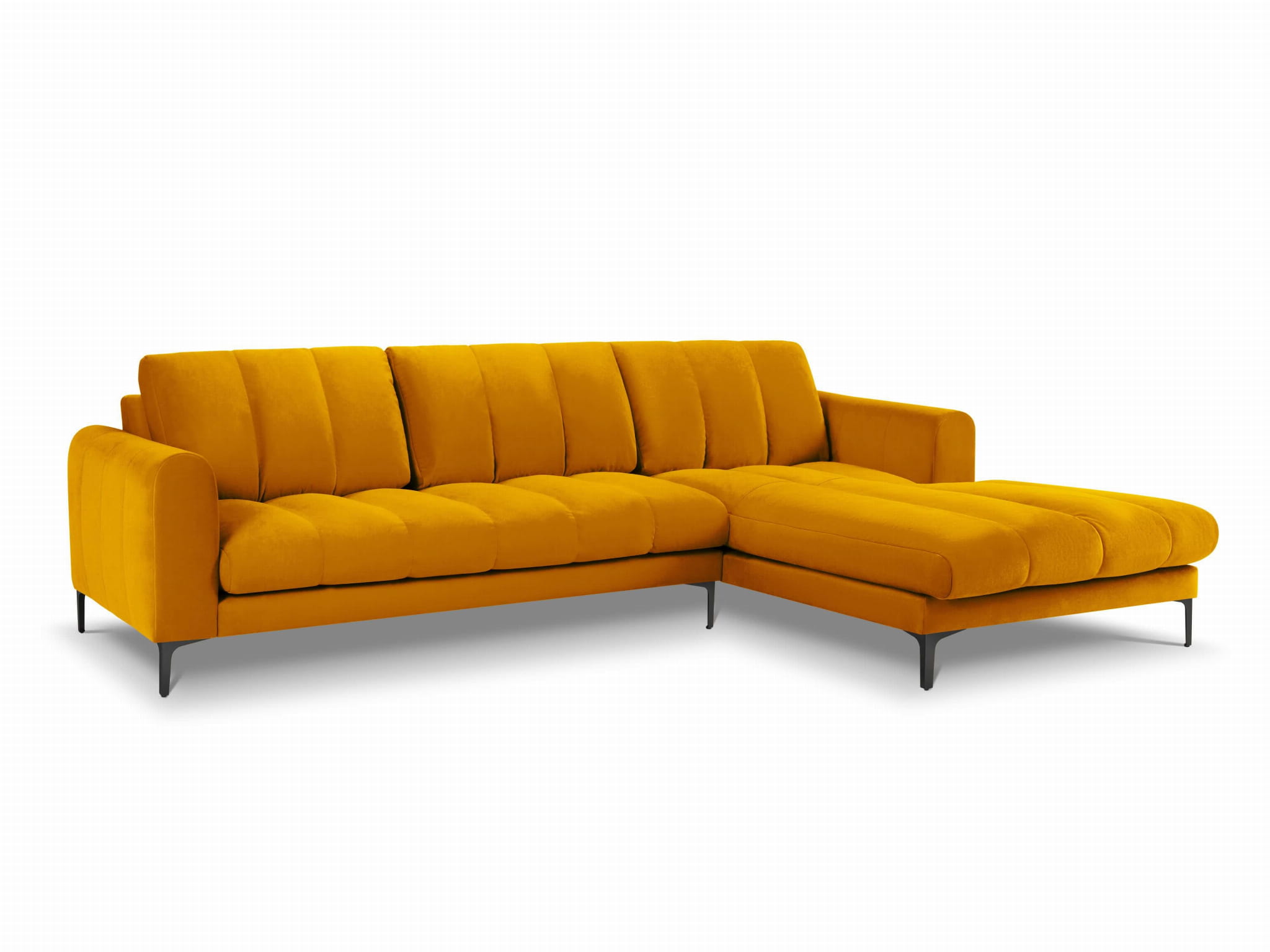 Duży narożnik Gina żółty aksamit na czarnych nóżkach