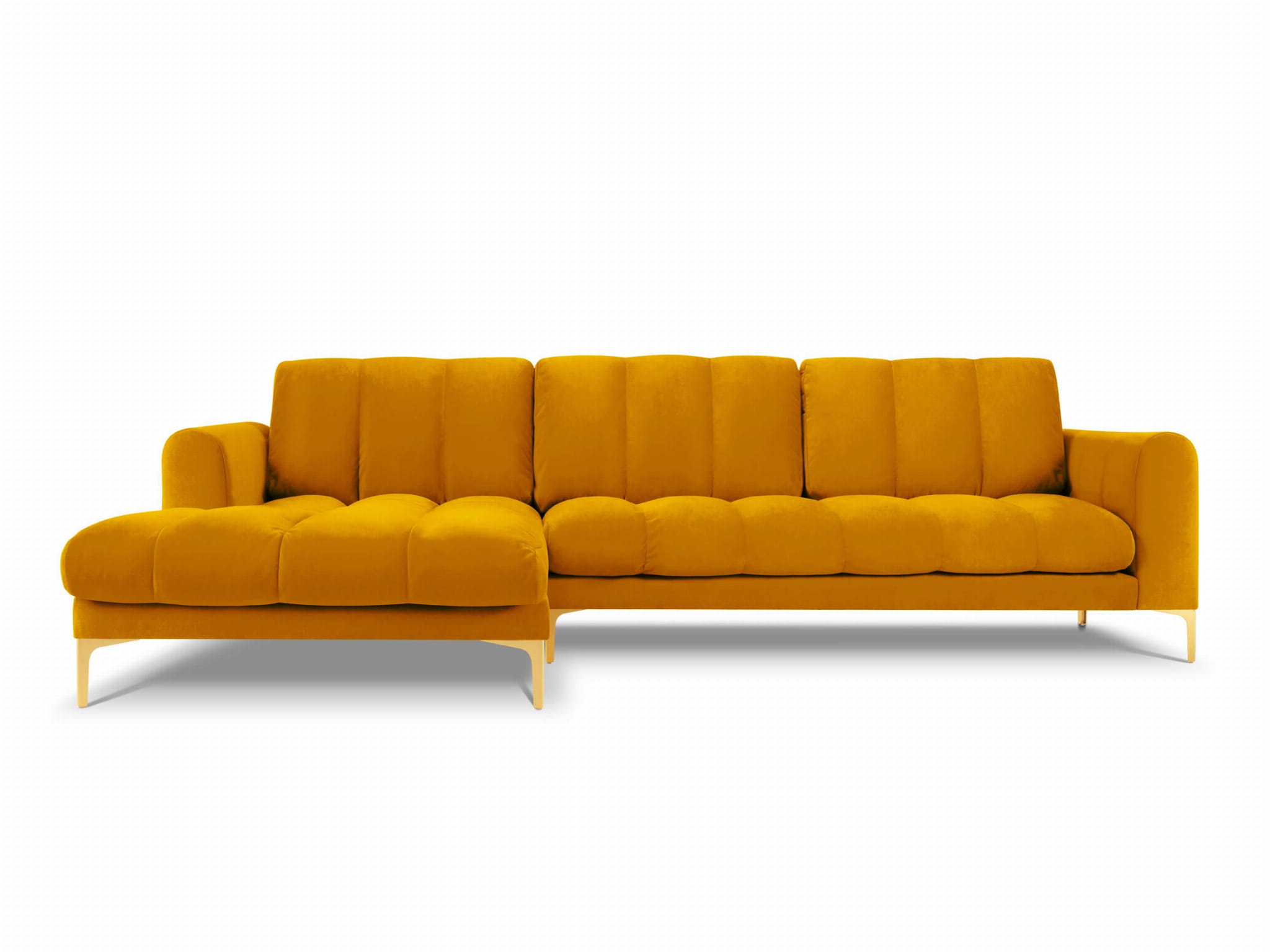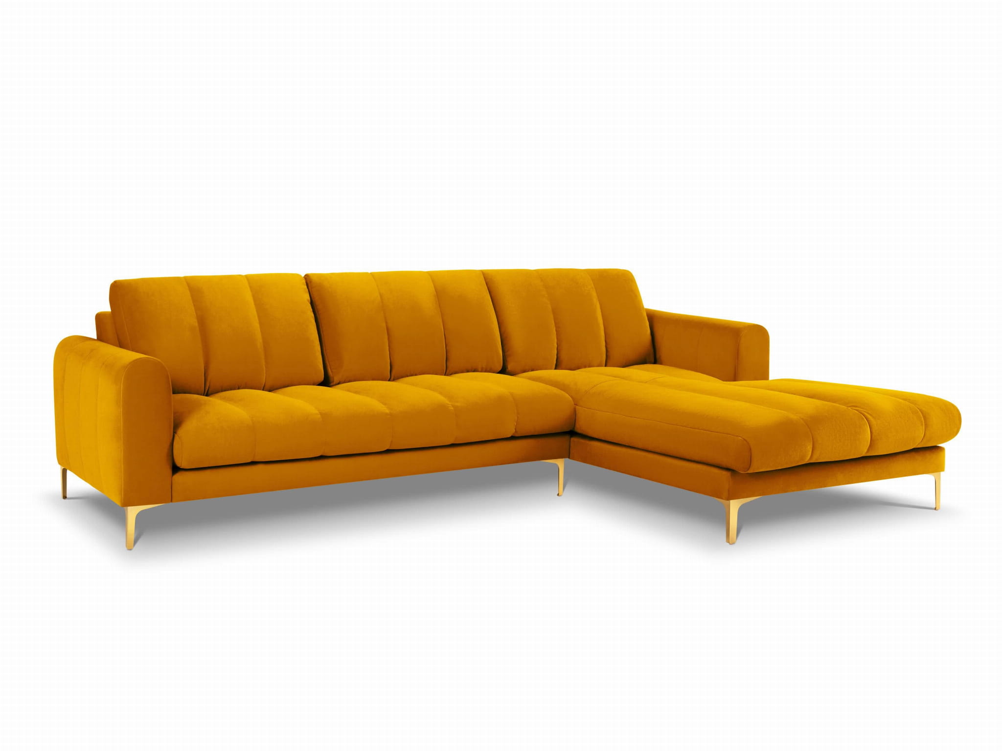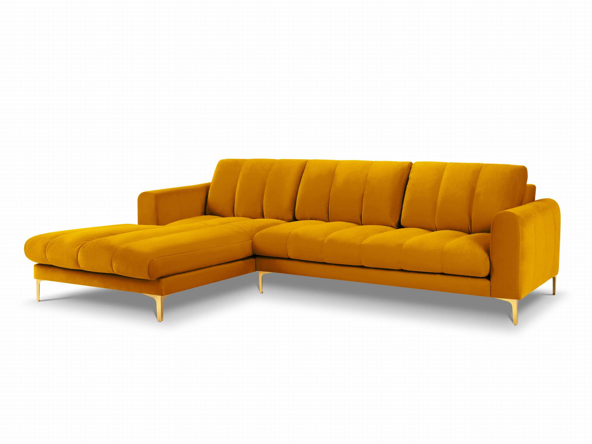 Duży narożnik Gina żółty aksamit na złotych nóżkach