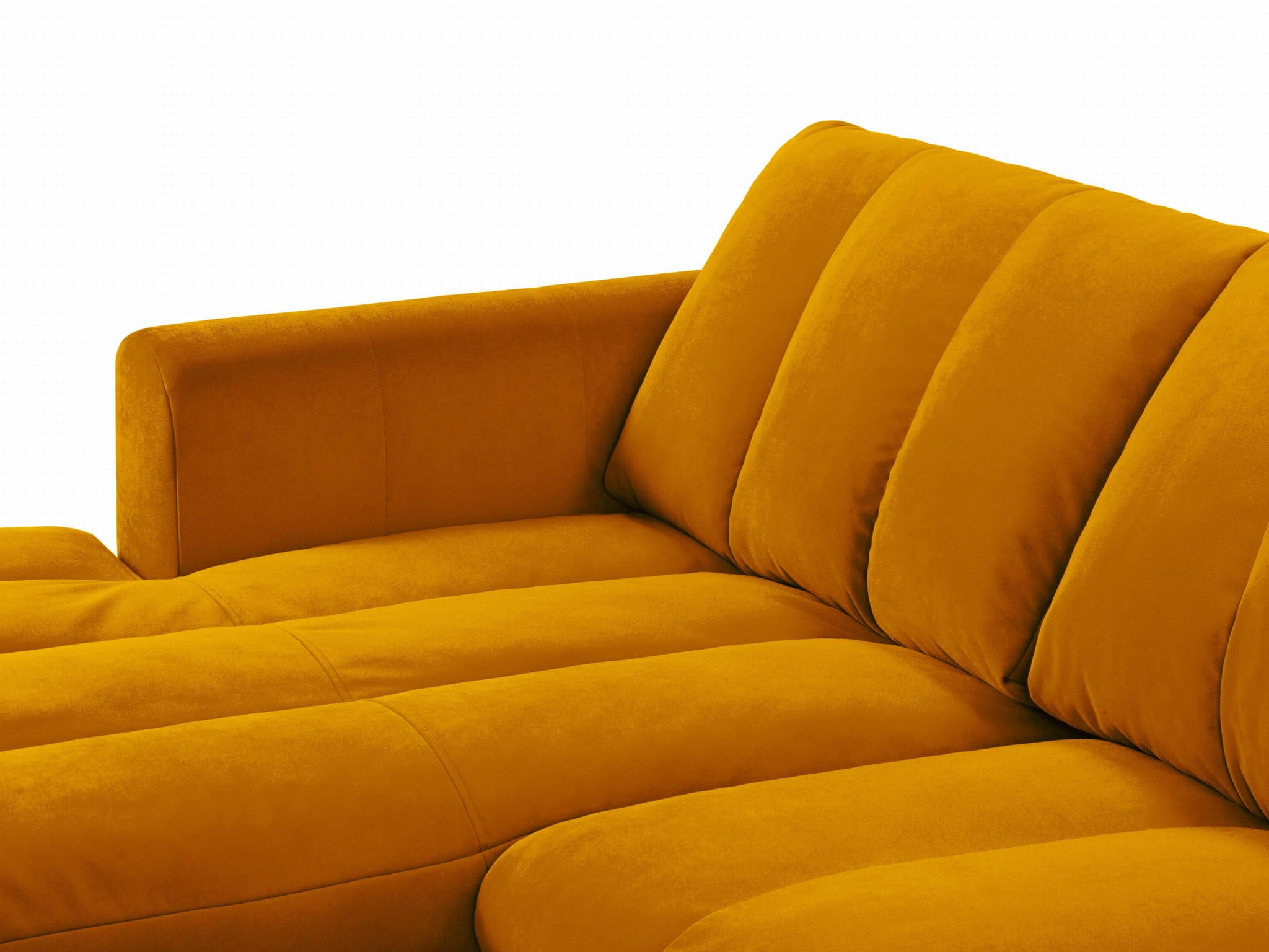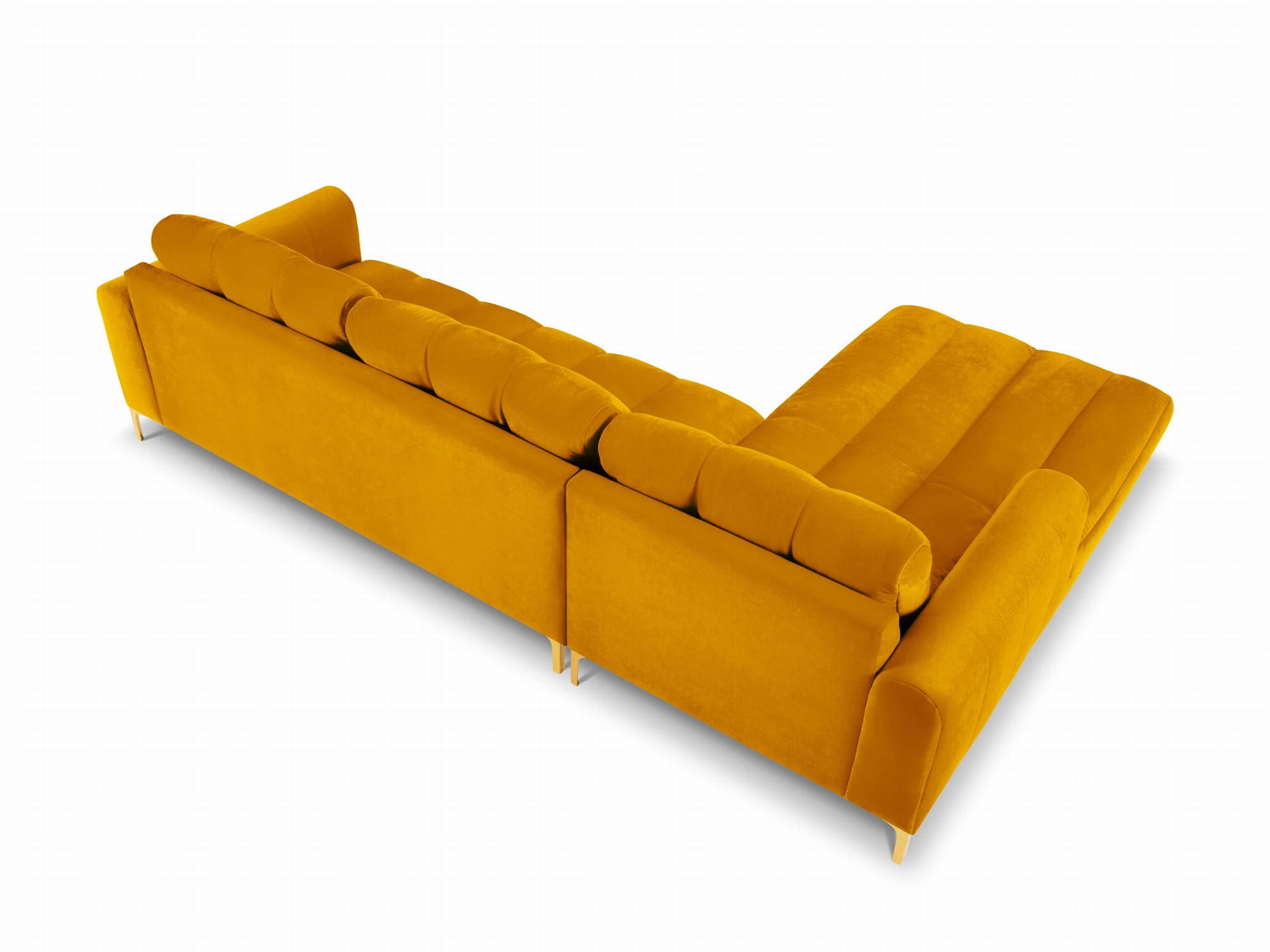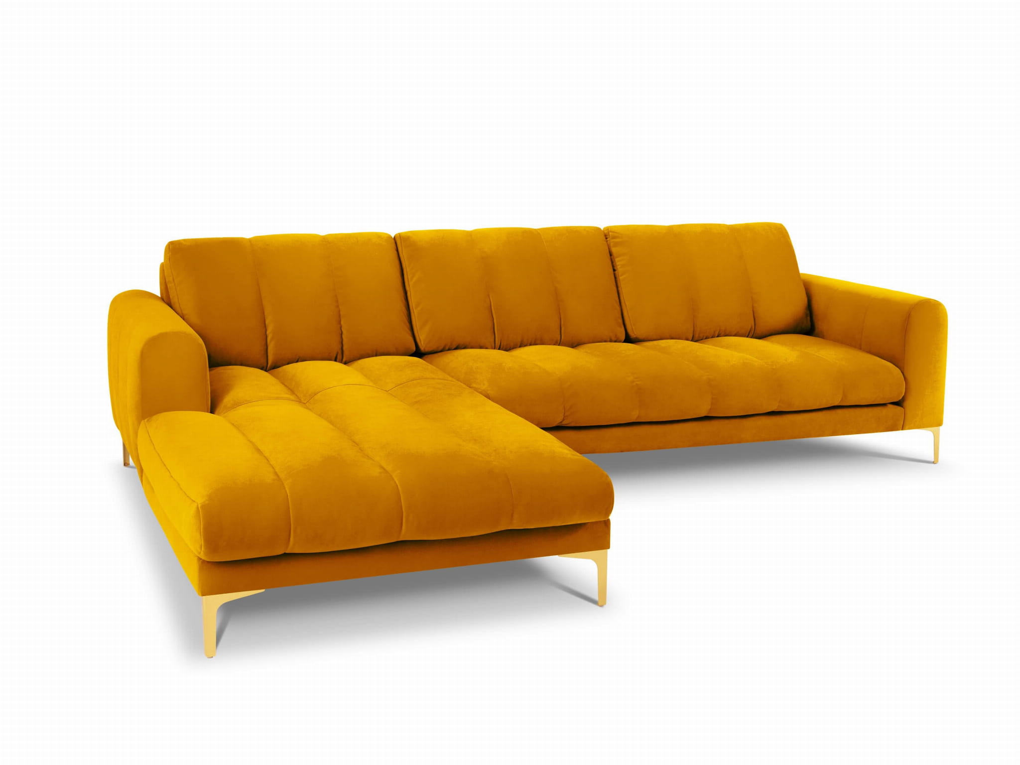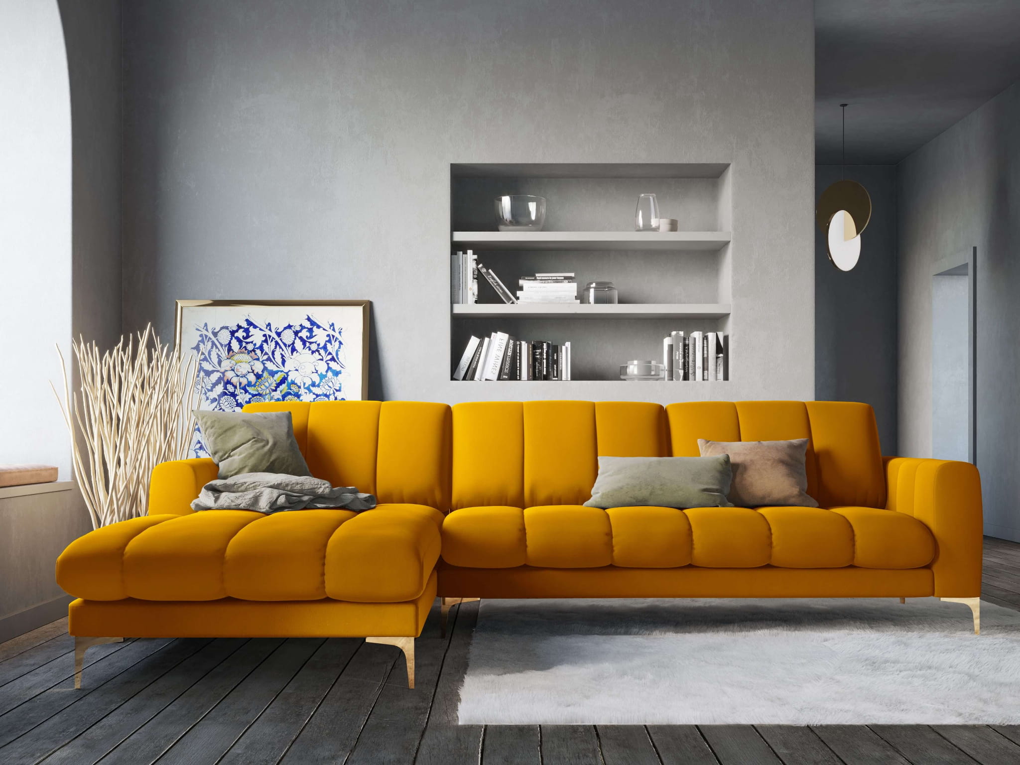 Duży narożnik Gina żółty aksamit na złotych nóżkach