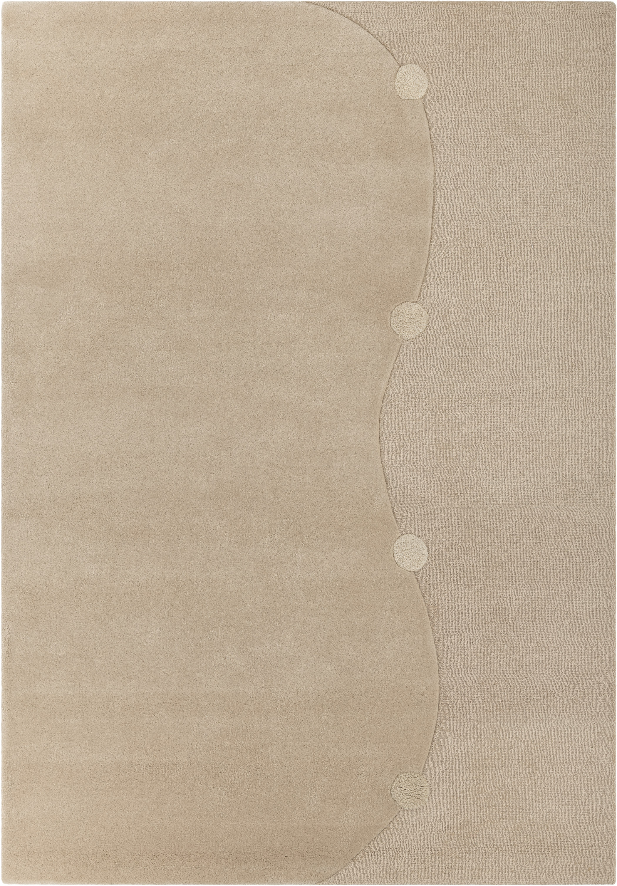 Model Gdynia z kolekcji Malwiny Konopackiej to subtelna, minimalistyczna kompozycja oparta na miękkiej linii i delikatnym kontraście faktur. Charakterystyczne, falujące podziały wprowadzają do wnętrza spokojny rytm, a wypukłe, okrągłe akcenty podkreślają rzeźbiarski charakter projektu. To dywan, który buduje atmosferę harmonii i elegancji, doskonale wpisując się w jasne, nowoczesne przestrzenie.