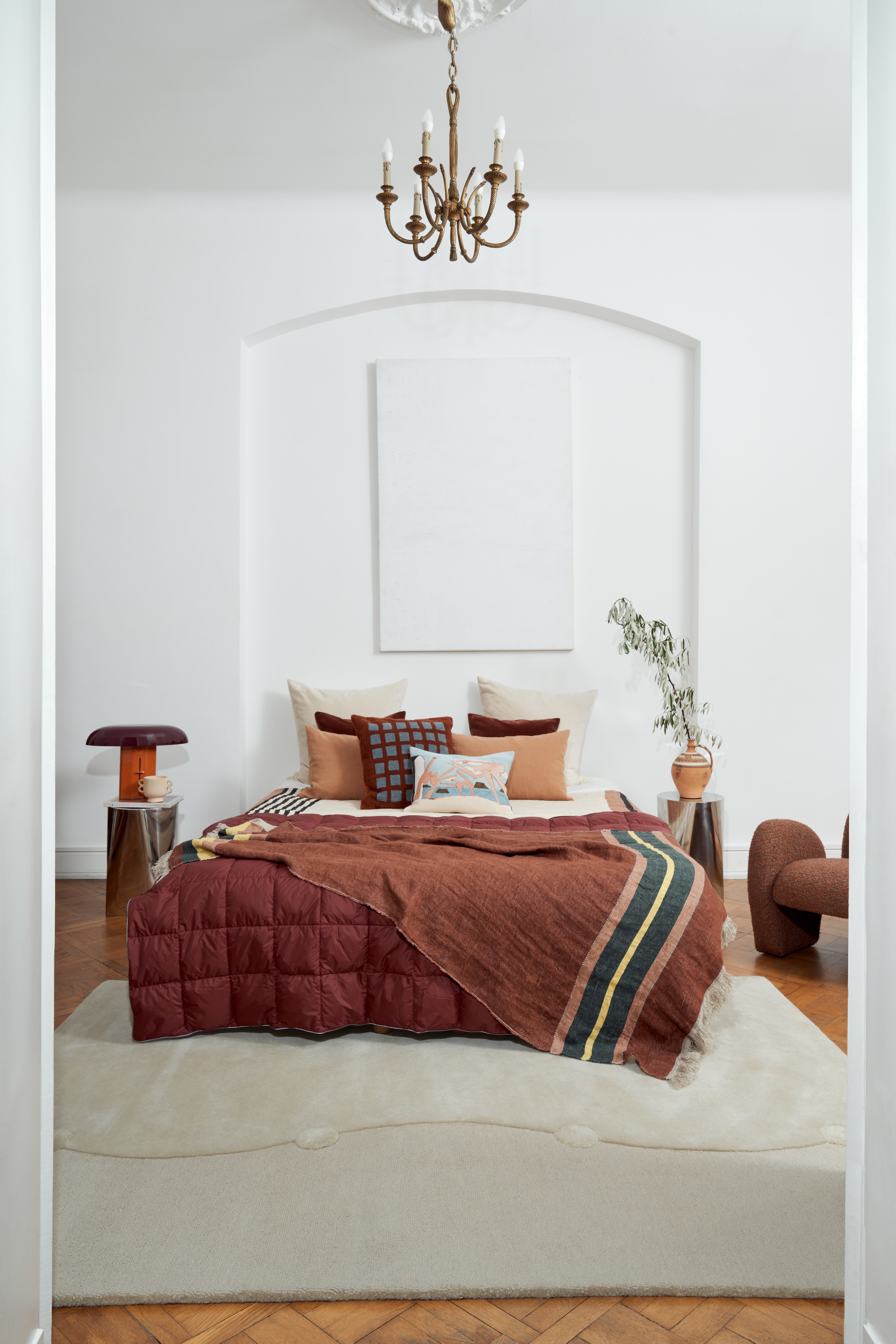 Wersja terracota łączy ciepłe, piaskowe tło z wyrazistymi, terakotowymi detalami, nadając wnętrzu przytulności i szlachetnej głębi. Odsłona ecru utrzymana jest w tonacji monochromatycznej, gdzie różnice faktur i subtelnych odcieni tworzą efekt spokojnej, ponadczasowej elegancji.