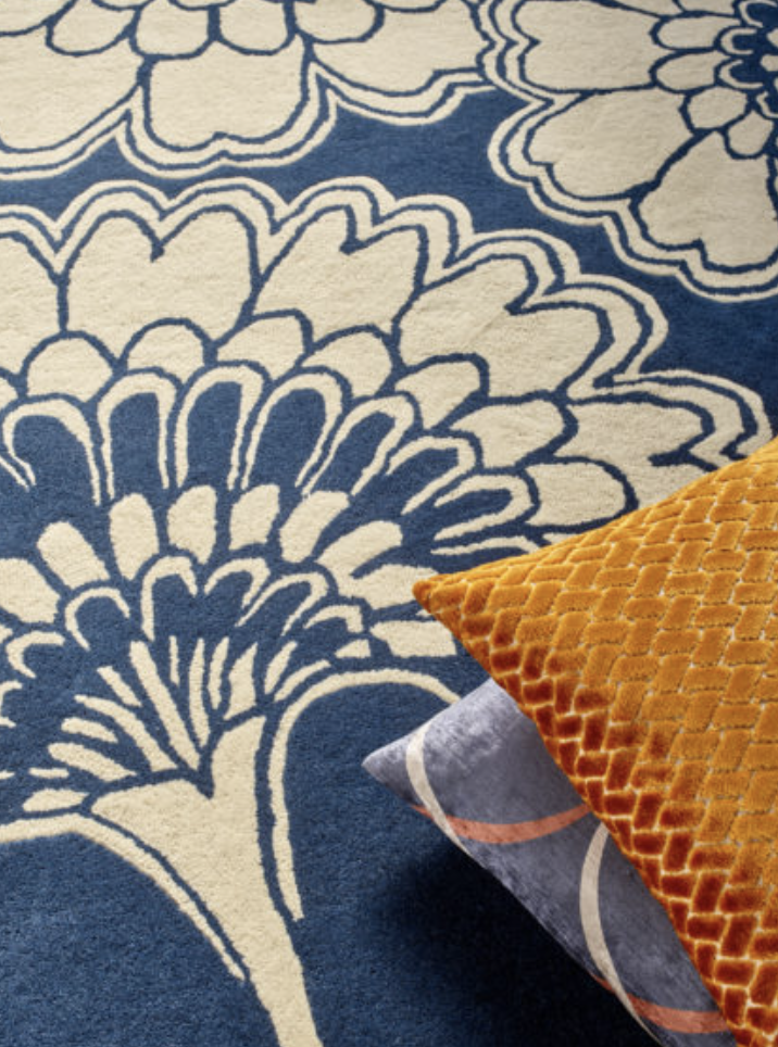 Ekskluzywny dywan granatowo beżowy w kwiaty – Japanese Floral Midnight marki Florence Broadhurst