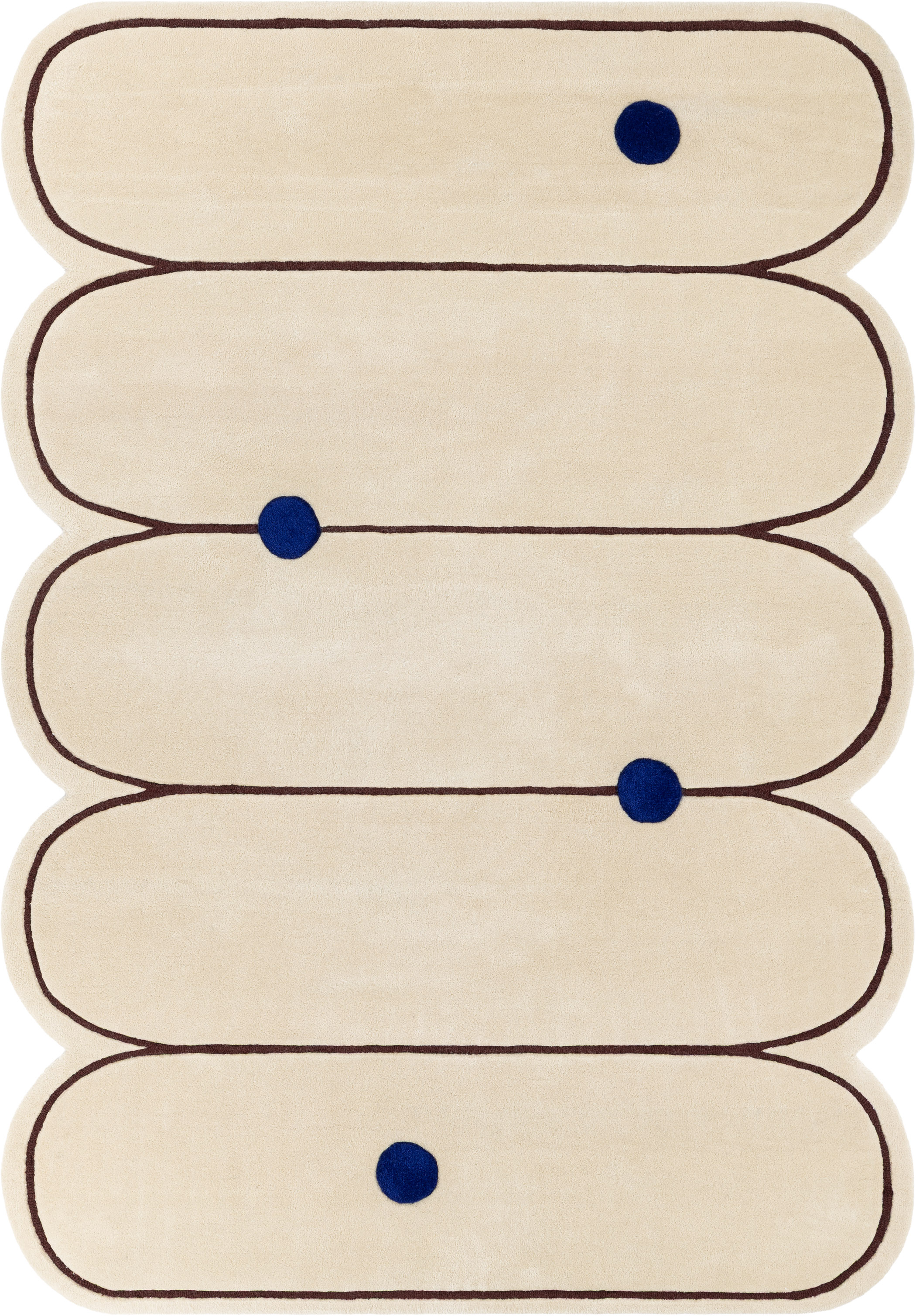 Model Paris z kolekcji Malwiny Konopackiej to gra prostoty i rytmu zamknięta w miękkiej, organicznej formie. Charakterystyczne, zaokrąglone segmenty obrysowane wyraźną linią tworzą powtarzalny, harmonijny układ, który przywodzi na myśl modernistyczne detale i elegancję paryskiego designu. Subtelne, kontrastowe punkty kolorystyczne przełamują regularność kompozycji, dodając jej lekkości i współczesnego charakteru. Dywan dostępny jest w kilku wariantach kolorystycznych – od ciepłej terakoty po jasną, kremową odsłonę.