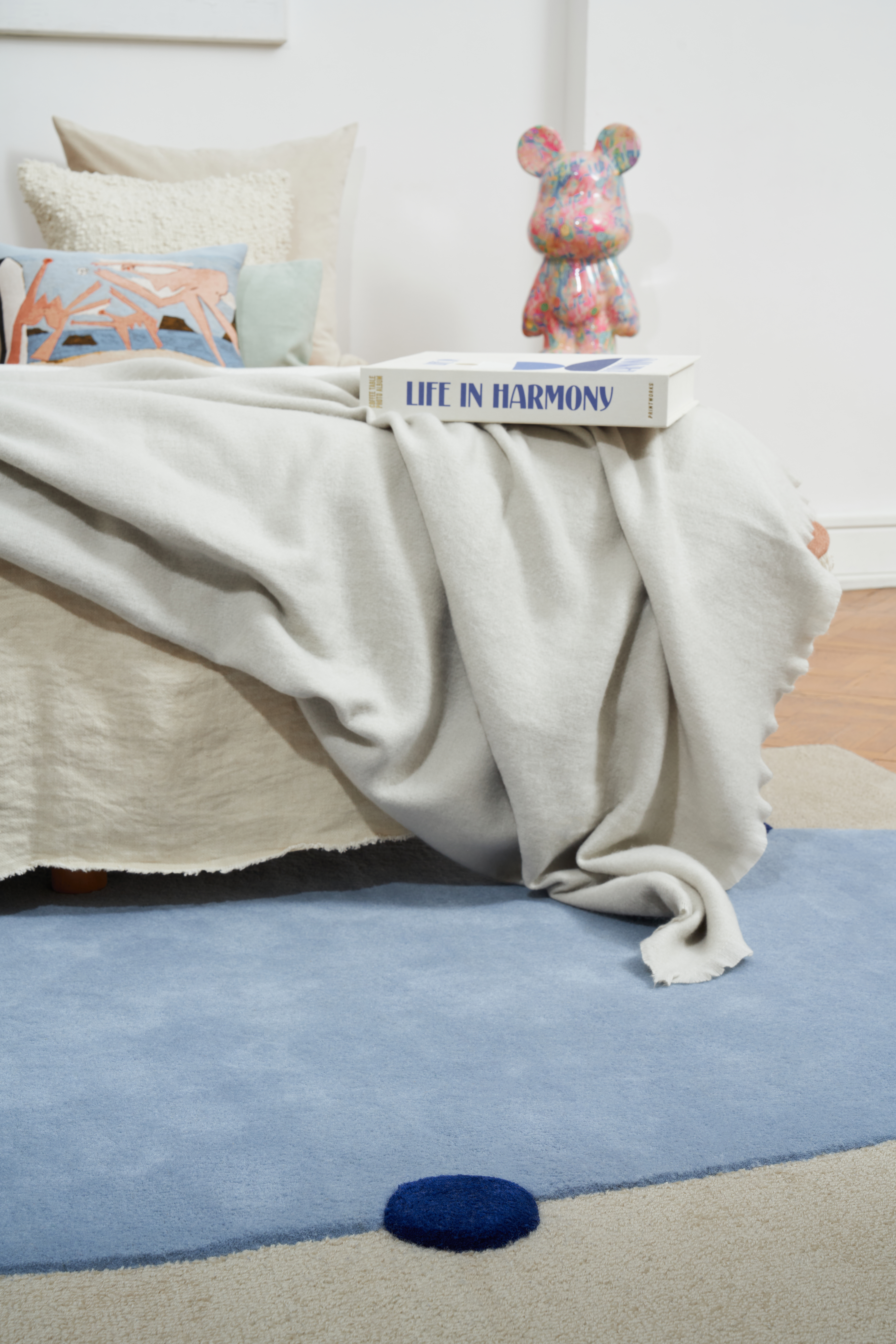 Linie Roma, Marseille, Paris, Rio i Firenze czerpią bezpośrednio z ceramicznej kolekcji – artystka twórczo przełożyła wzory wazonów OKO, NANA i IRENA na płaską powierzchnię dywanu. Minimalistyczne Berlin i Warszawa są hołdem dla przestrzeni, którą można porządkować według własnego uznania. London to wspomnienie najlepszych spacerów, a Tokio i Oslo pokazują, jak różne bywają miasta. Gdynia kłania się modernizmowi.