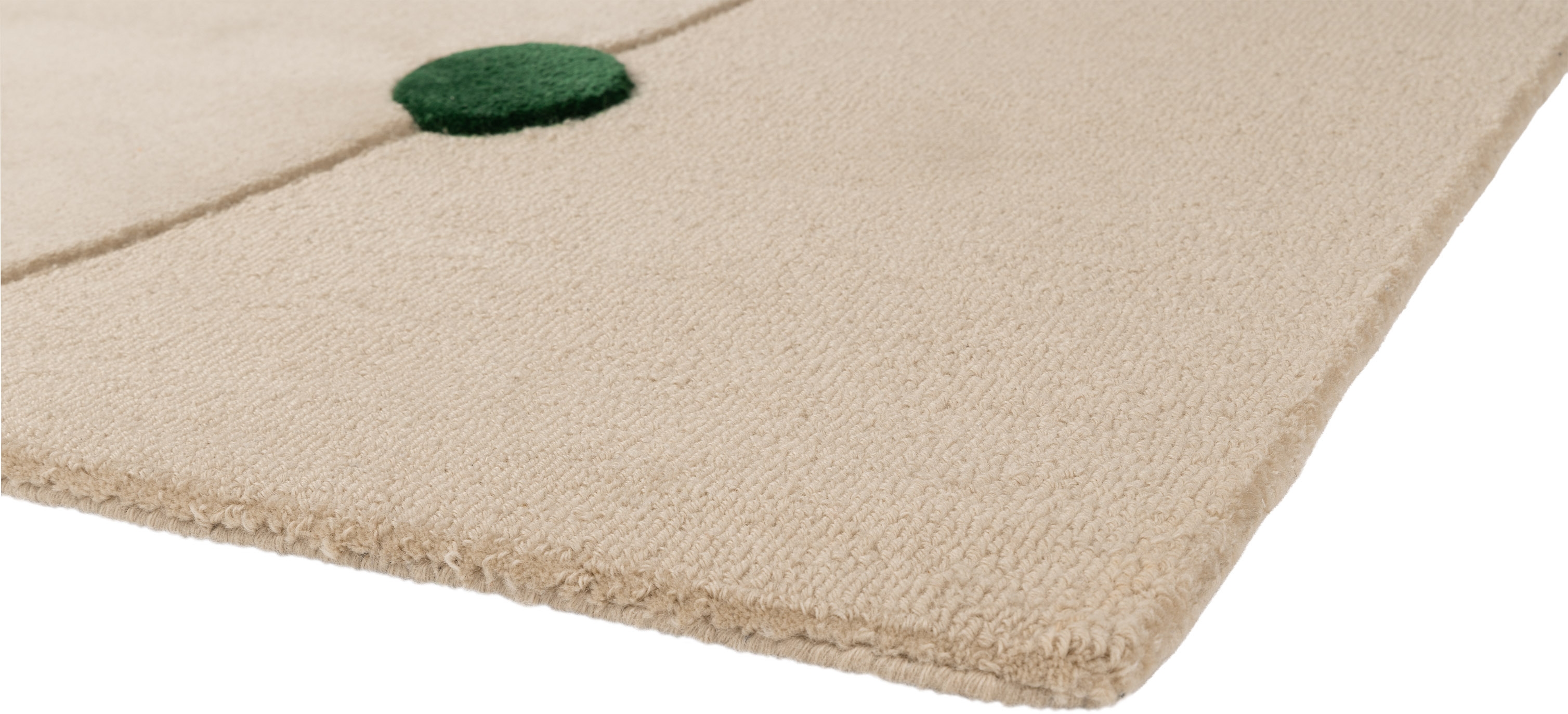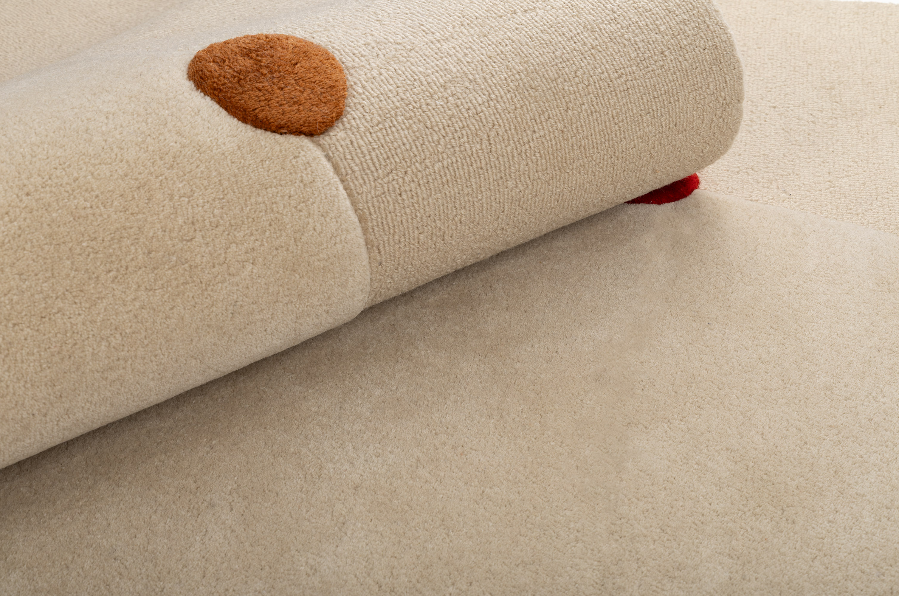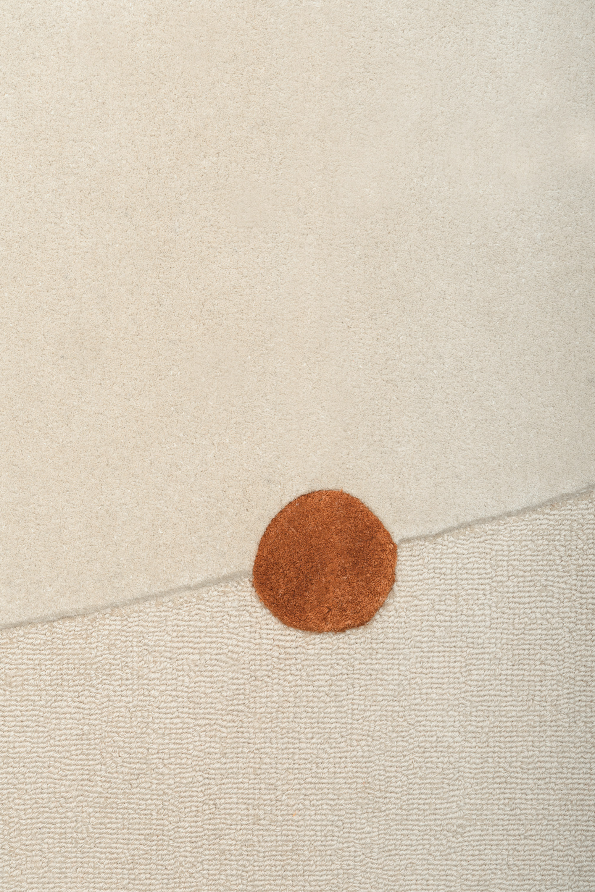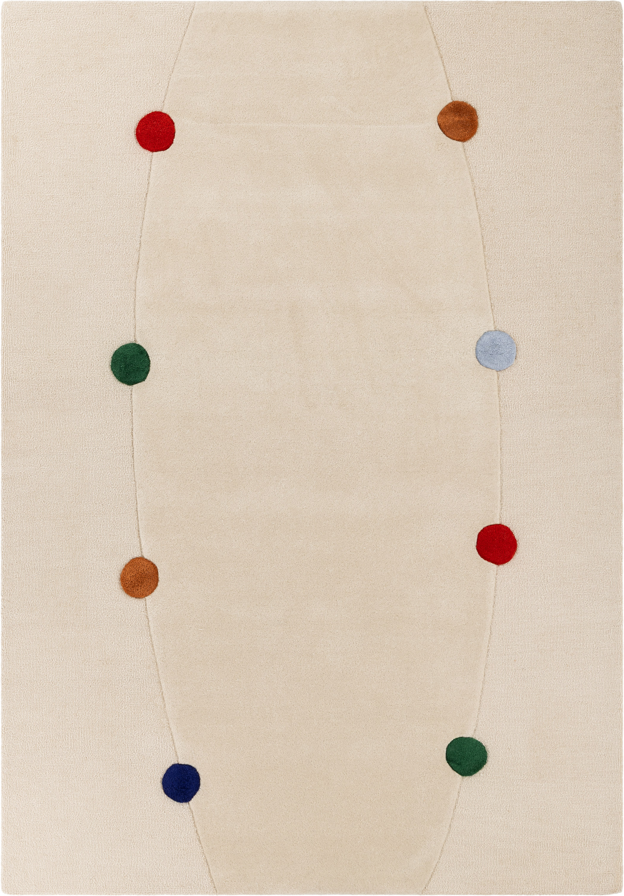 Model Rome z kolekcji Malwiny Konopackiej to wyważona, rzeźbiarska forma oparta na miękkim, centralnym kształcie otoczonym subtelnym tłem. Owalna kompozycja podkreślona jest rytmicznie rozmieszczonymi, wypukłymi punktami, które nadają projektowi lekkości i graficznej wyrazistości. Minimalistyczny układ i dopracowane proporcje sprawiają, że dywan wprowadza do wnętrza spokój, a jednocześnie staje się jego charakterystycznym akcentem.