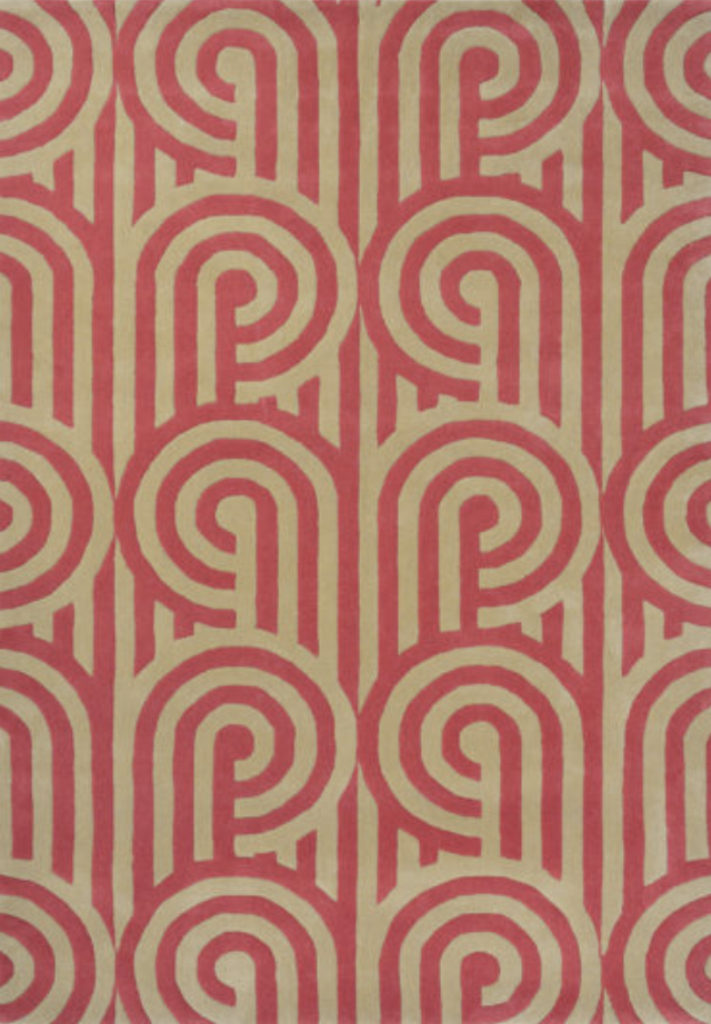 Ekskluzywny dywan czerwono-beżowy Turnabouts Claret marki Florence Broadhurst