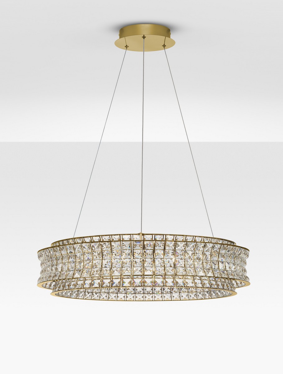 Dzięki okazałej średnicy oraz regulowanej wysokości zwisu do 120 cm, złota lampa Arona stanowi absolutnie spektakularny akcent wizualny. Będzie to fenomenalny wybór jako główne oświetlenie w wielkim salonie, nad długim, bankietowym stołem czy w reprezentacyjnej strefie recepcyjnej, stając się unikalną wizytówką każdej luksusowej aranżacji.
