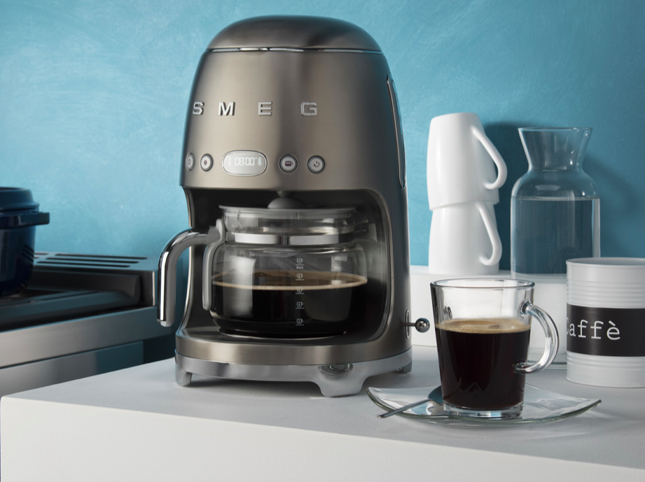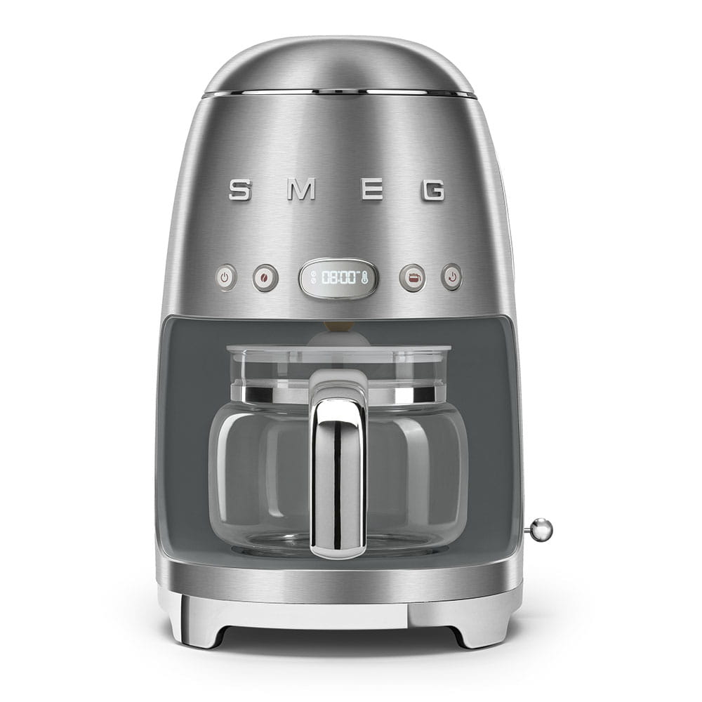 Designerski ekspres przelewowy marki Smeg linii 50's Style w kolorze stali nierdzewnej. Cała kolekcja nawiązuje do amerykańskiego stylu z lat 50-tych, czyli połączenie estetyki z ciekawym wzornictwem w stylu retro.