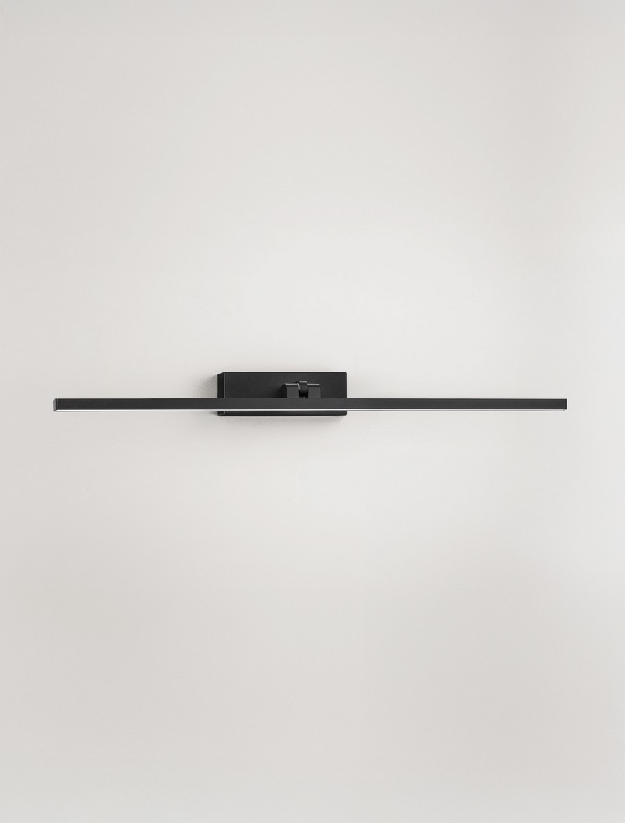 Elegancka lampa ścienna ALFAS czarna o imponującej szerokości 68 cm to oprawa o minimalistycznym charakterze, stworzona z myślą o wnętrzach w stylu modern i loft. Wykonana z solidnego połączenia stali i aluminium, została wykończona w głębokim odcieniu piaskowej czerni. Jej prosta, horyzontalna forma sprawia, że doskonale wpisuje się we współczesne aranżacje, stanowiąc wyrazisty, lecz nieprzytłaczający akcent dekoracyjny.