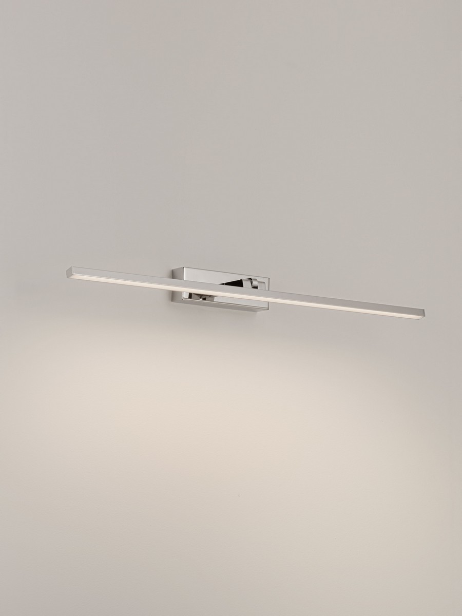 Lampa ścienna Alfas o imponującej szerokości 68 cm to oprawa, która wprowadza do wnętrza elegancki, nowoczesny sznyt. Wykonana z precyzyjnego połączenia stali i aluminium, wyróżnia się luksusowym wykończeniem w wysokim połysku (chrom). Jej oszczędna, horyzontalna sylwetka sprawia, że oprawa optycznie powiększa i rozświetla przestrzeń, stając się idealnym dopełnieniem wnętrz w stylu modern.