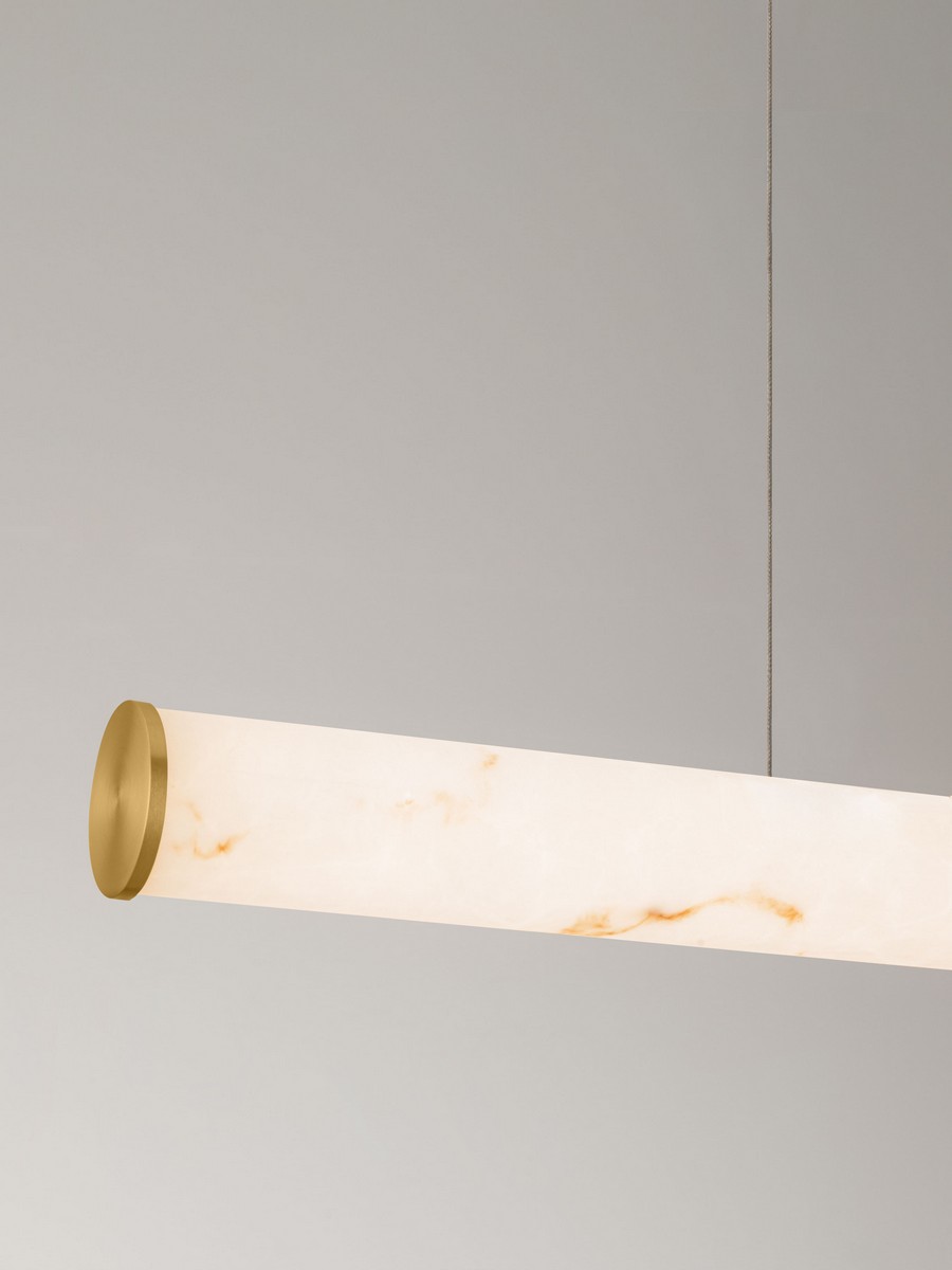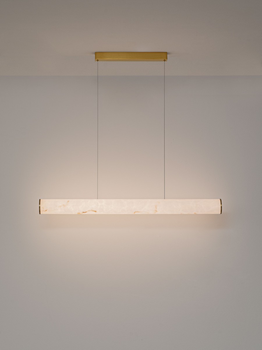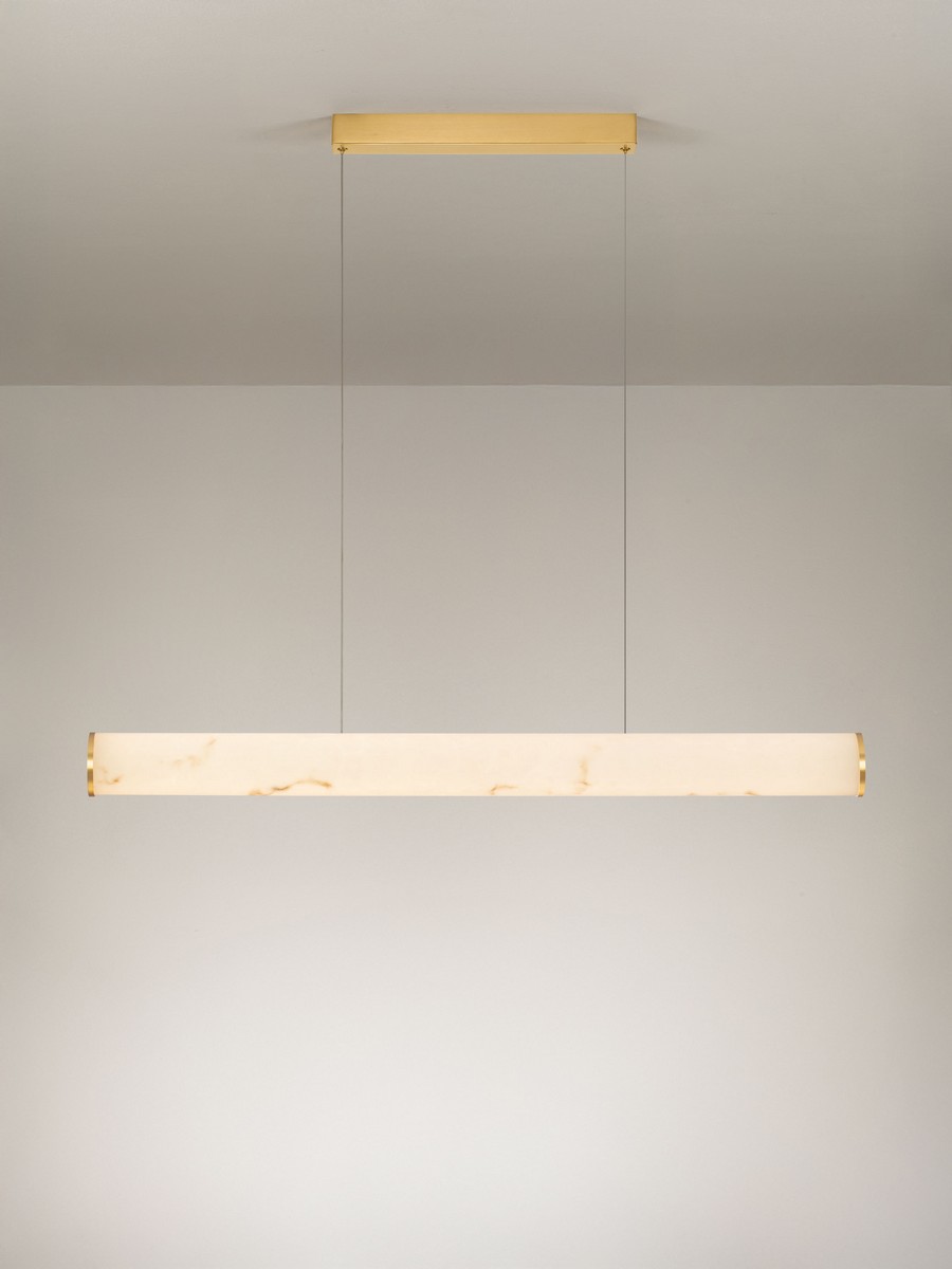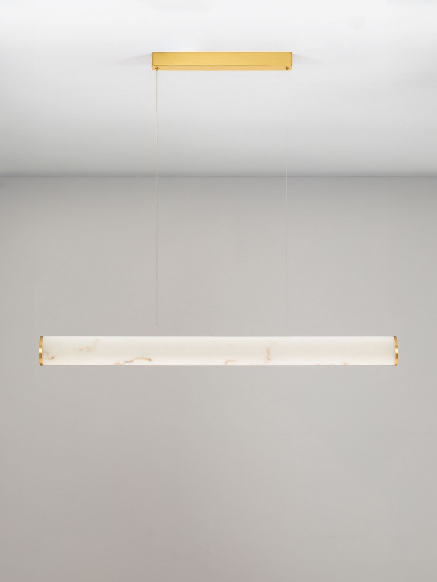 Lampa wisząca Jumilla od marki Nova Luce to esencja luksusowego minimalizmu. Jej smukła, liniowa forma o długości 100 cm została zaprojektowana z myślą o wnętrzach, które potrzebują wyrazistego, a zarazem subtelnego oświetlenia. Wykończenie w kolorze mosiężnego złota nadaje oprawie biżuteryjnego sznytu, a cylindryczny klosz o strukturze nawiązującej do naturalnego kamienia efektownie rozprasza światło, tworząc niezwykle nastrojową atmosferę.