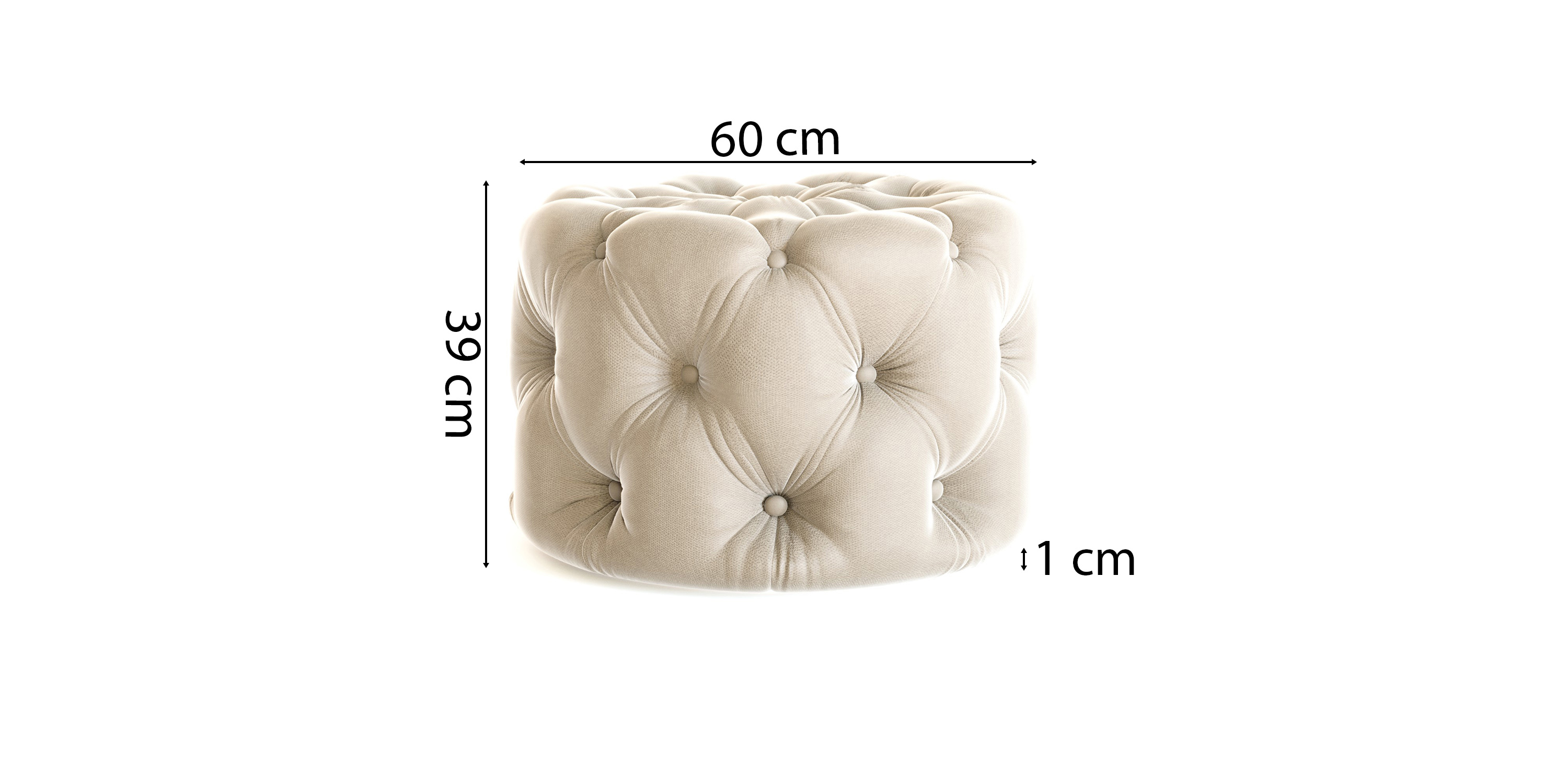 Elegancka pikowana pufa okrągła Cos tkanina strukturalna beżowa
