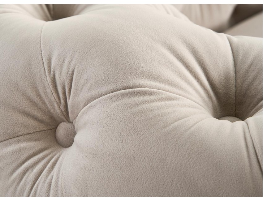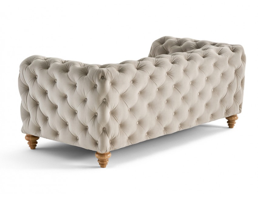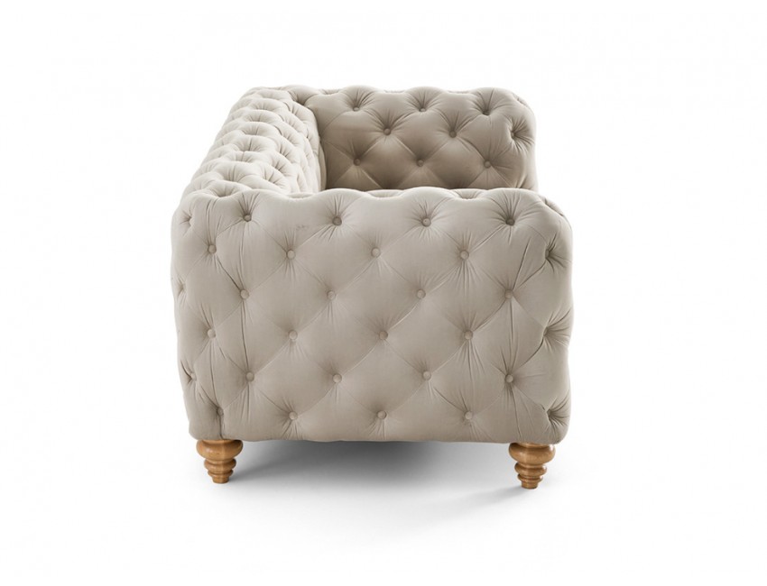 Jej klasyczny design i szlachetne wykończenie pikowaniami pasują idealnie do wnętrz w stylu klasycznym, nowojorskim, glamour oraz Hampton. Beżowy kolor dodaje sofie lekkości, ciepła i subtelnej elegancji.