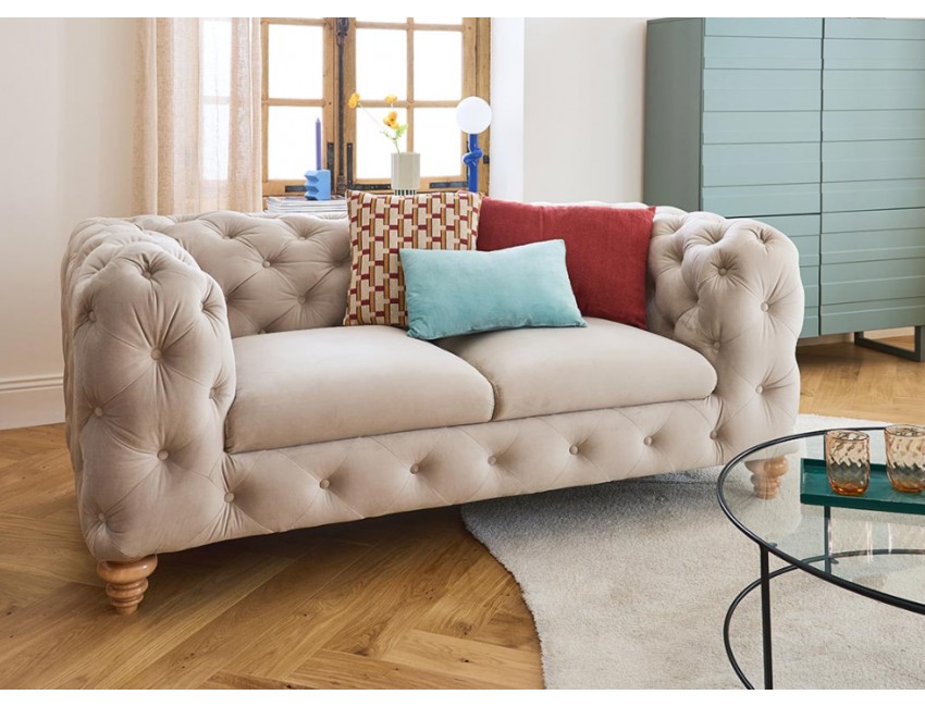 Elegancka pikowana sofa 2 os. Chesterfield Somerset beżowa
