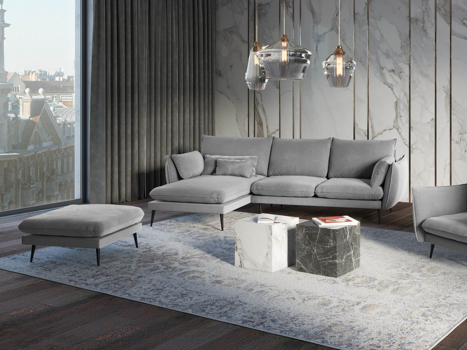 Elegancka pufa szary aksamit czarne nóżki Elio