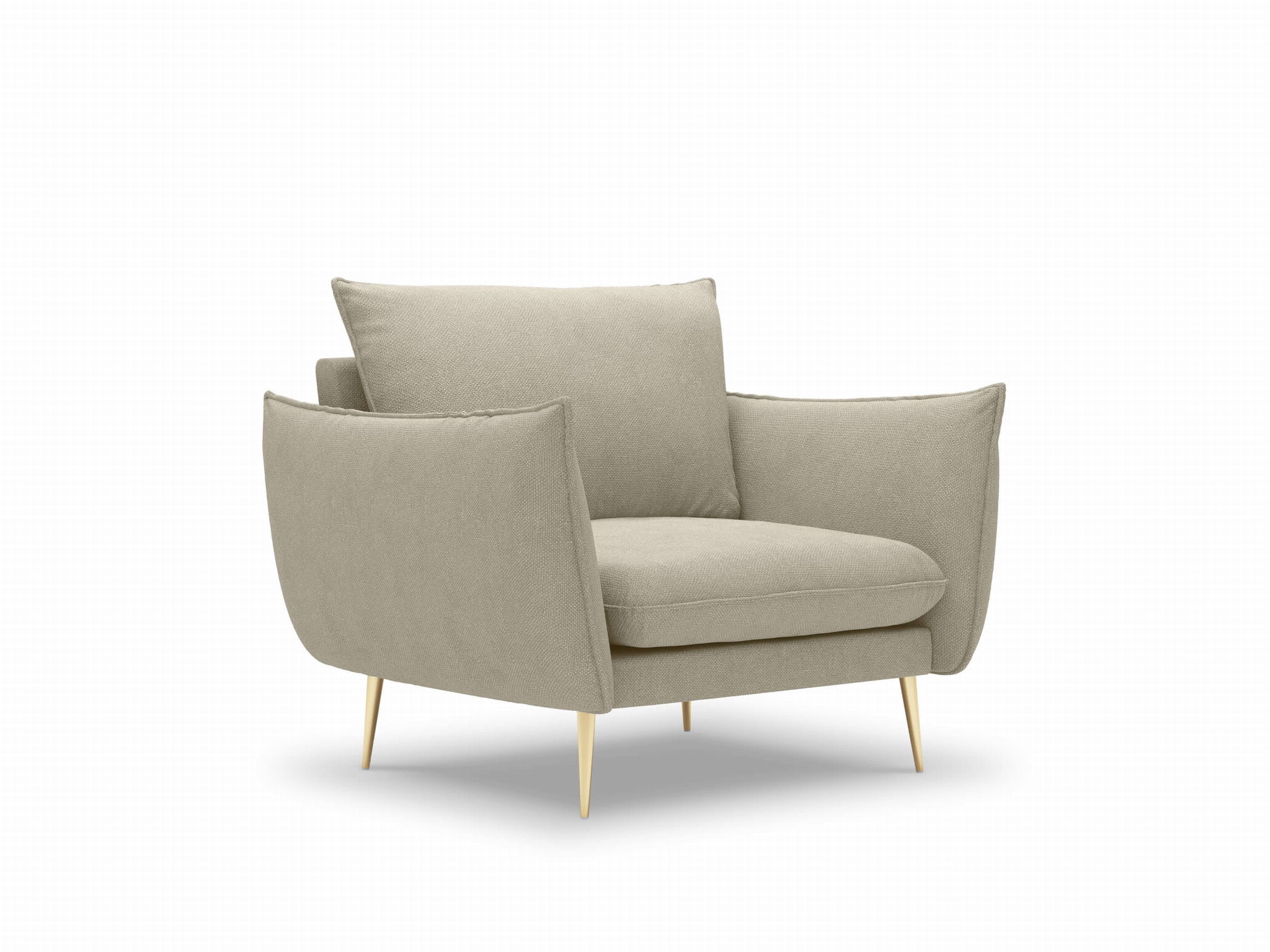 Elegancki fotel Elio strukturalna tkanina ciemny beż nóżki złote