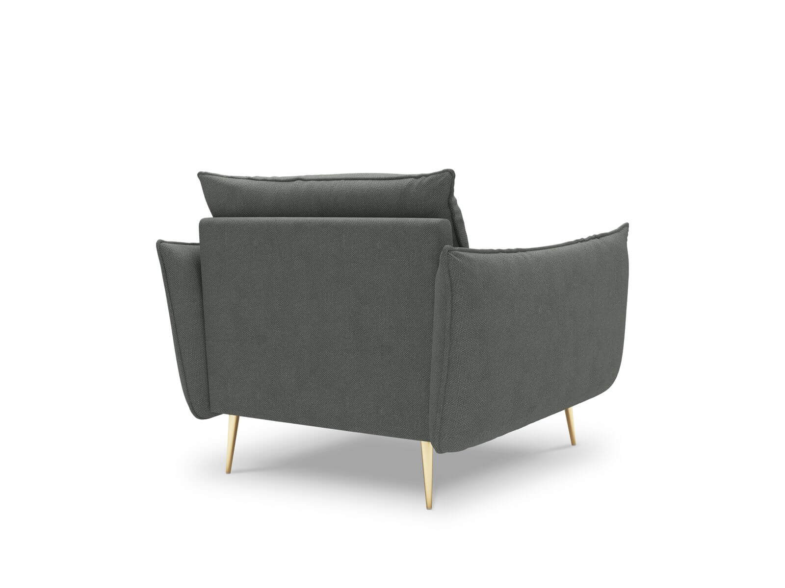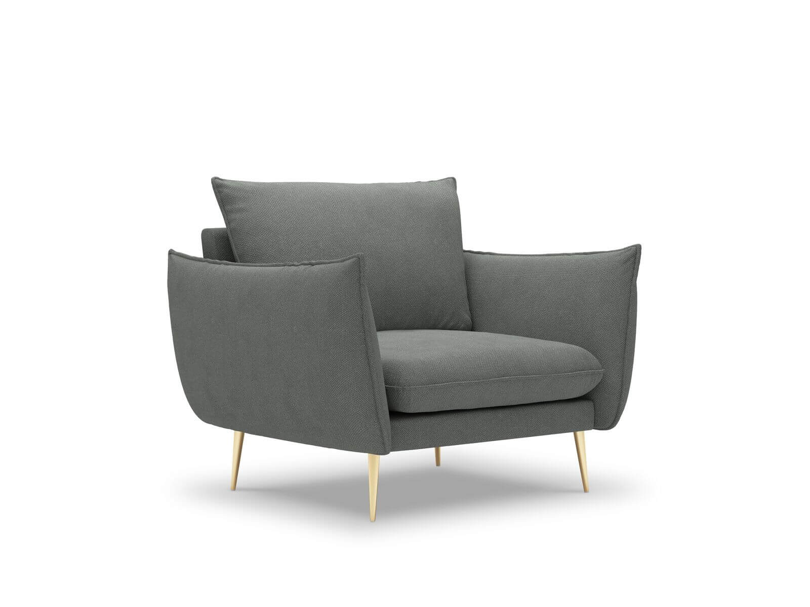 Elegancki fotel Elio strukturalna tkanina ciemny szary nóżki złote