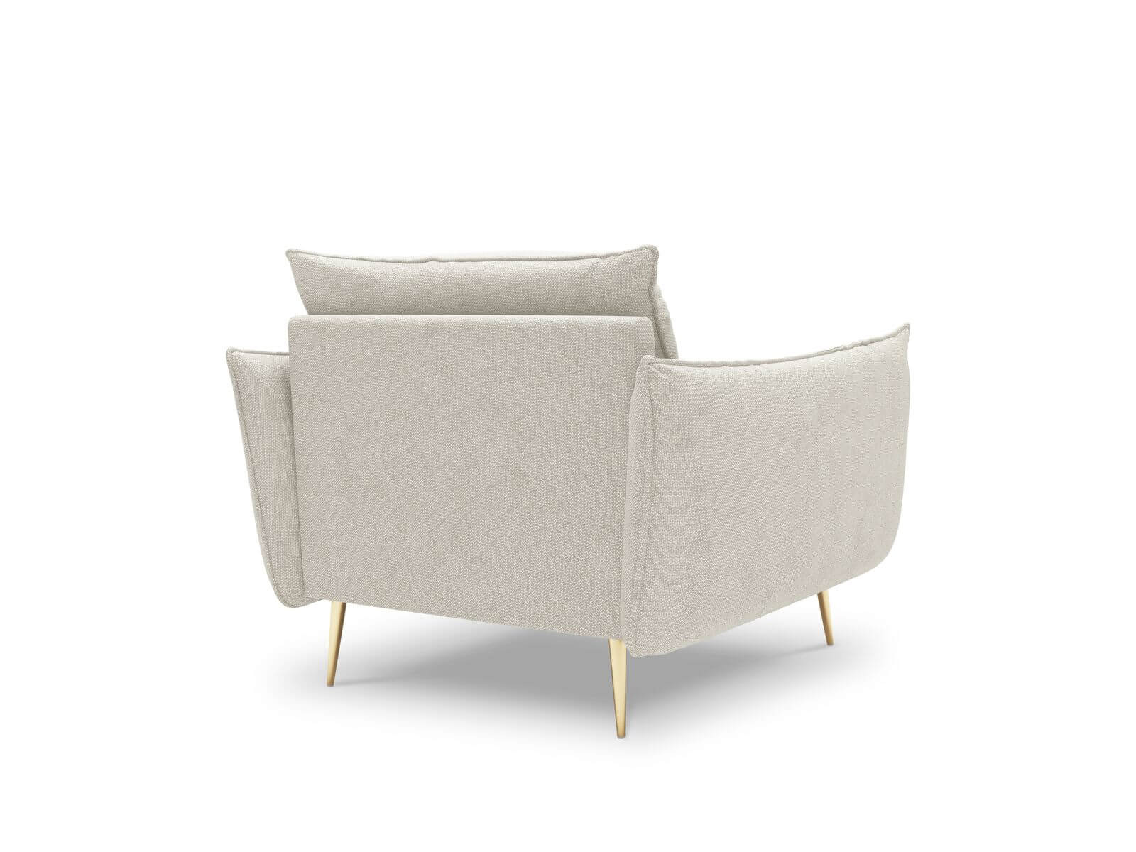Elegancki fotel Elio strukturalna tkanina jasny beż nóżki złote