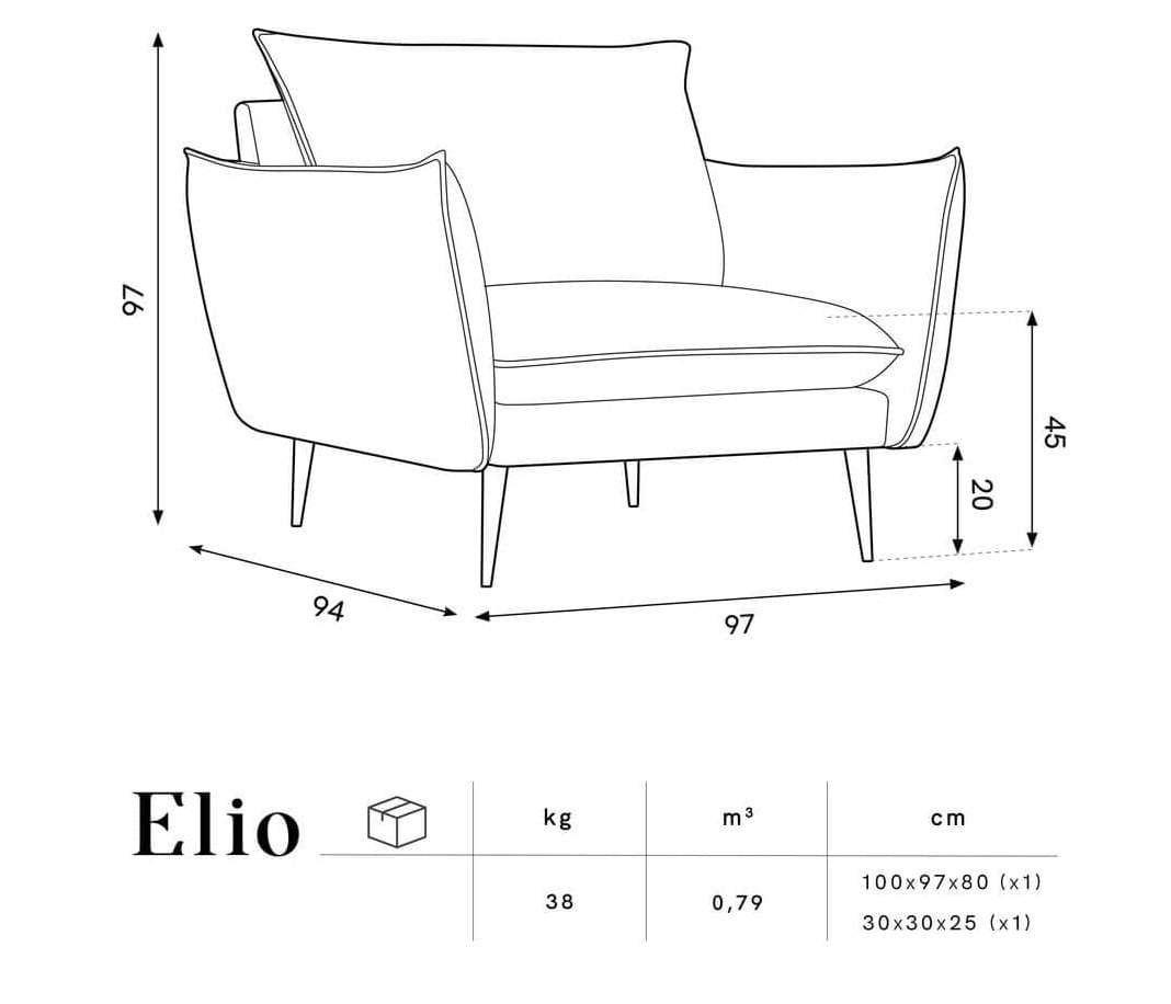 Fotel Elio to mebel reprezentujący klasę i wysoki komfort wypoczynku. Oprócz cech użytkowych przejawia także walory estetyczne, za sprawą których Twoje wnętrze nabierze przytulnej elegancji.