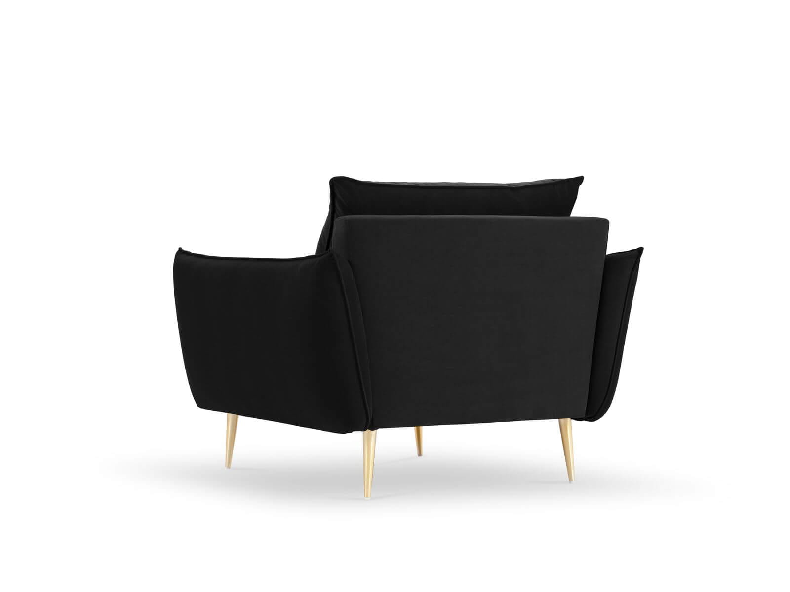 Elegancki fotel czarny aksamit nóżki złote glamour Elio