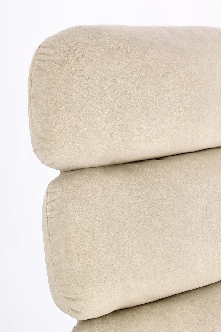 Fotel Vilante to ikona nowoczesnego wzornictwa, oferująca wyjątkowy komfort w eleganckiej formie. Jego ergonomiczna, kubełkowa bryła idealnie dopasowuje się do ciała, zapewniając głęboki relaks. Charakterystyczne, poziome przeszycia na oparciu oraz delikatny beżowy odcień tapicerki nadają mu wyrafinowanego wyglądu. Fotel jest tapicerowany miękkim poliestrem, a wypełnienie z pianki o wysokiej gęstości (28 kg/m³ na siedzisku) gwarantuje trwałość i niezmienny komfort użytkowania.